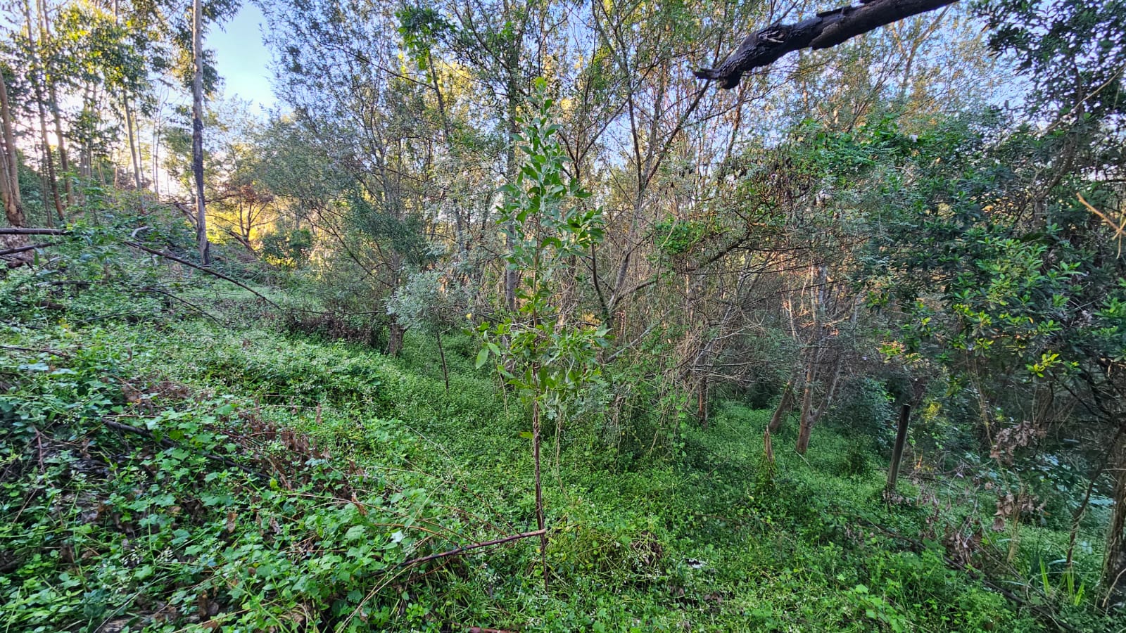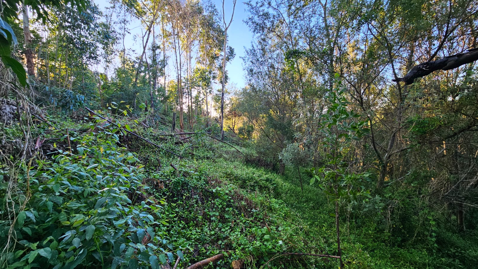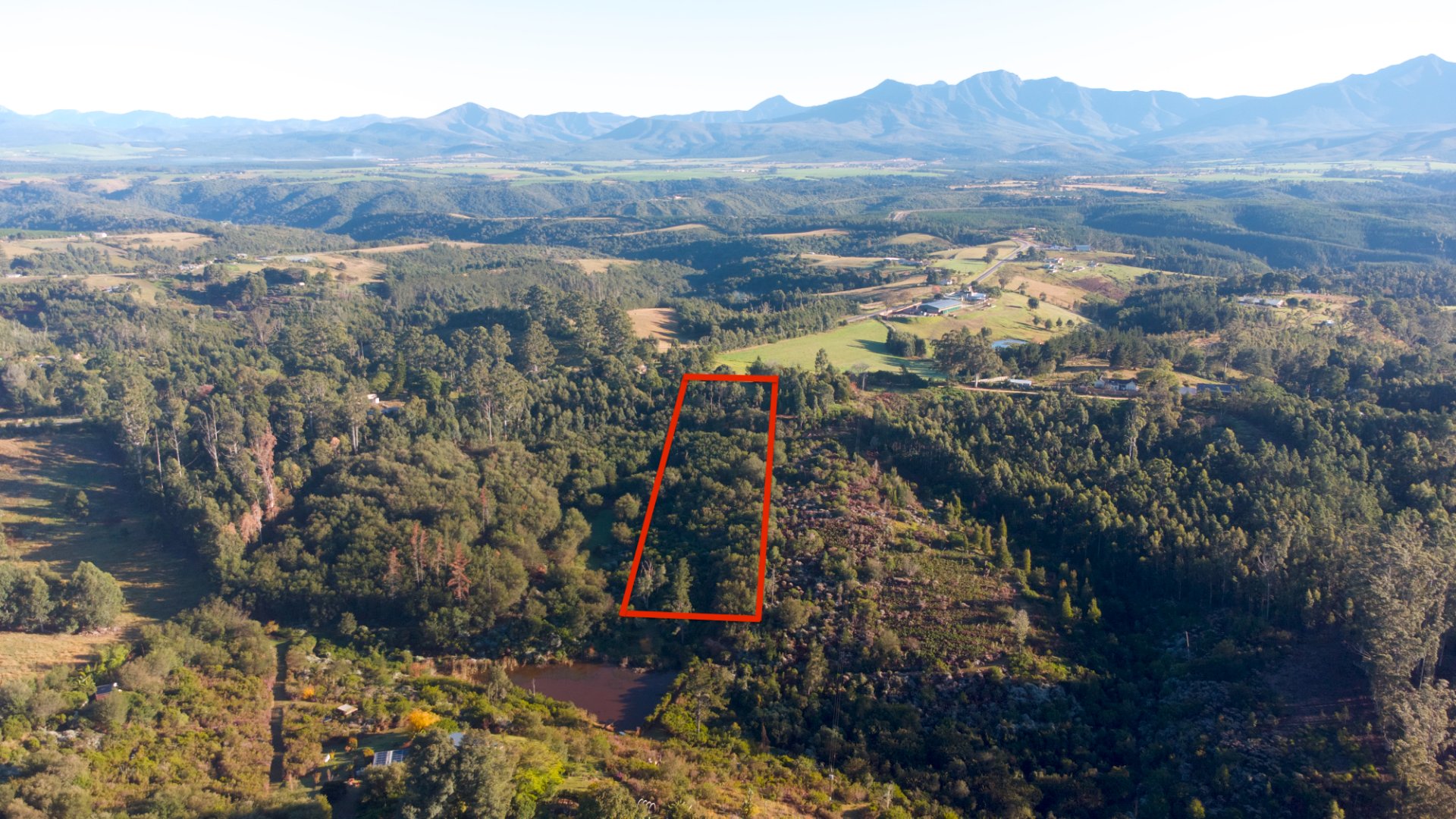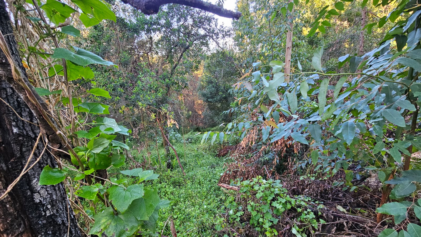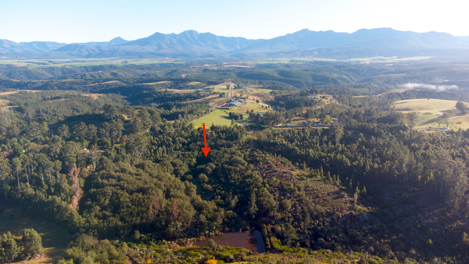 The Upper Terrace is a level section where a home and outbuildings once stood, giving a wonderful sense of history and possibility. The Eskom pole and transformer remain on-site, making future electricity connection straightforward. Old remnants of a header tank and outside toilet speak to its past, while the elevated position rewards you with panoramic views of the Outeniqua Mountains and the warmth of north-facing sunshine throughout the day.