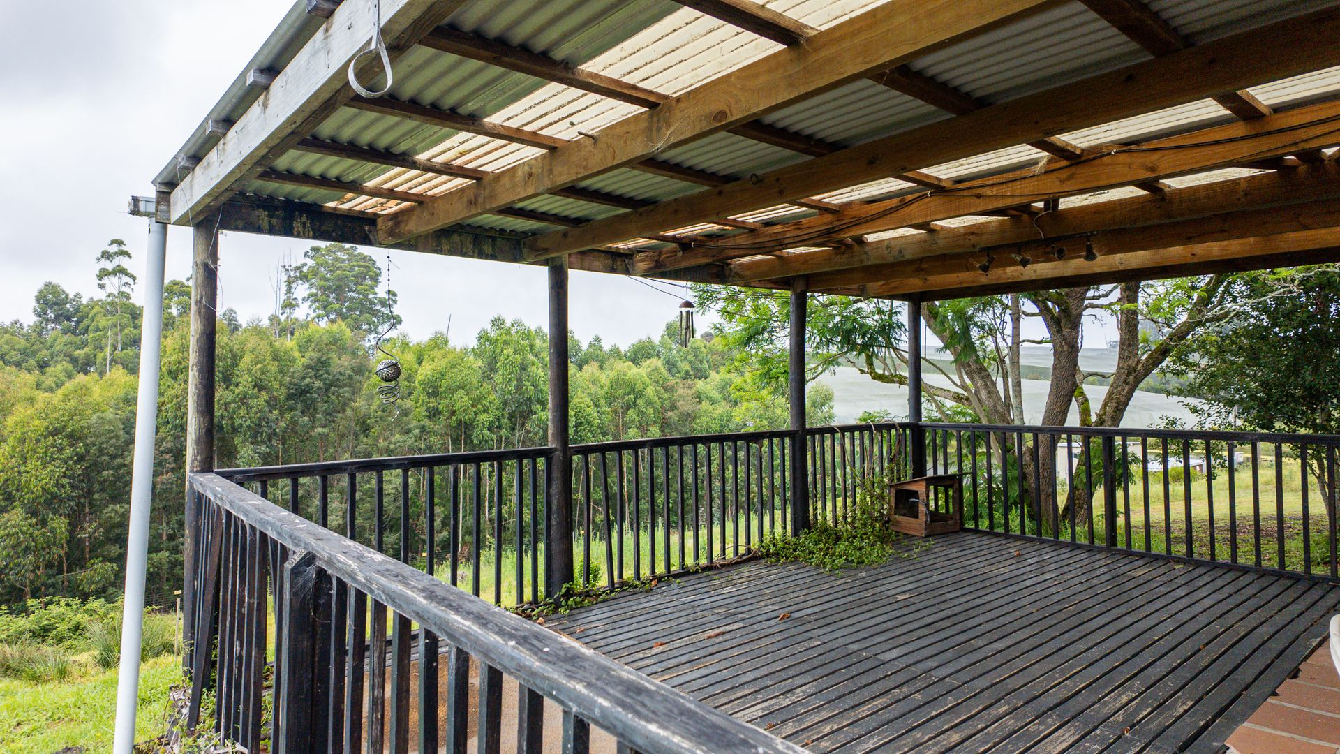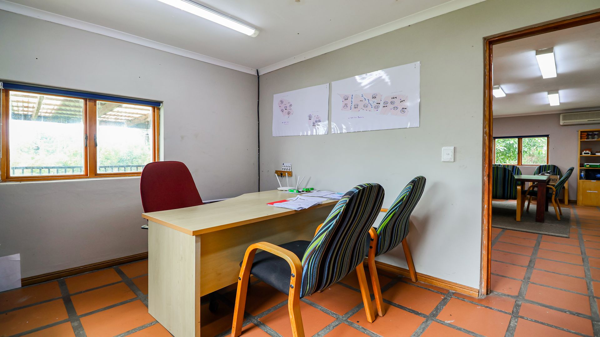 A small 2 bedroomed house was converted into an office building with a lovely deck overlooking the large dam in front of this building. This could easily be converted back into a functional house. A small pump house next to the dam also provides plenty storage for fertilizer or farming products needed.