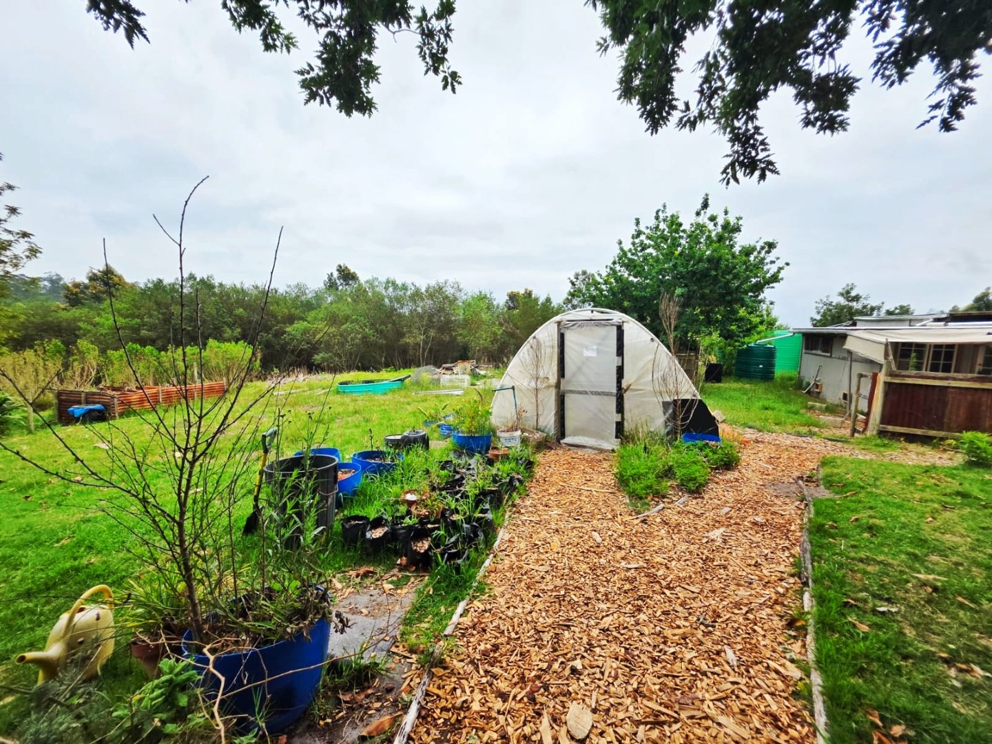 The property is enriched with a variety of fruit and nut trees, including 2 pecan nut trees, apricots, lemon trees, avocado, banana, grape vine, orange trees, figs, blueberries and macadamias. Guatemala grass has been planted for windbreaks and mulch, supporting both agricultural and soil health initiatives.