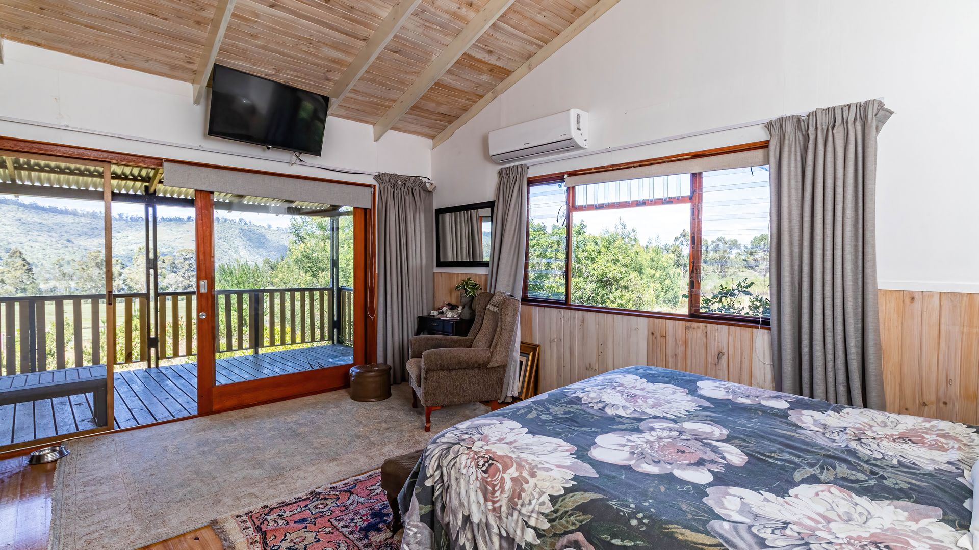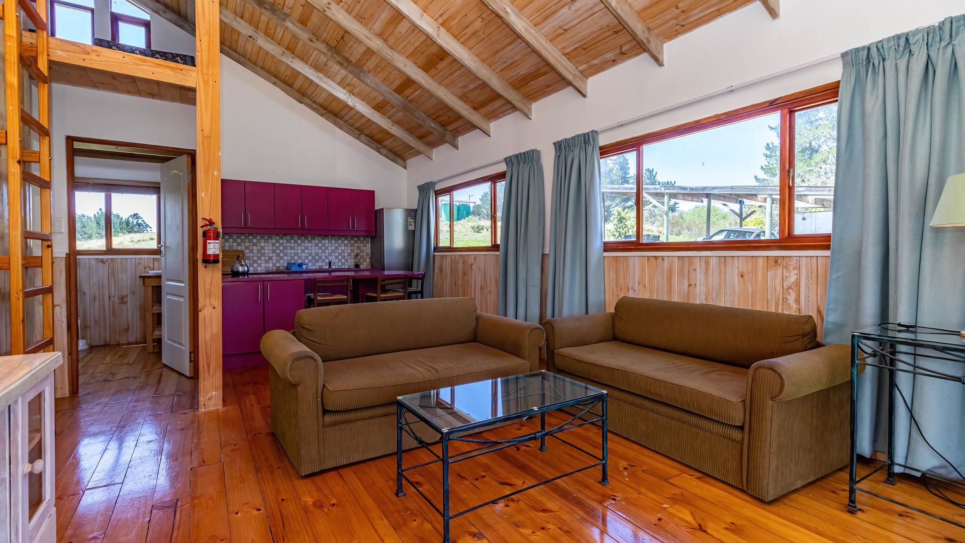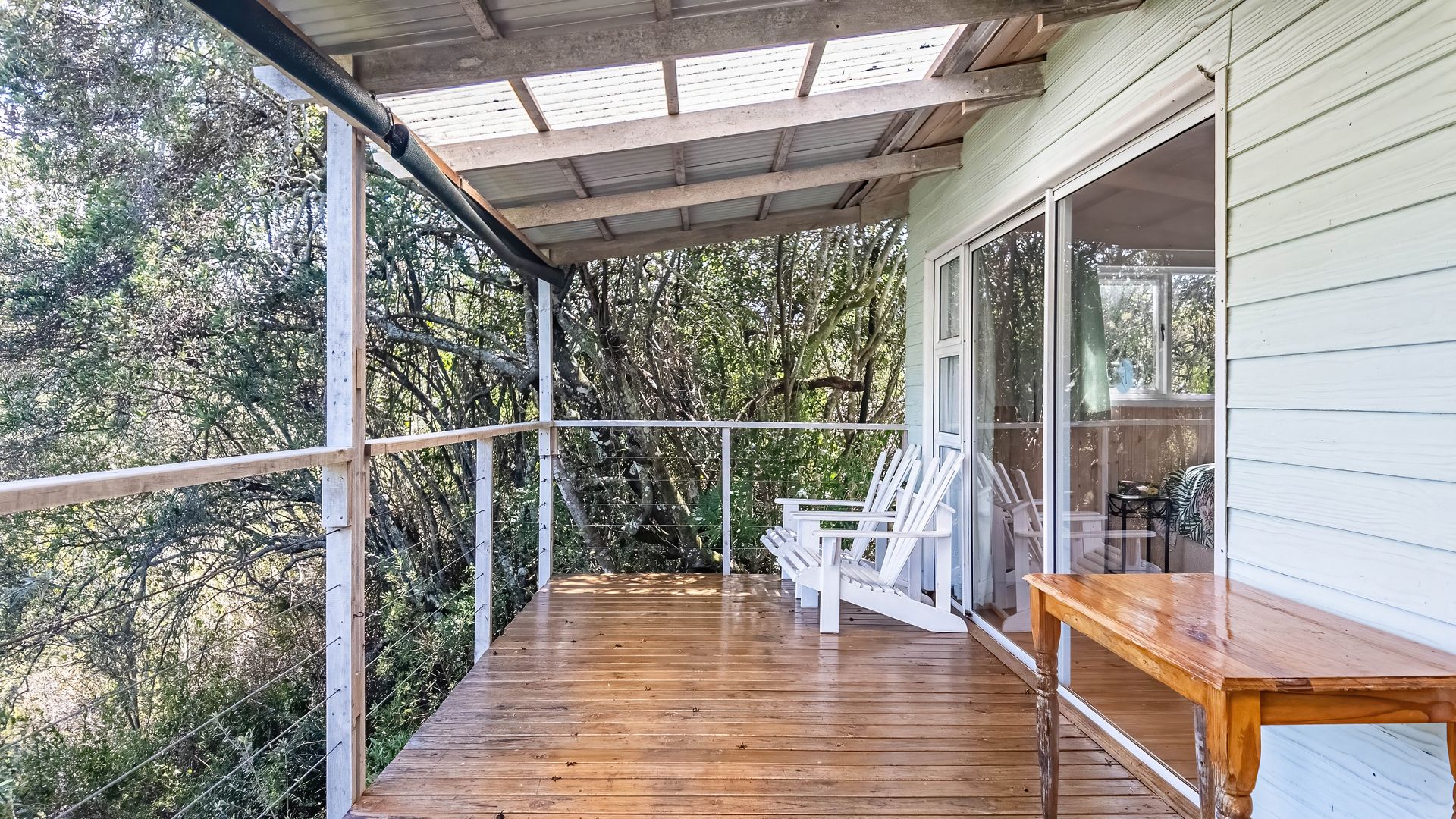 Cottage 2: A fully furnished two-bedroom, one-bathroom cottage with an additional loft sleeping space for children. Open-plan living, kitchen and dining, and a generous deck positioned to take in sweeping views over the Hoogekraal River valley.