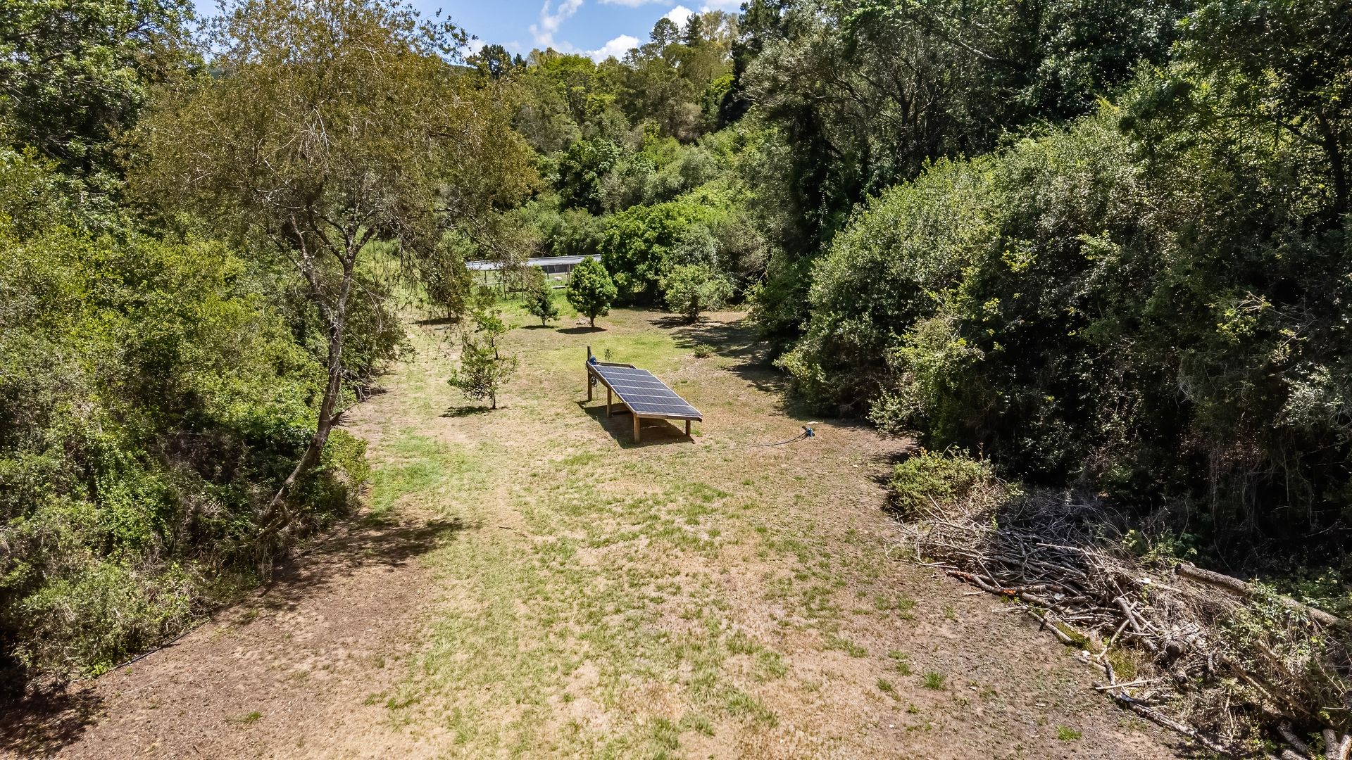 This side of the property also accommodates a workers’ hut, a borehole and spike (supplementing extensive rainwater harvesting systems), and large open areas currently used for horses. Stables currently belong to the tenant but may be purchased if desired. The lease on this side of the property is still in place till end of May 2029. The land here is ideal for horses, cattle, sheep or other livestock, with several cleared grazing camps.