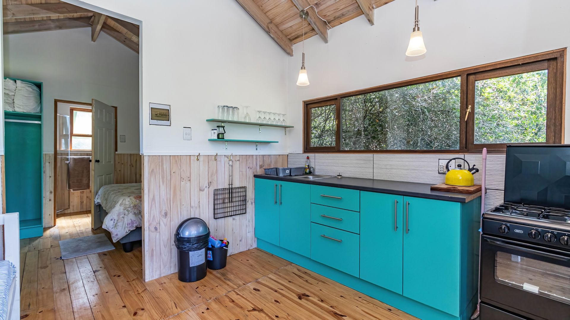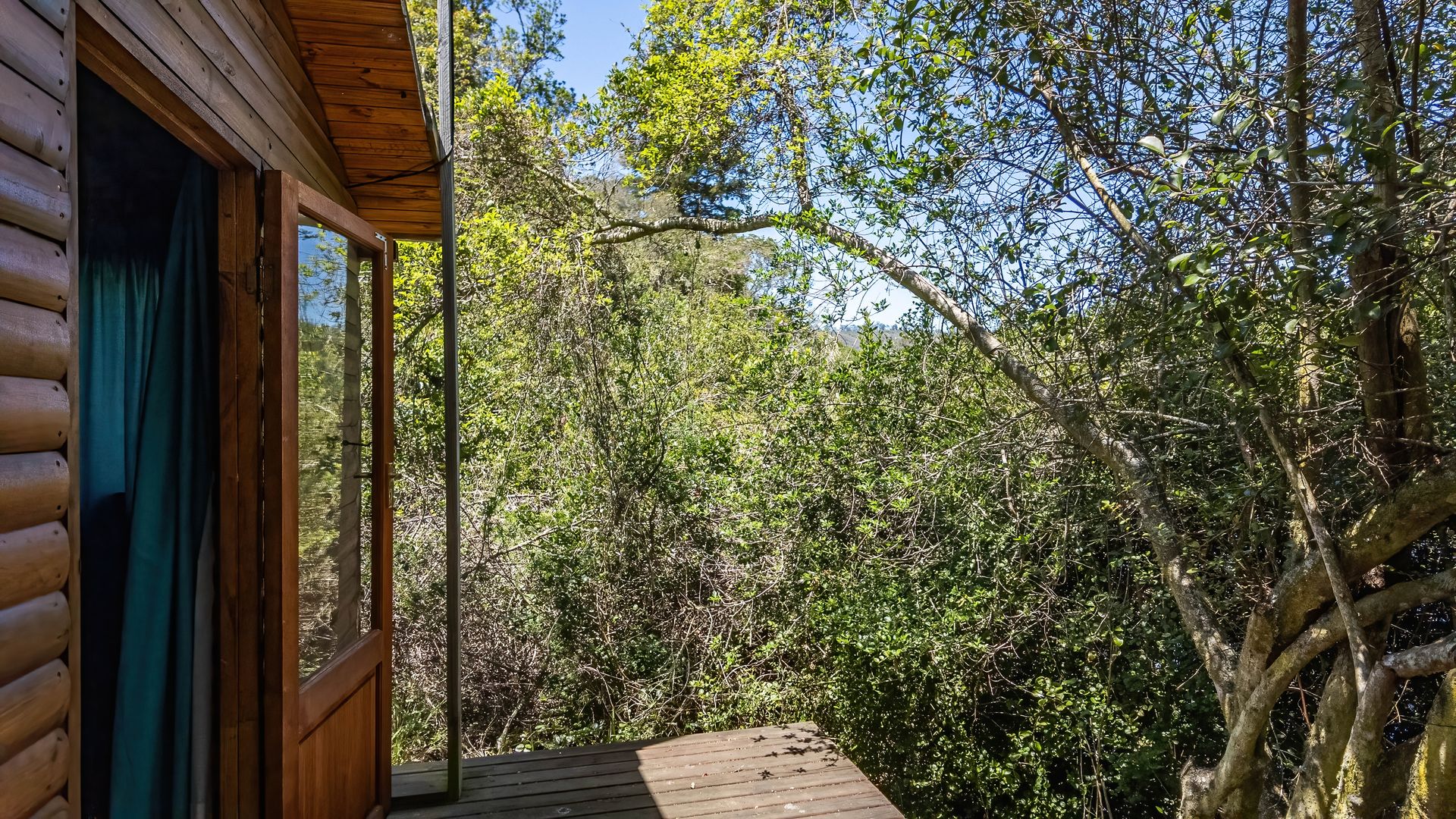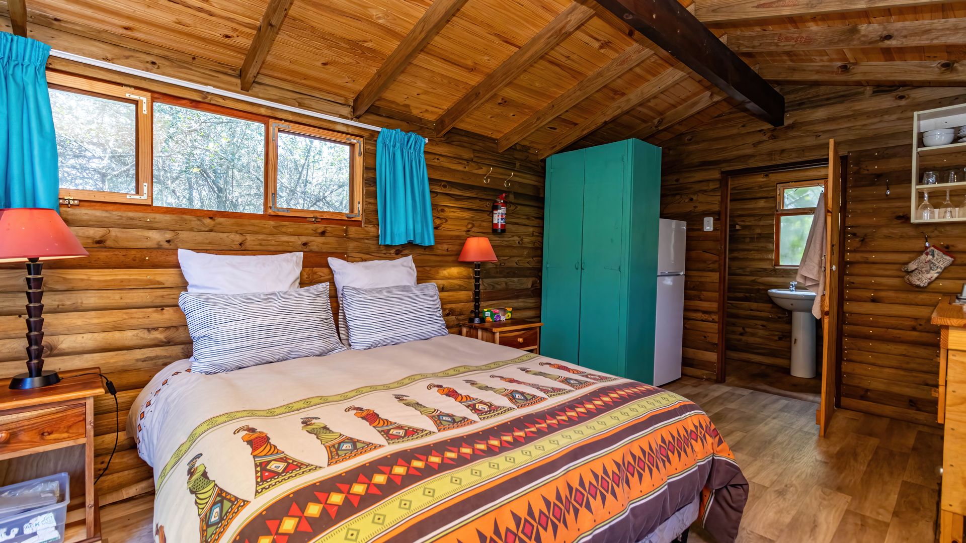 The southern section of the river boundary offers a serene, forest-hugged setting with two fully furnished one-bedroom cottages. Each unit includes a kitchenette, bedroom and bathroom, and both sit beneath the natural canopy of indigenous trees—perfect for birdwatchers wanting to spot the Knysna Loerie and other species right from the deck.