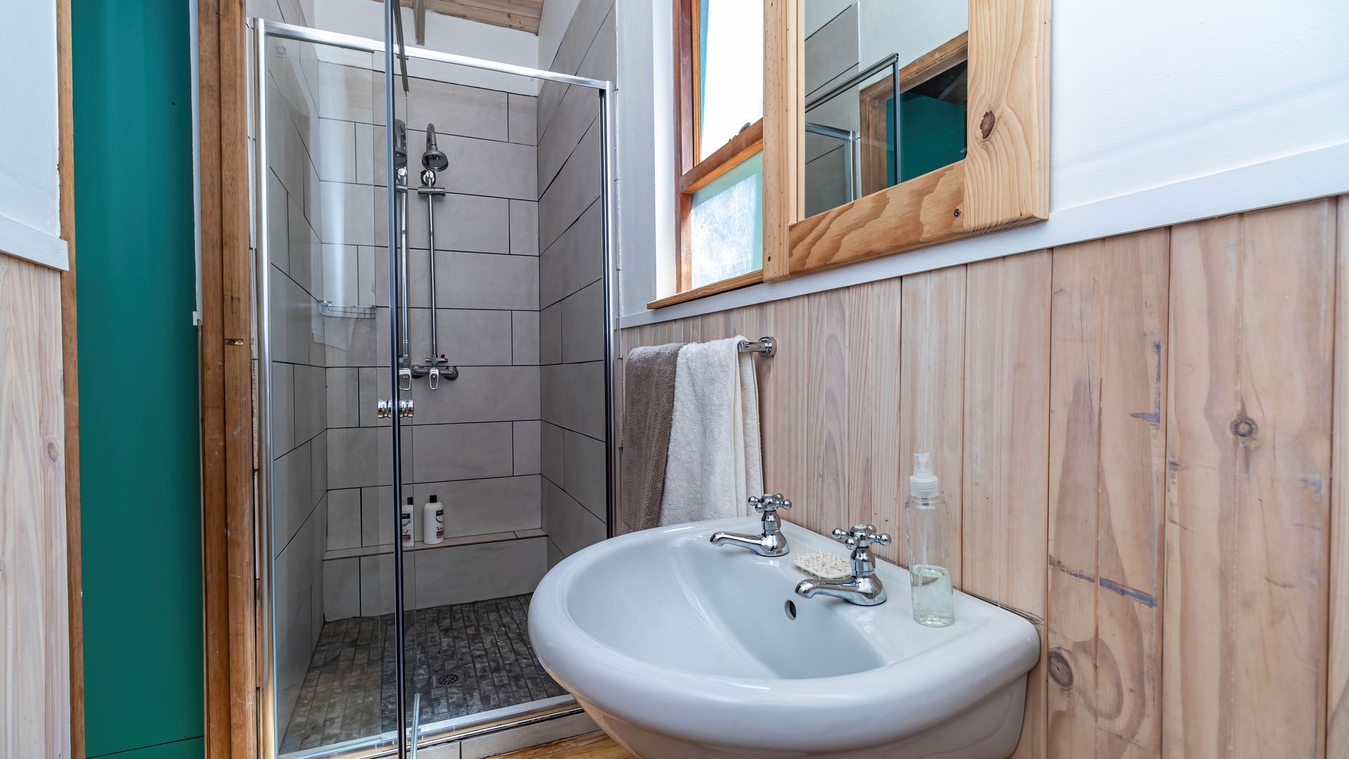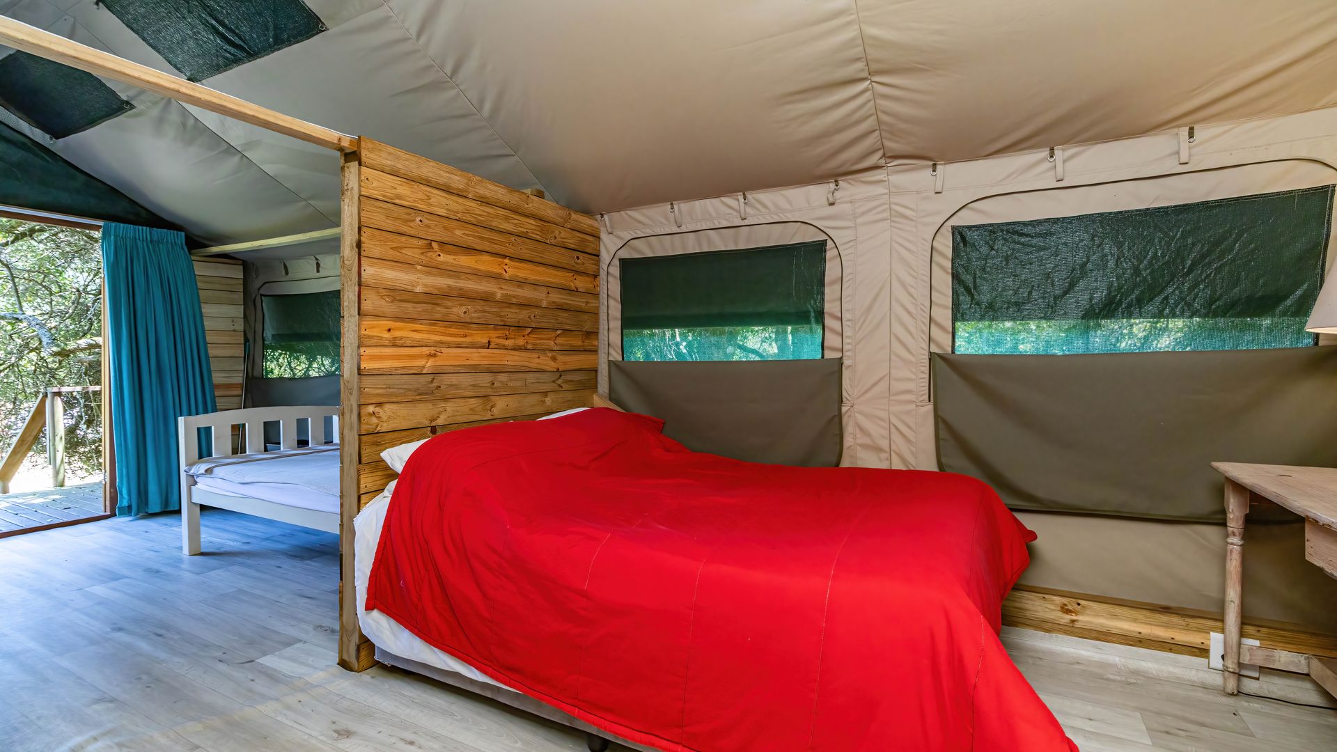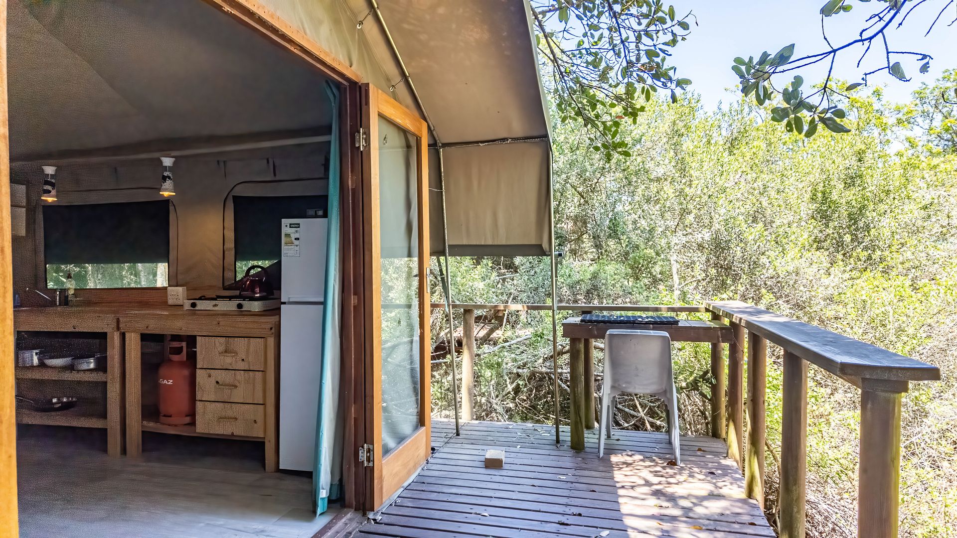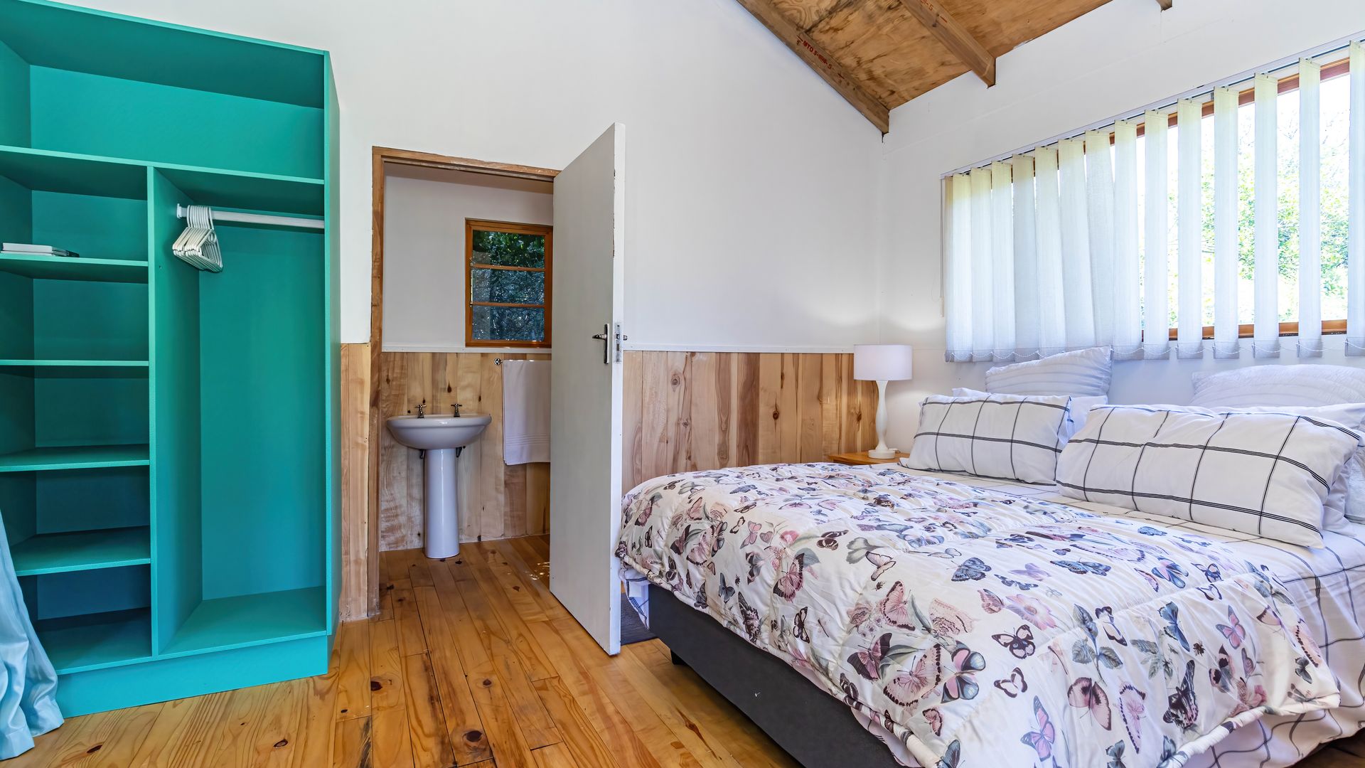 The southern section of the river boundary offers a serene, forest-hugged setting with two fully furnished one-bedroom cottages. Each unit includes a kitchenette, bedroom and bathroom, and both sit beneath the natural canopy of indigenous trees—perfect for birdwatchers wanting to spot the Knysna Loerie and other species right from the deck.