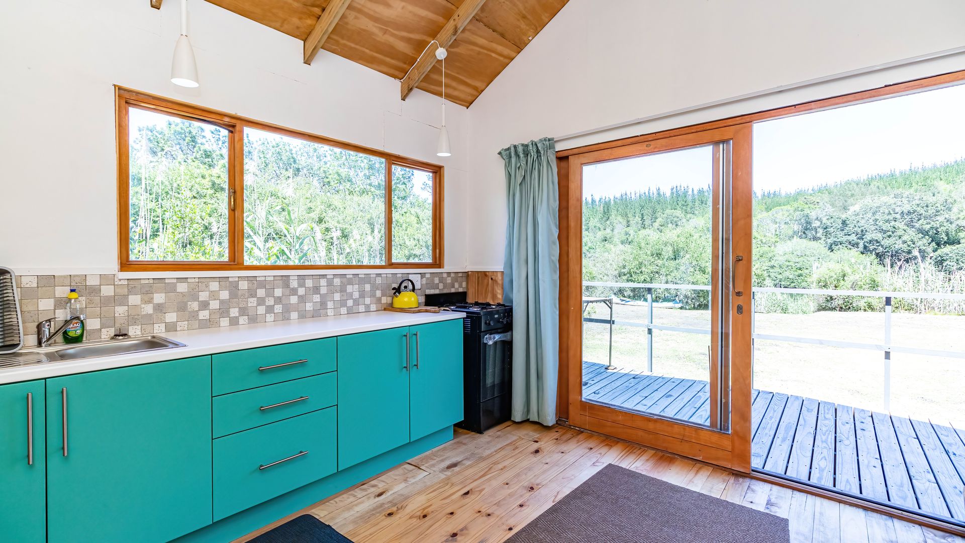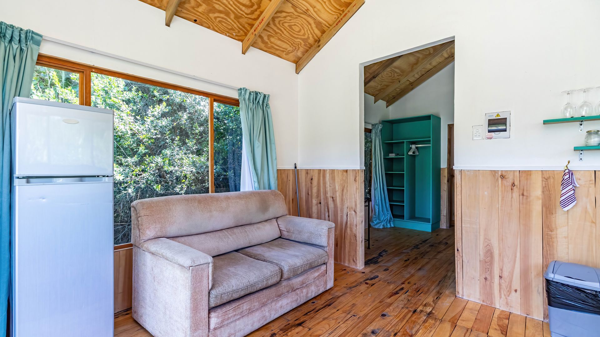 Cottage 1: A spacious two-bedroom, two-bathroom unit with an open-plan lounge, dining area and kitchen, and a deck with breathtaking river views. Furniture in this cottage is excluded from the sale.