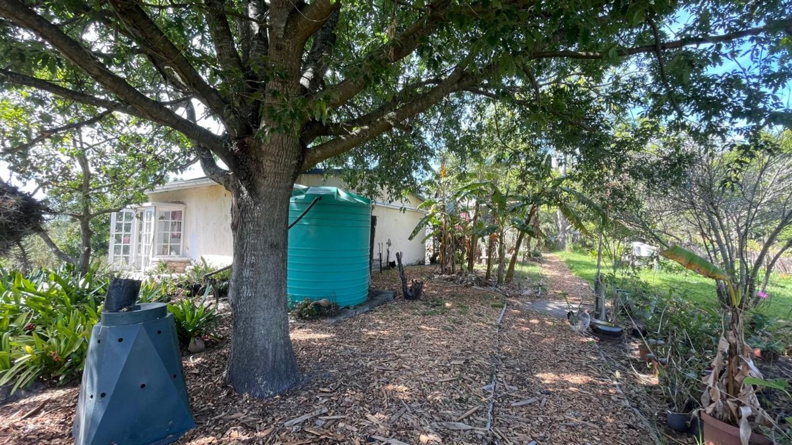 MID TIER of the property is levelled out, with 2 farmers cottages, each comprising 1 bedroom each. This level also has a packing store room and a matchbox office. The mid tier leads down to the 1 hectare of Keurboom forest, which naturally produces Shitaki mushrooms. The farm has established fruit trees including - Avocados, banana, macadamias, pecan nuts, blueberries and various citrus - all on a small scale produce. Towards the edge of this tier, a person stands still, embracing the quiet, peaceful nature and the vista of forest in front of you is magical. The land slopes down into the valley and up into the next mountain range, and the next mountain ranges, blue and misty and mysterious. Just imagine having this as your backyard...