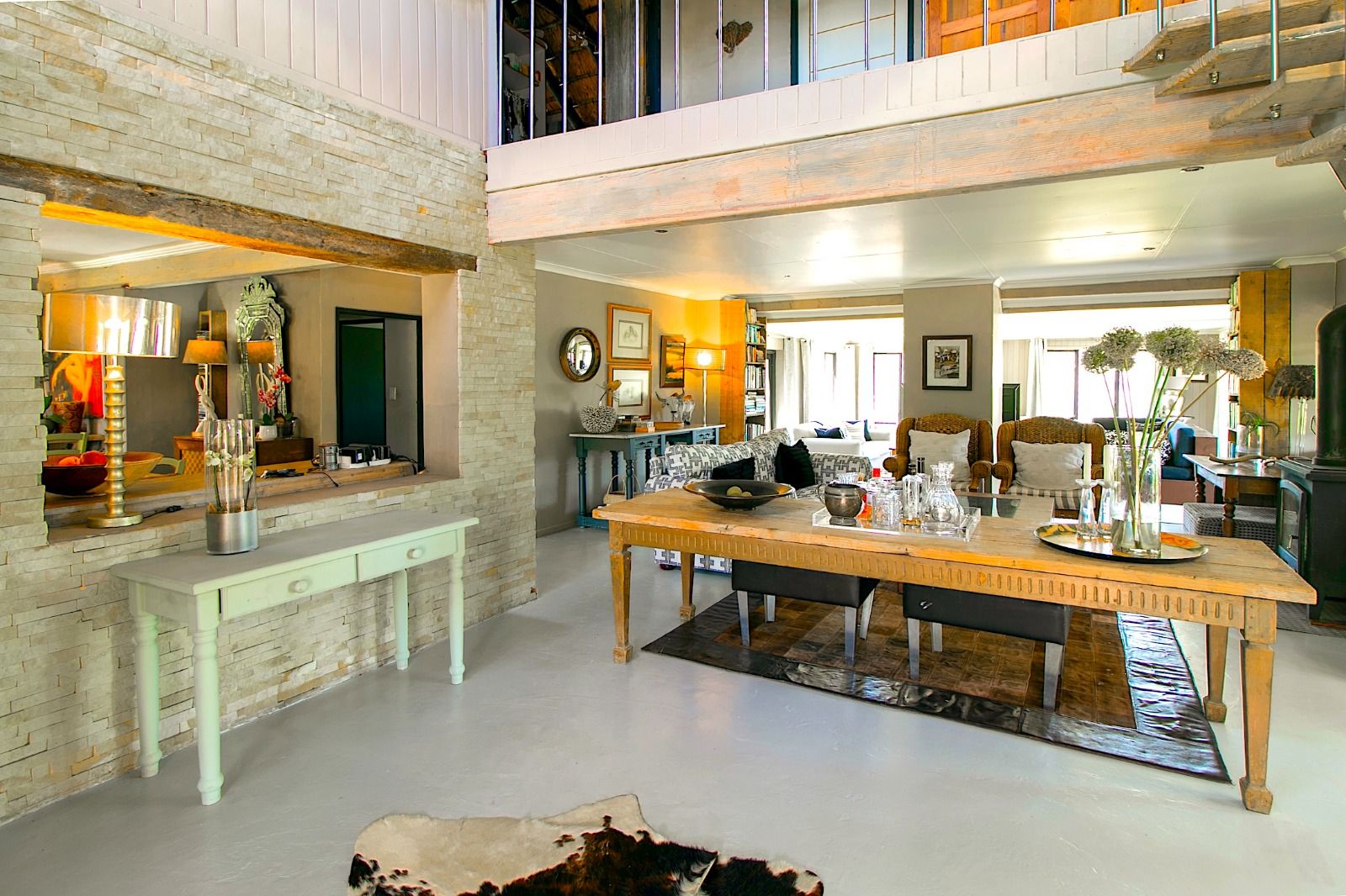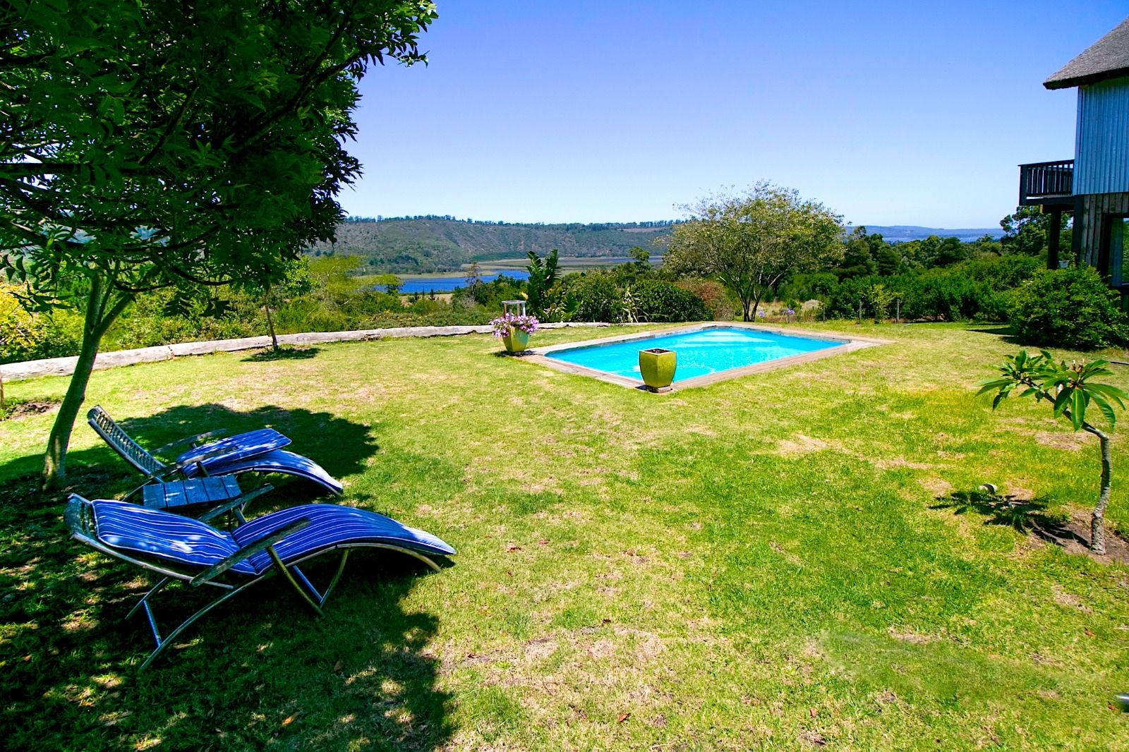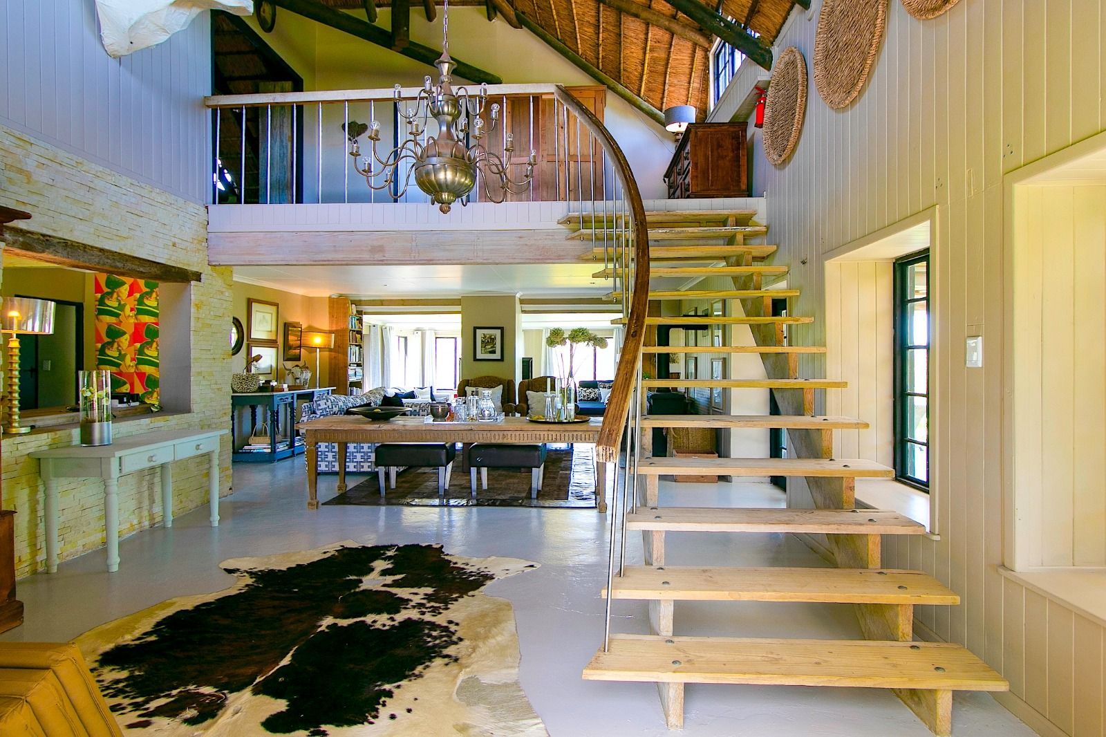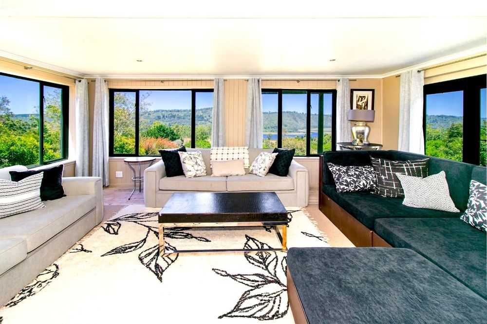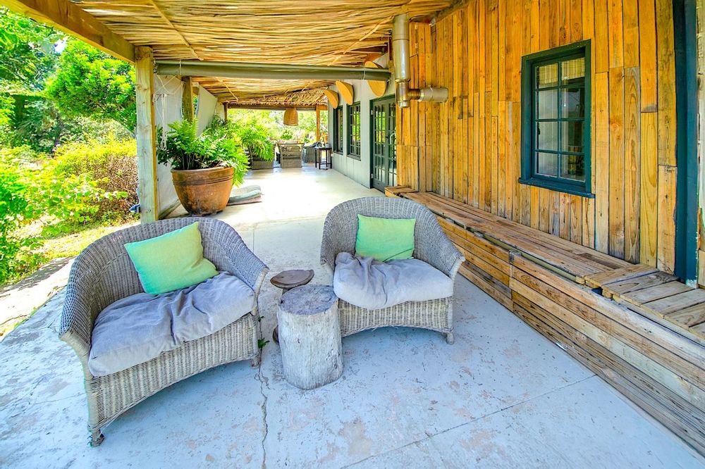 This extraordinary 25-hectare agricultural smallholding, offers a completely private world of unique character just 12km from Sedgefield. Set high on the hillside, the farm commands sweeping, uninterrupted views over the Swartvlei Estuary and the sprawling mountain landscape.The main residence is set apart by its stunning aesthetic, thanks to the main roof having been recently re-thatched, a feature that immediately sets the tone for rustic elegance. A newly redone thatch roof not only adds charm but provides excellent natural insulation, helping keep the home cooler in summer and warmer in winter. The grand entrance hall, graced by a stylish staircase, leads to spacious, light-filled living areas. These include a generous lounge which captures the magnificent views and flows seamlessly to a sparkling swimming pool. For cooler evenings, the family room centers around a wood-burning fireplace, providing a cozy heart for the home.Accommodation includes three spacious bedrooms and three bathrooms, with a private ensuite on the ground floor for ease of access and two bedrooms resting upstairs. The charming farm-style kitchen, featuring an open-plan dining area and a separate working scullery/laundry, opens onto a generous, north-facing verandah—an ideal spot for entertaining or soaking in the views.