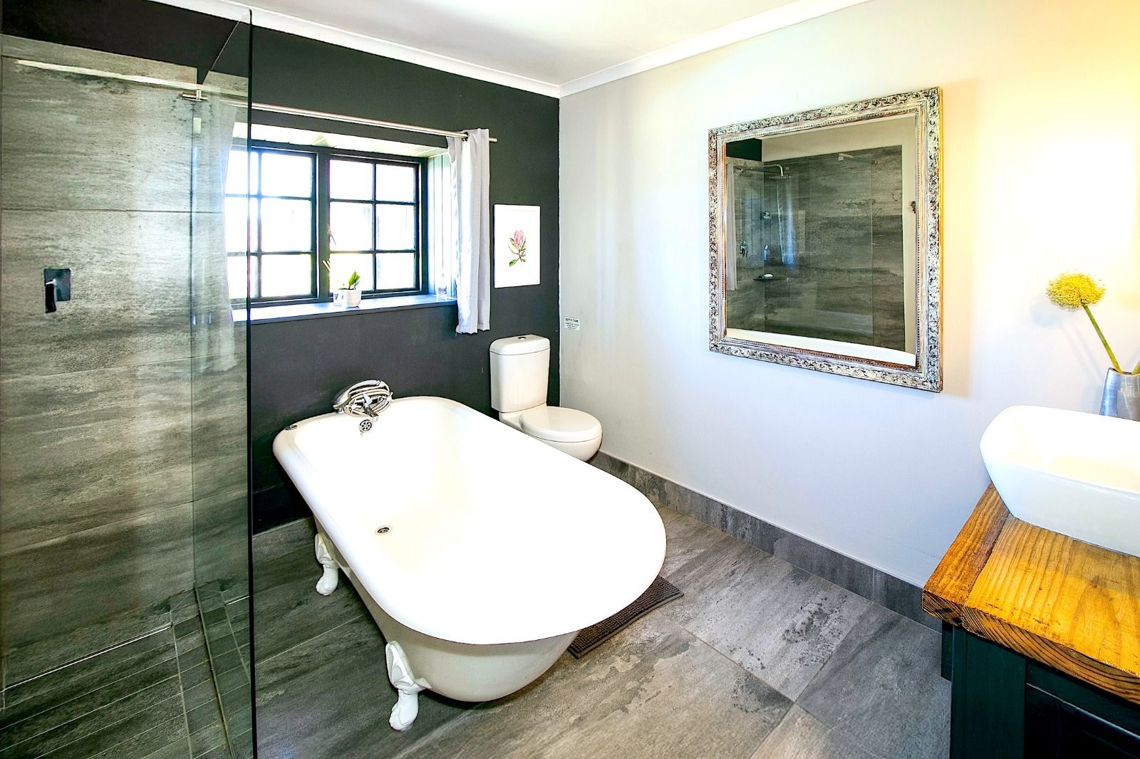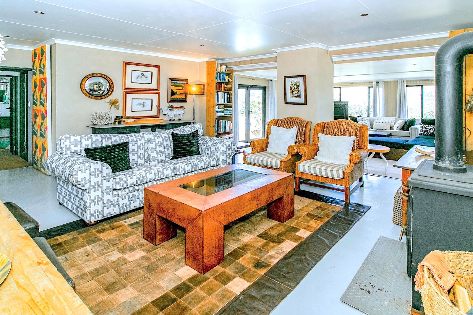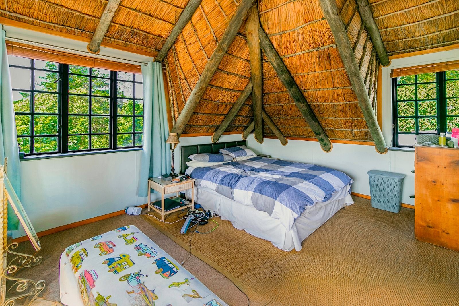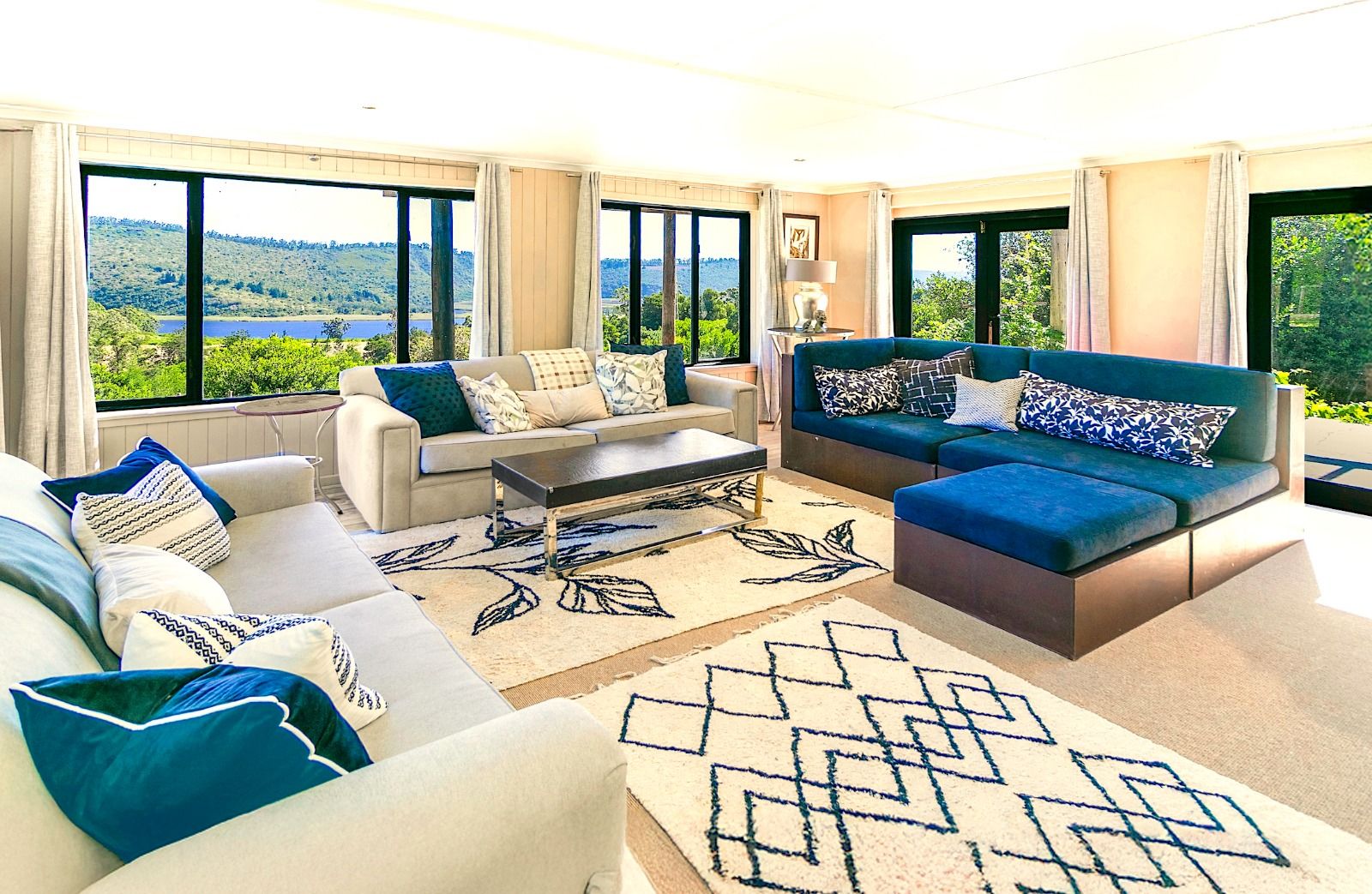 This extraordinary 25-hectare agricultural smallholding, offers a completely private world of unique character just 12km from Sedgefield. Set high on the hillside, the farm commands sweeping, uninterrupted views over the Swartvlei Estuary and the sprawling mountain landscape.The main residence is set apart by its stunning aesthetic, thanks to the main roof having been recently re-thatched, a feature that immediately sets the tone for rustic elegance. A newly redone thatch roof not only adds charm but provides excellent natural insulation, helping keep the home cooler in summer and warmer in winter. The grand entrance hall, graced by a stylish staircase, leads to spacious, light-filled living areas. These include a generous lounge which captures the magnificent views and flows seamlessly to a sparkling swimming pool. For cooler evenings, the family room centers around a wood-burning fireplace, providing a cozy heart for the home.Accommodation includes three spacious bedrooms and three bathrooms, with a private ensuite on the ground floor for ease of access and two bedrooms resting upstairs. The charming farm-style kitchen, featuring an open-plan dining area and a separate working scullery/laundry, opens onto a generous, north-facing verandah—an ideal spot for entertaining or soaking in the views.
