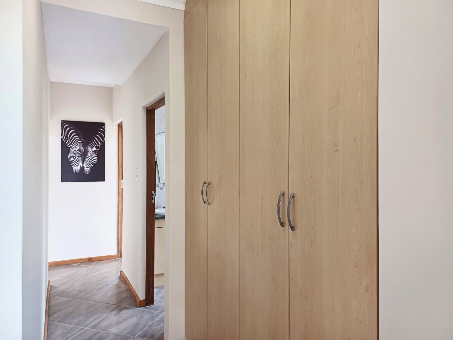 The heart of this home is the sleek, modern kitchen, outfitted with granite countertops that perfectly balance style and functionality. An indoor braai area adds a cozy touch, ideal for entertaining or enjoying quiet evenings while taking in the picturesque surroundings.