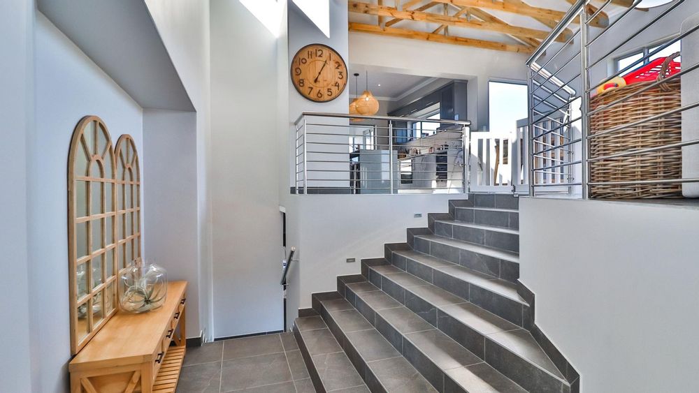 Nestled just 4 km from the beautiful Hartenbos beach and its array of amenities, this stunning modern double-story home offers the perfect blend of comfort and nature. Ideal for the tranquility-loving nature enthusiast, this property presents a cozy yet spacious living environment with breathtaking views.