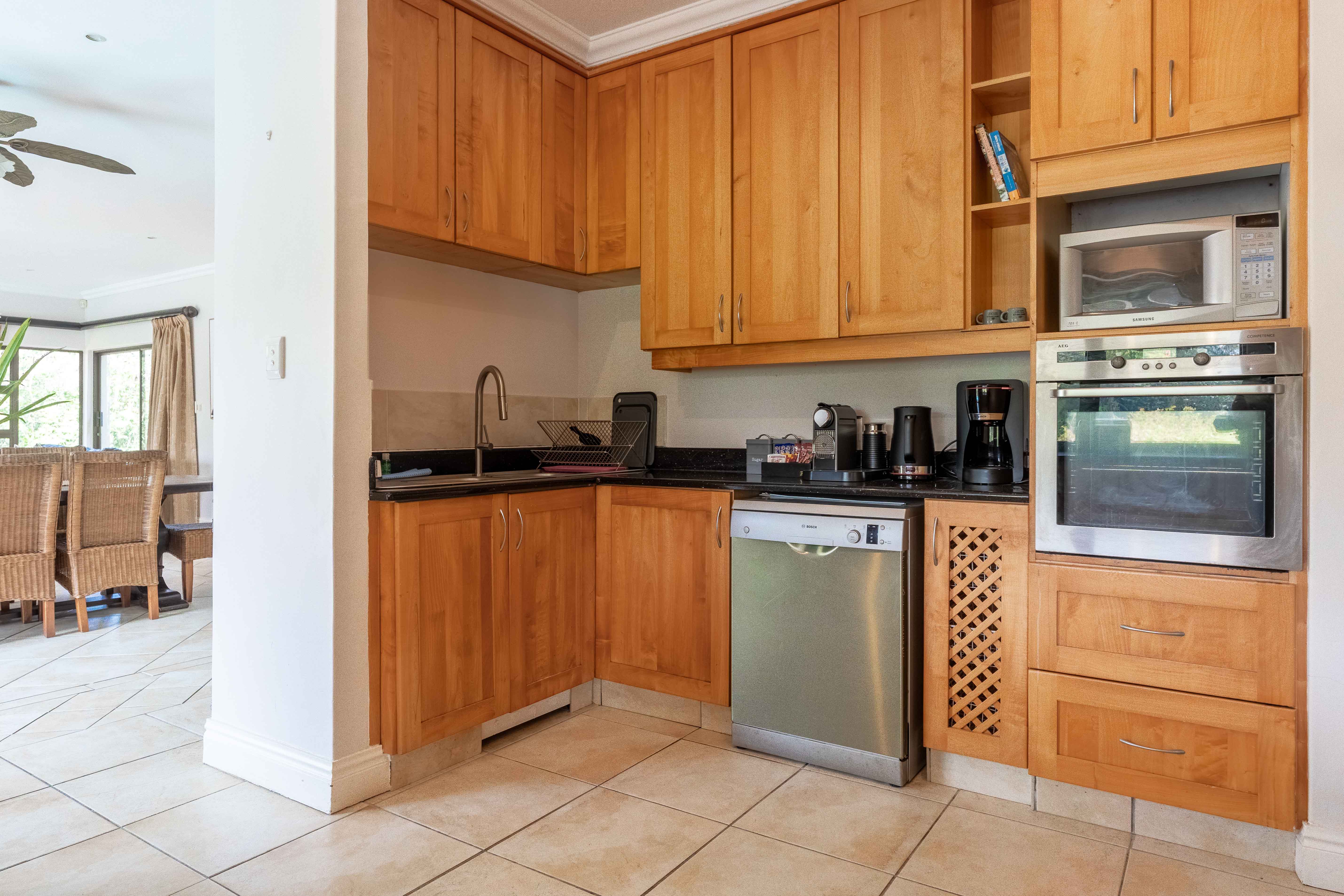 Step inside to find a beautifully furnished living space that effortlessly combines functionality with aesthetic appeal. The double volume entrance hall leads you down the passage into an open airy living space making it perfect for entertaining. The kitchen which is equipped with granite countertops, a convection oven, hob, and an extractor.
