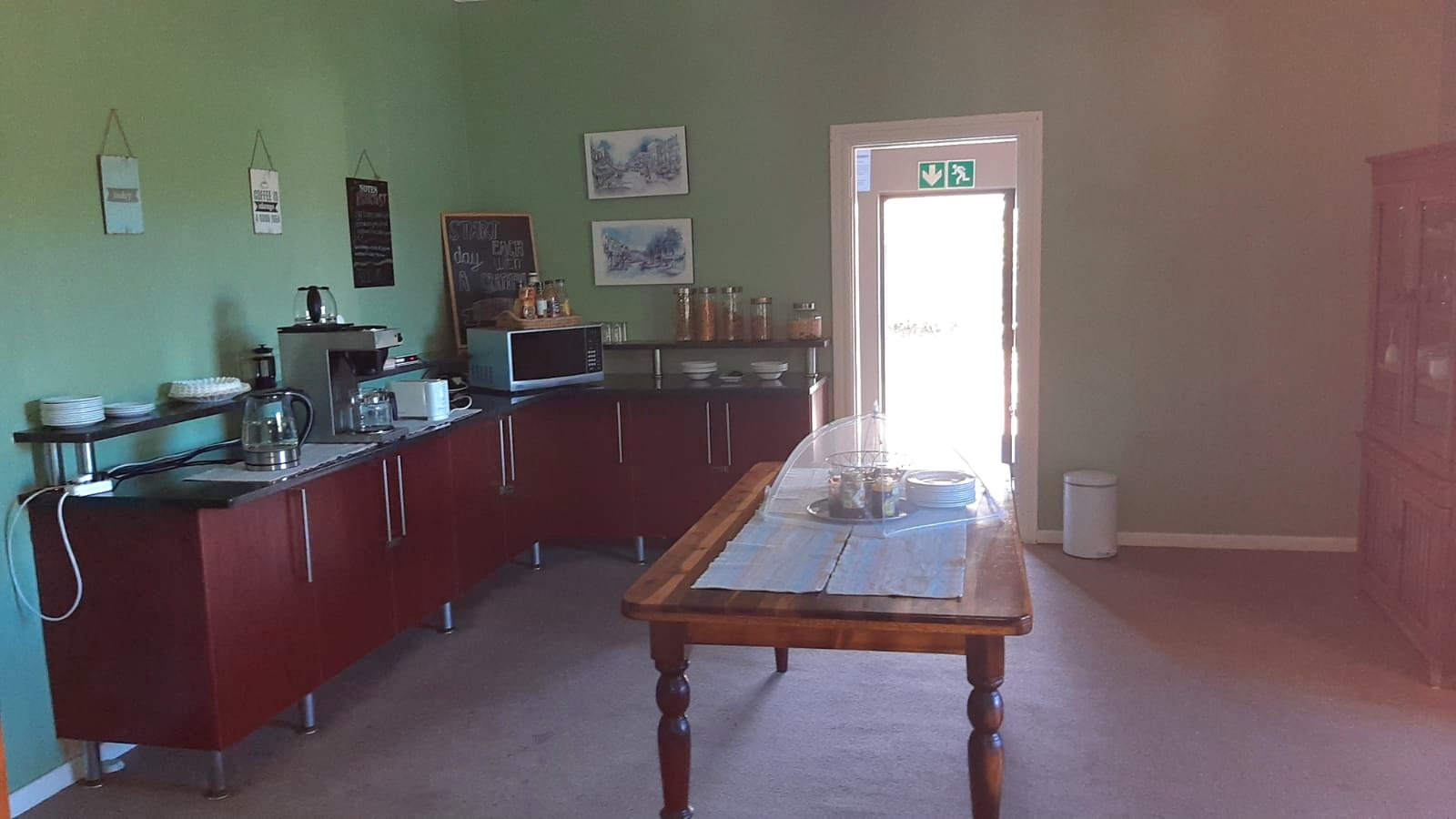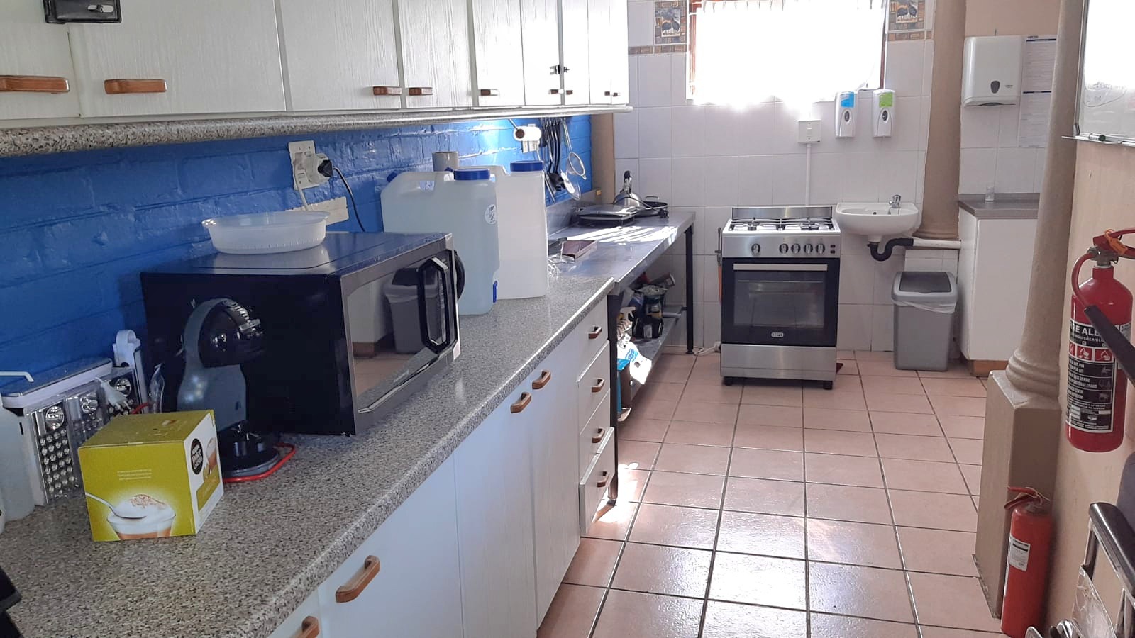 A reception area with CCTV monitor's and an inverter, a full kitchen, guest dining area and serving area as well as a lounge.