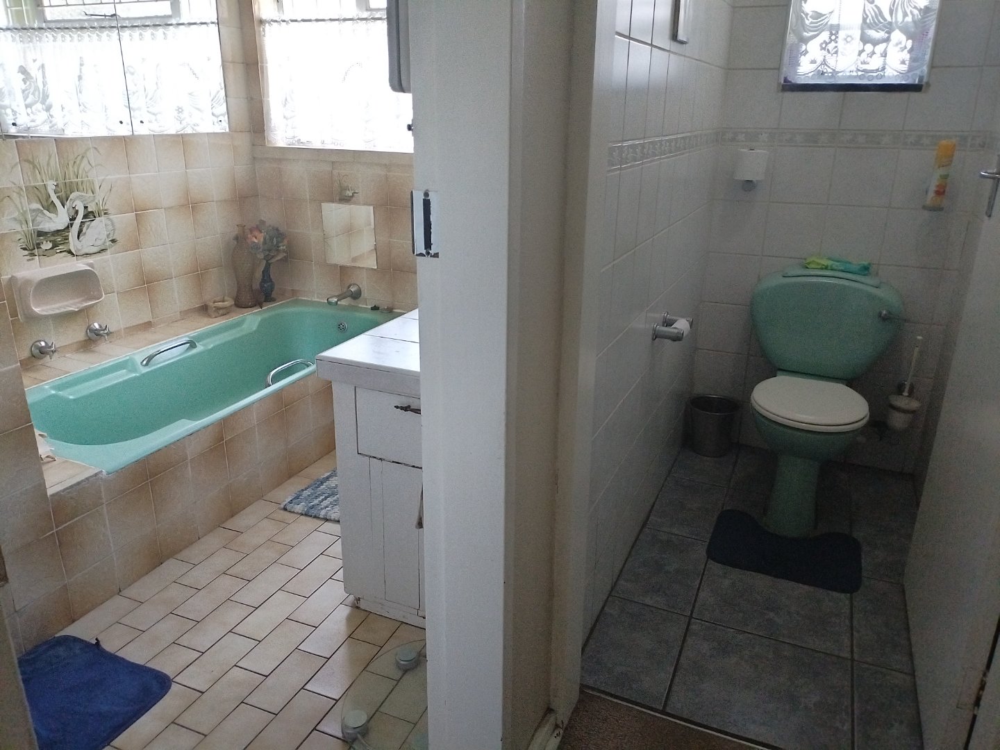 - Bathroom consisting of bath/shower/basin with cabinet and separate toilet