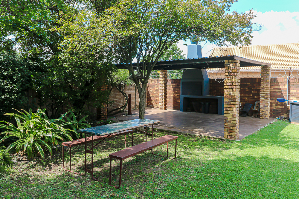 Immaculate Family Home That Keeps On Surprising! Welcome to this beautifully maintained 3-bedroom family home, packed with modern features, thoughtful extras, and endless space for living, working, and entertaining. Warm, welcoming, and move-in ready — this home truly ticks every box. Step inside to a spacious living area featuring a cozy combustion fireplace, ideal for those crisp winter evenings. The dining room flows effortlessly into the newly renovated kitchen (completed in April this year), fitted with a modern gas hob — a dream space for any home chef. A dedicated study provides the perfect work-from-home setup or a quiet retreat. The home offers 3 generously sized bedrooms, each fitted with built-in cupboards and ceiling fans for added comfort. There are 21⁄2 bathrooms, and the beautifully maintained parquet floors add warmth and charm throughout. Freshly painted in October this year, it feels bright and refreshed. The roof was serviced and painted in June, providing long-term peace of mind. Outdoors, the family fun continues! A sparkling swimming pool and built-in braai area make entertaining effortless, while the spacious yard gives children plenty of room to run and play. Extras include: 2 garages with electric motors Undercover parking for up to 4 additional vehicles (perfect for a caravan, trailer, or guests) 2 store rooms Staff quarters Security cameras for added peace of mind A borehole with a full filtration system providing clean water to the home Solar geyser that can be controlled directly from your cell phone for convenience and energy efficiency This exceptional home is the perfect balance of comfort, practicality, and generous space — ready for your family to enjoy for years to come. Don’t miss out on this rare gem — it truly has it all!