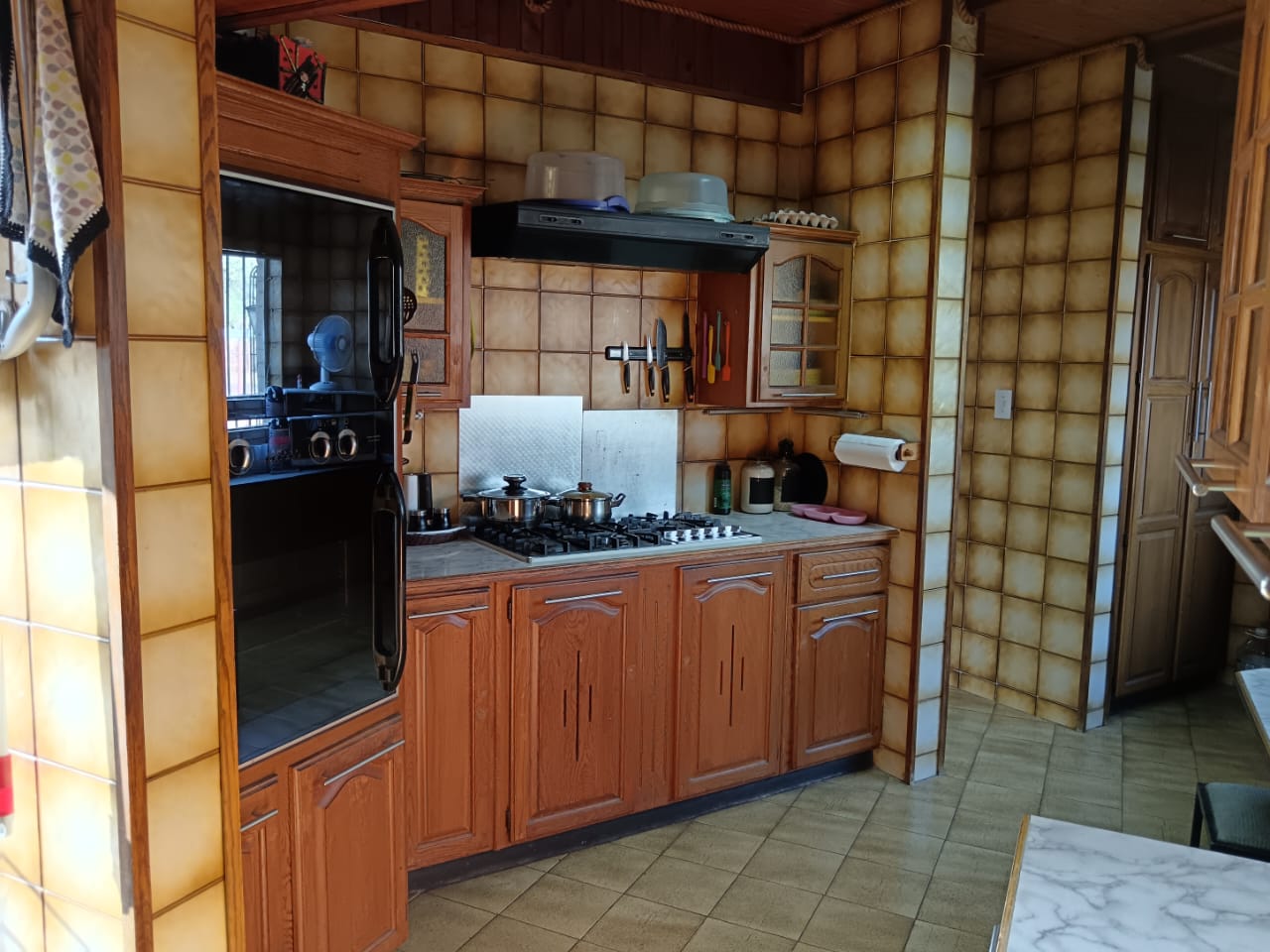 Kitchen: Generous cupboard space, eye-level oven, 5-burner gas stove, and separate scullery