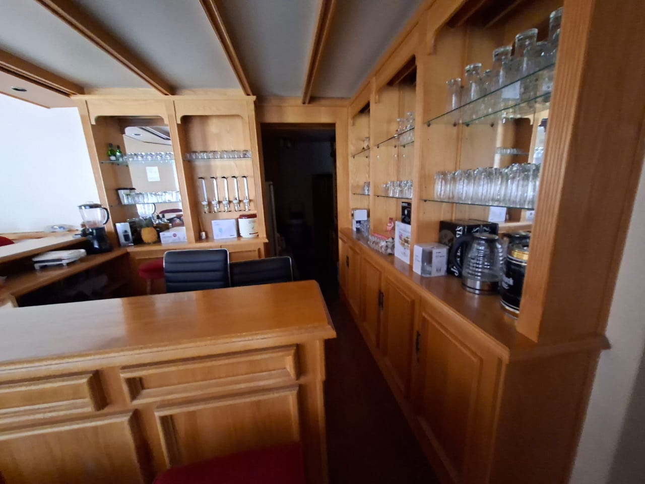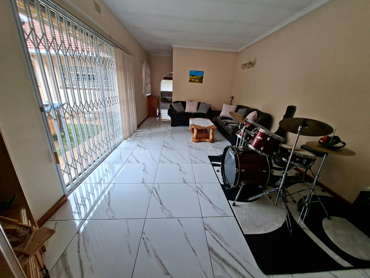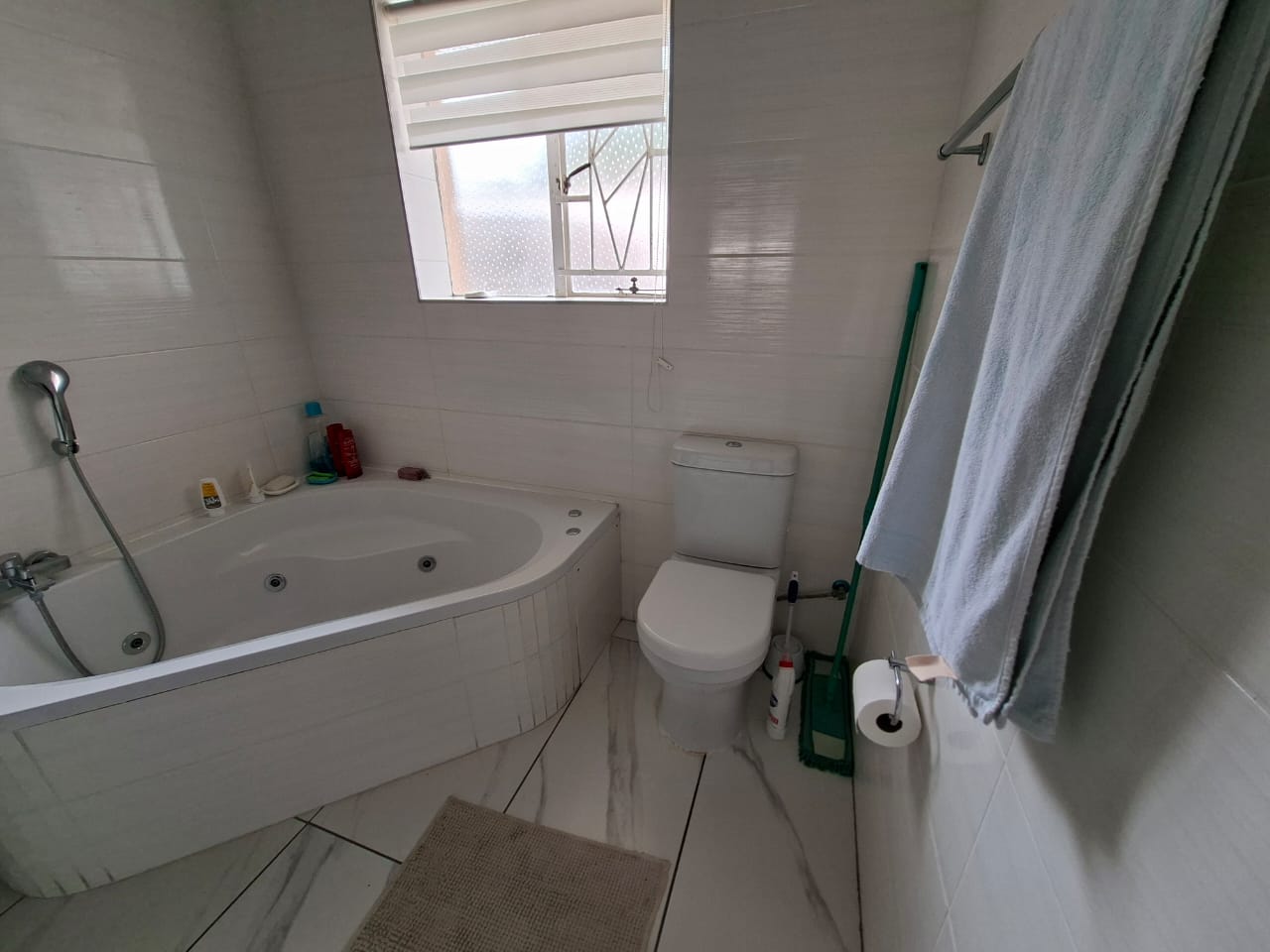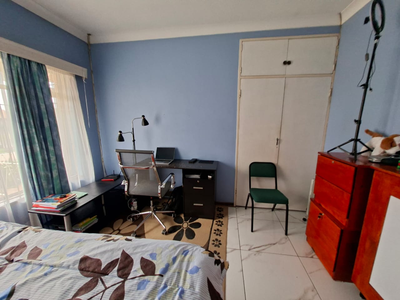 From the dining room, an open-plan entertainment area unfolds, featuring a lounge and pool table. A sliding door leads outside to the backyard. Descending, you'll find a bar with another sliding door opening up to the swimming pool area. Further down, discover a braai stove, kitchen storeroom, and toilet, all set against a beautiful view facing the pool area.