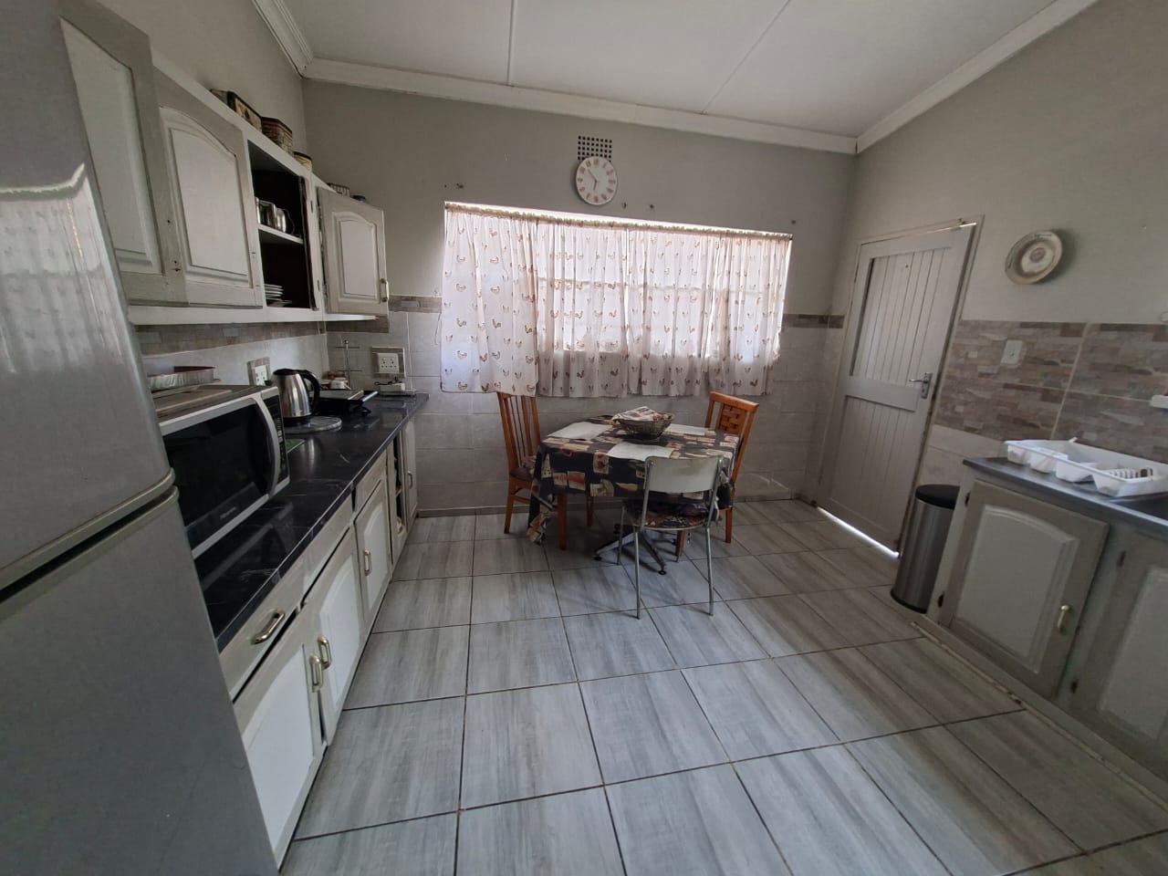 Entering the main house from the front, you are welcomed by a lovely garden filled with colourful flowers, setting a warm and homely tone. Through the front door, the home opens into an open-plan dining and lounge area situated to the far left, offering a spacious and comfortable living environment ideal for family gatherings.