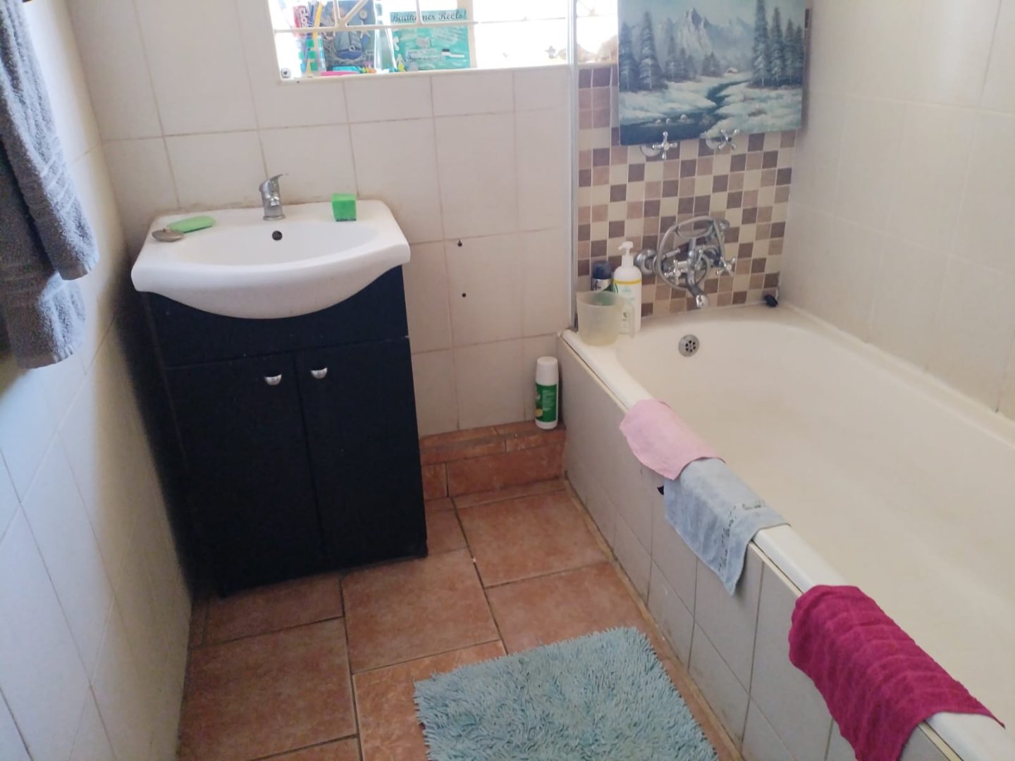 - Bathroom consisting of bath/basin with cabinet and separate toilet