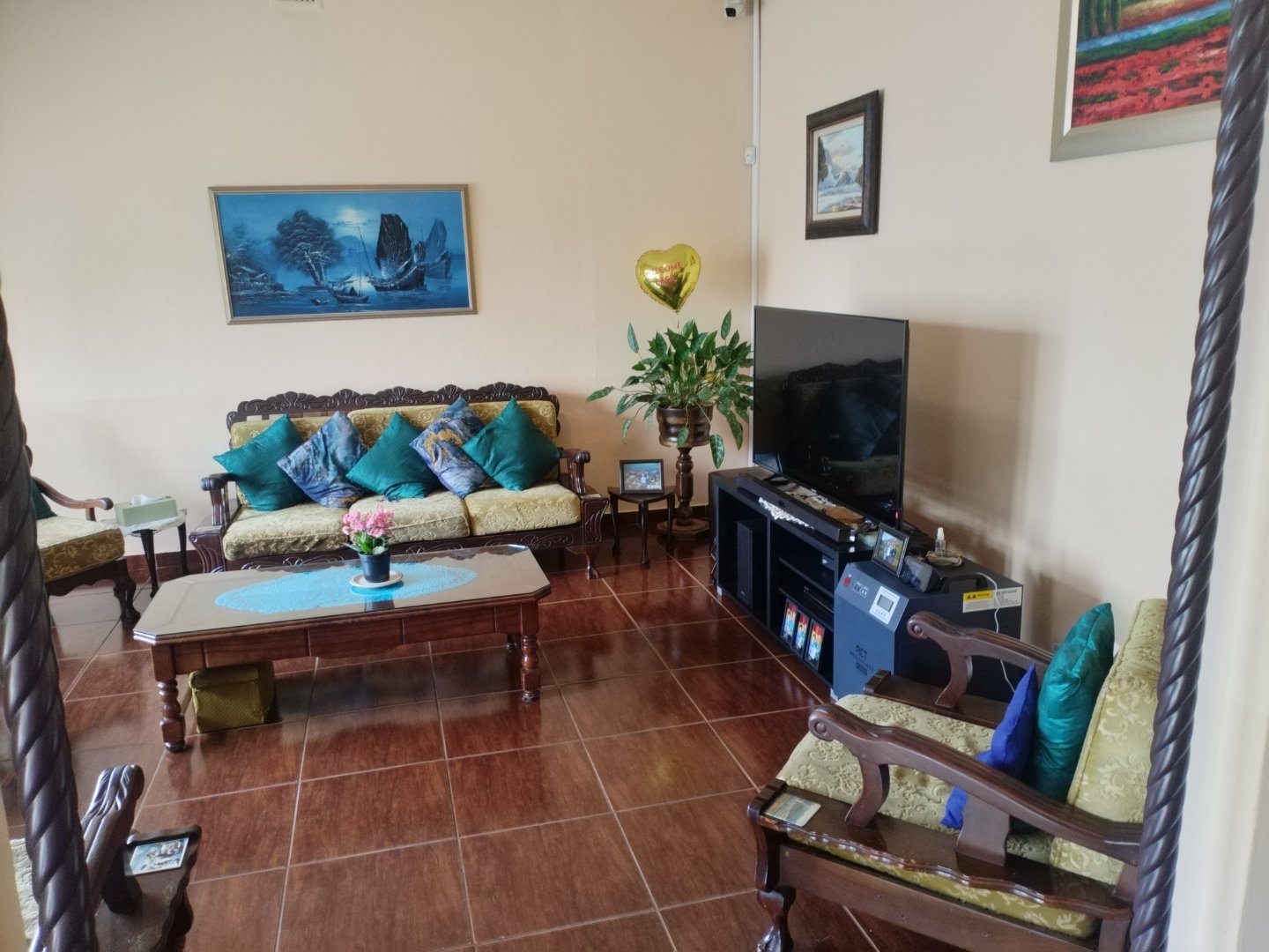 Very Large Family Home with a modern look, Exquisite Tiling, neat all the way through and beautiful established garden blended with interactive family atmosphere that makes it unique, standing out above the rest. It comes with EXTRA LARGE WENDYHUT that can be used as a entertaining area with it's own build in braai, perfect for holding events a family dance, adjacent is ann outbuilding consisting of small kitchenette/neat shower/toilet with small Ariston geyser, perfect for inverting into a flatlet PLUS SPECIALIZED VEGIE GARDEN and offers the following: