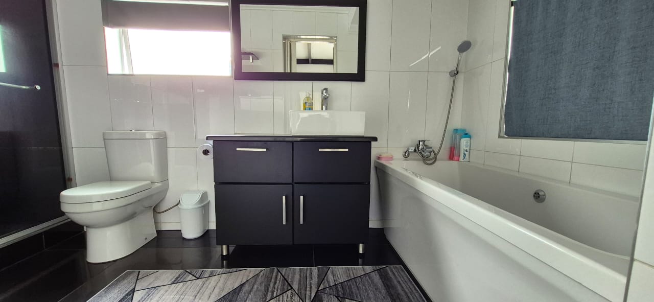 As you enter, you’re greeted by a beautifully manicured garden and a family-sized pool, accompanied by an outdoor entertainment area and jacuzzi. You’ll love the expansive indoor entertainment space, complete with stack doors that lead to the pool area, a built-in braai, bar furniture, and surround sound—perfect for hosting gatherings!