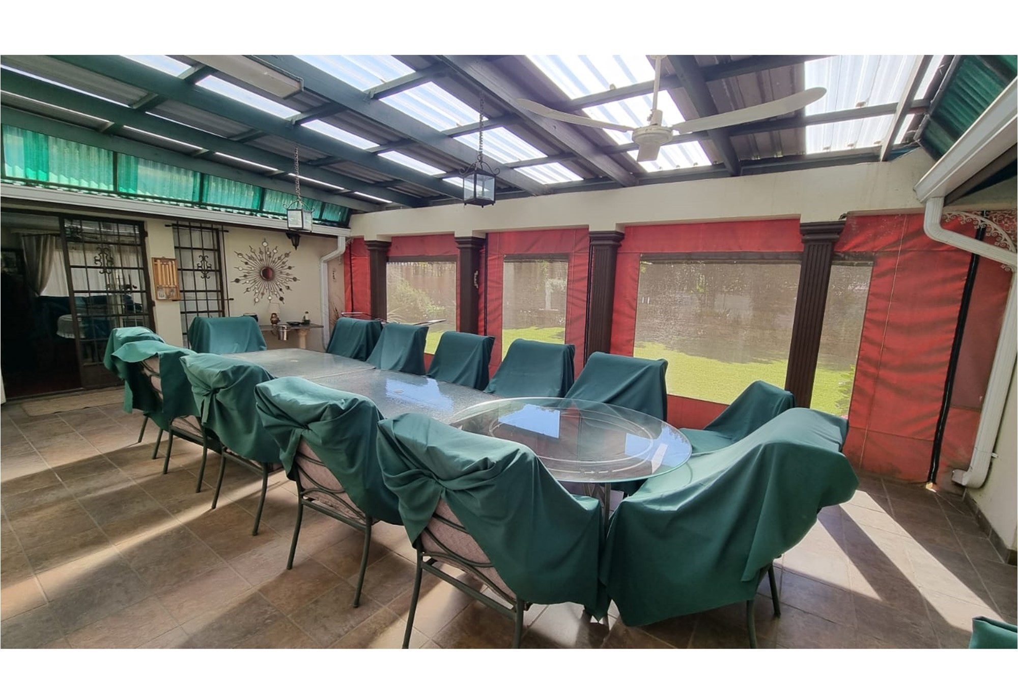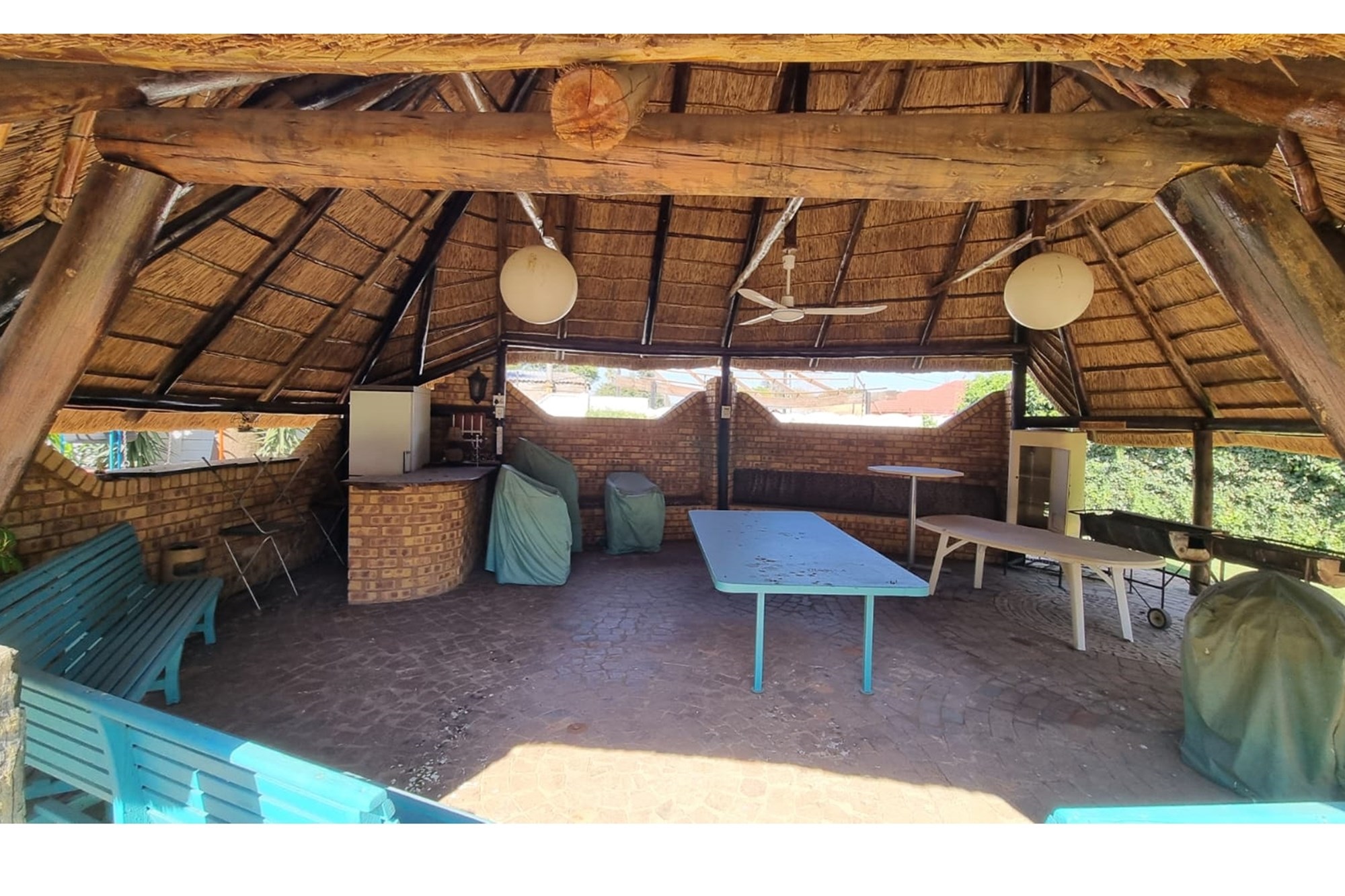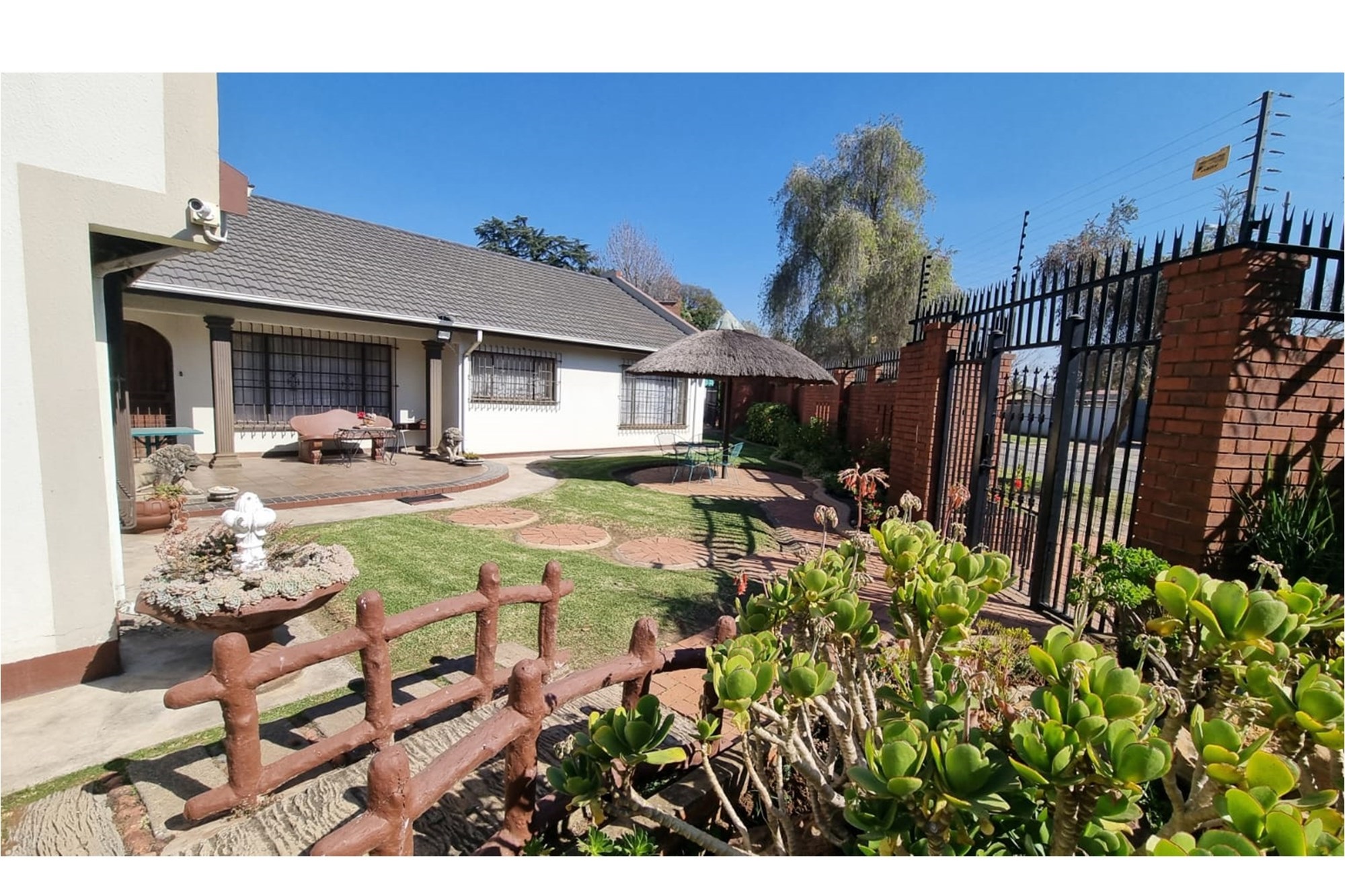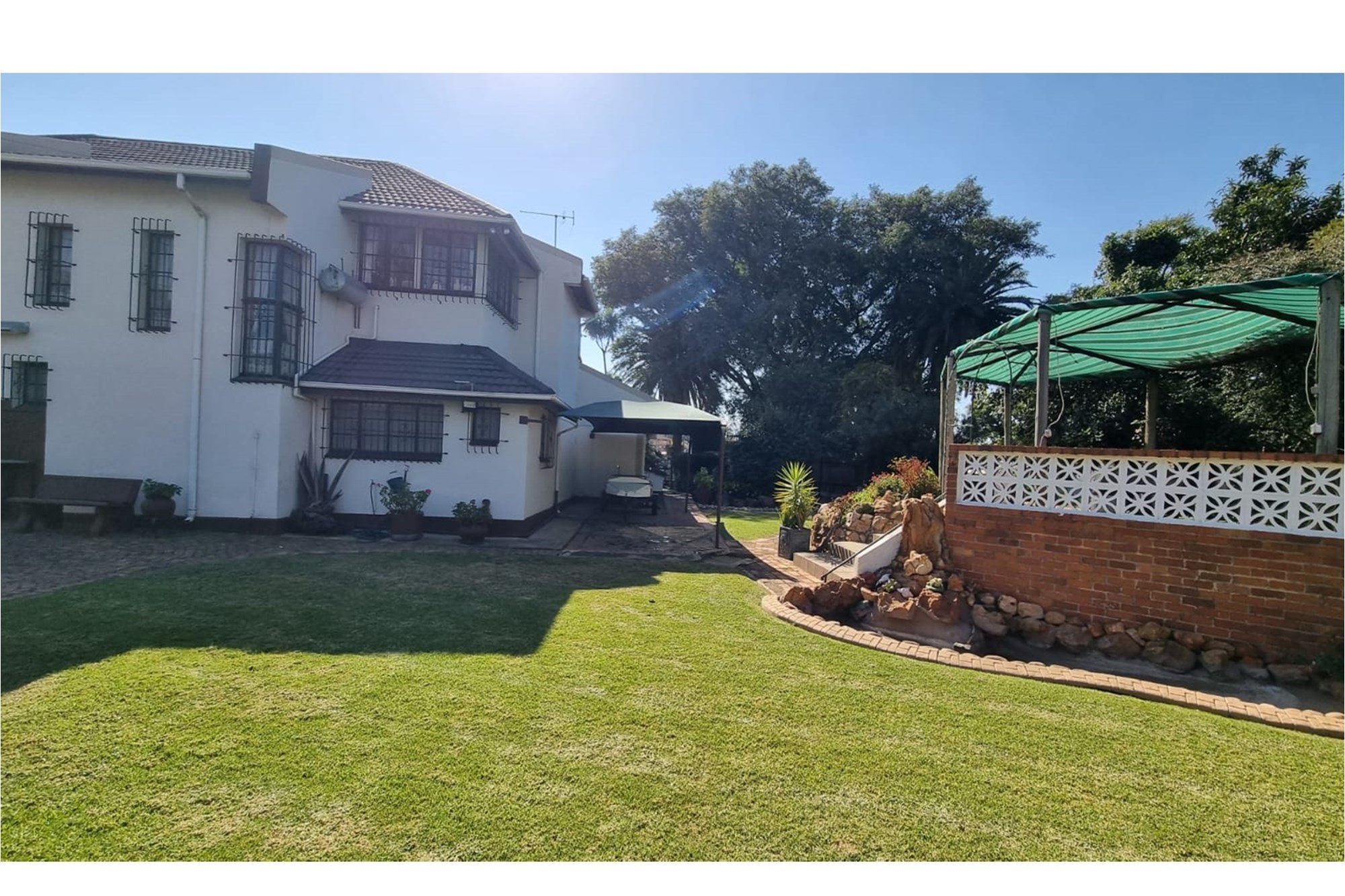 On hot summer days, cool down with the installed air conditioning or take advantage of the landscaped garden, complete with an advanced irrigation system. For outdoor lovers, a veranda, terrace, balcony, and patio offer numerous opportunities for relaxation or entertaining with a state-of-the-art barbeque pit and braai area. Rest easy knowing security is prioritized with 24-hour manned CCTV cameras, an alarm system, and security surveillance.