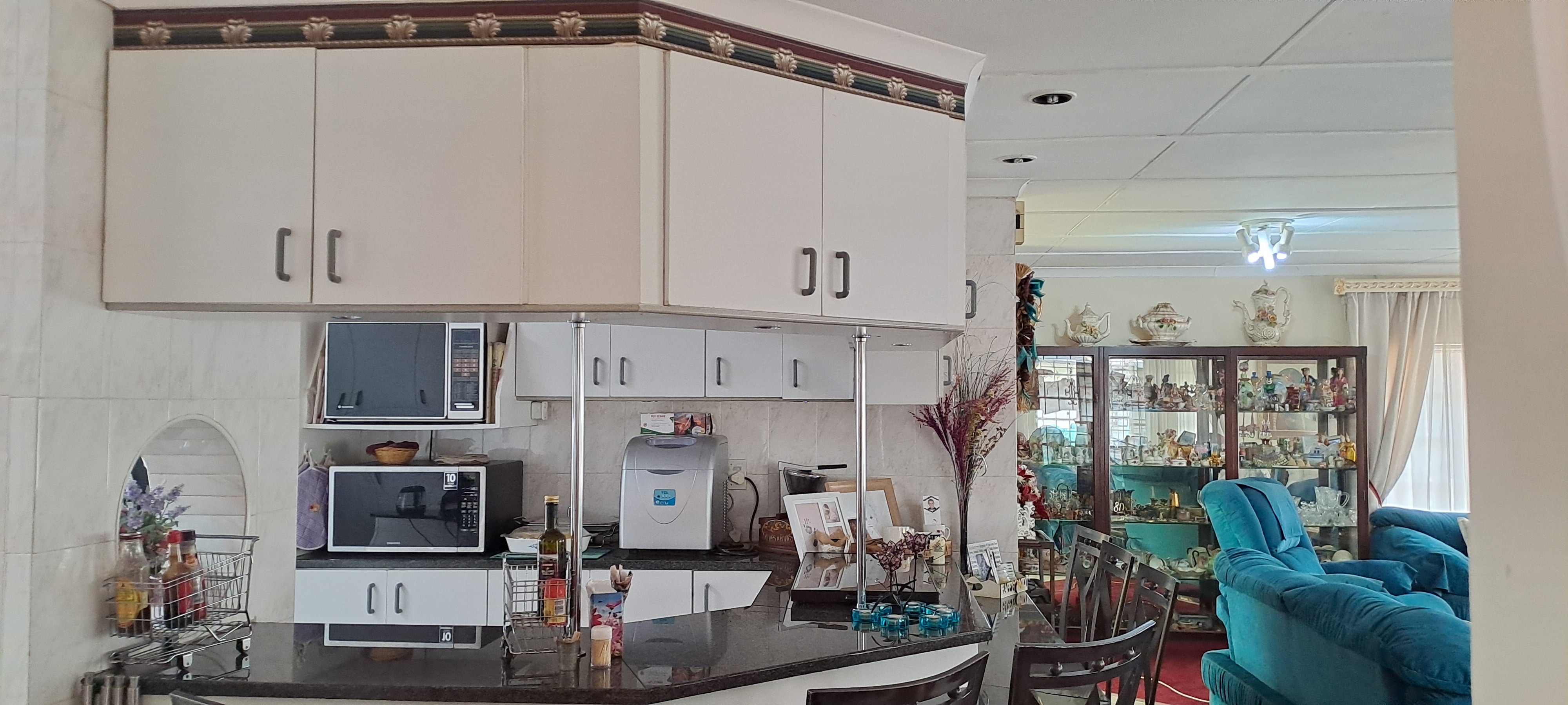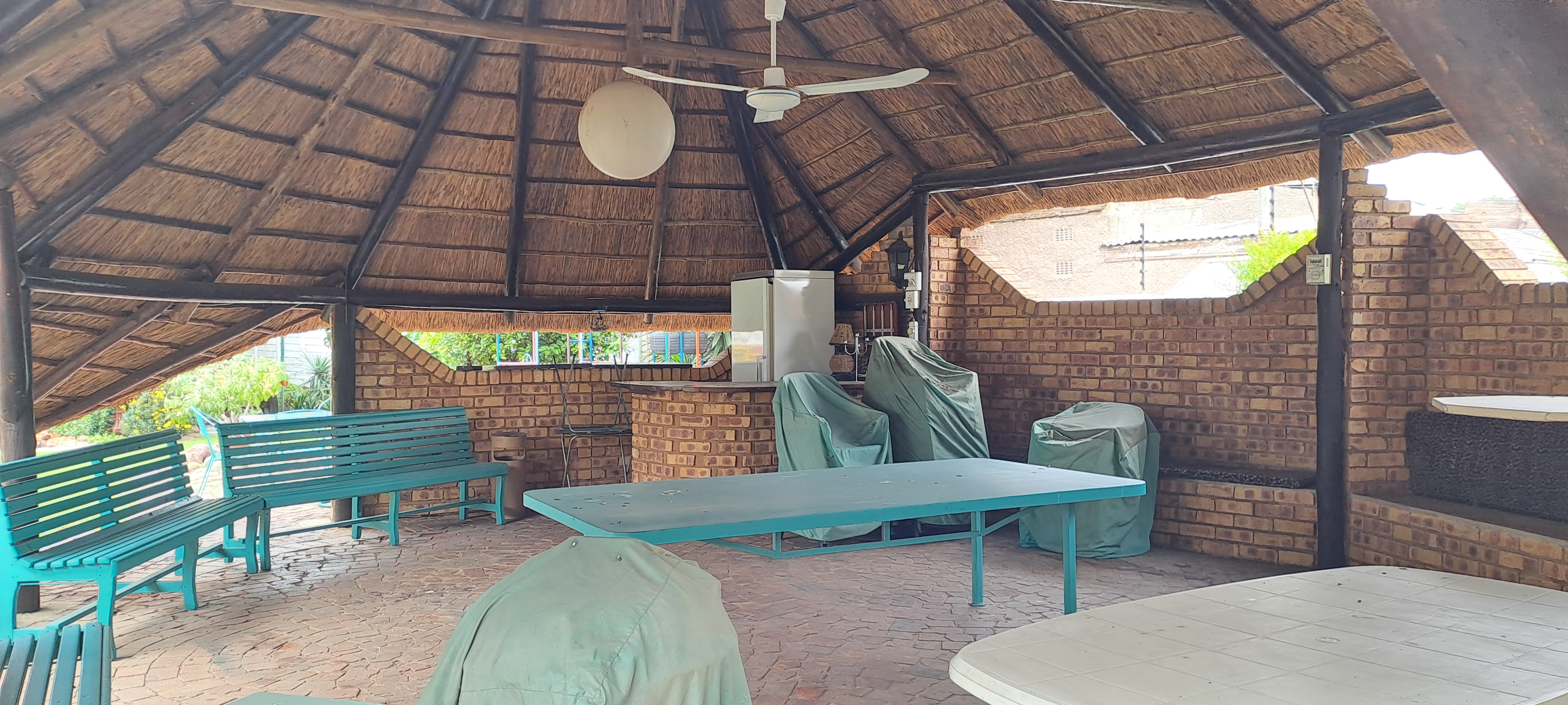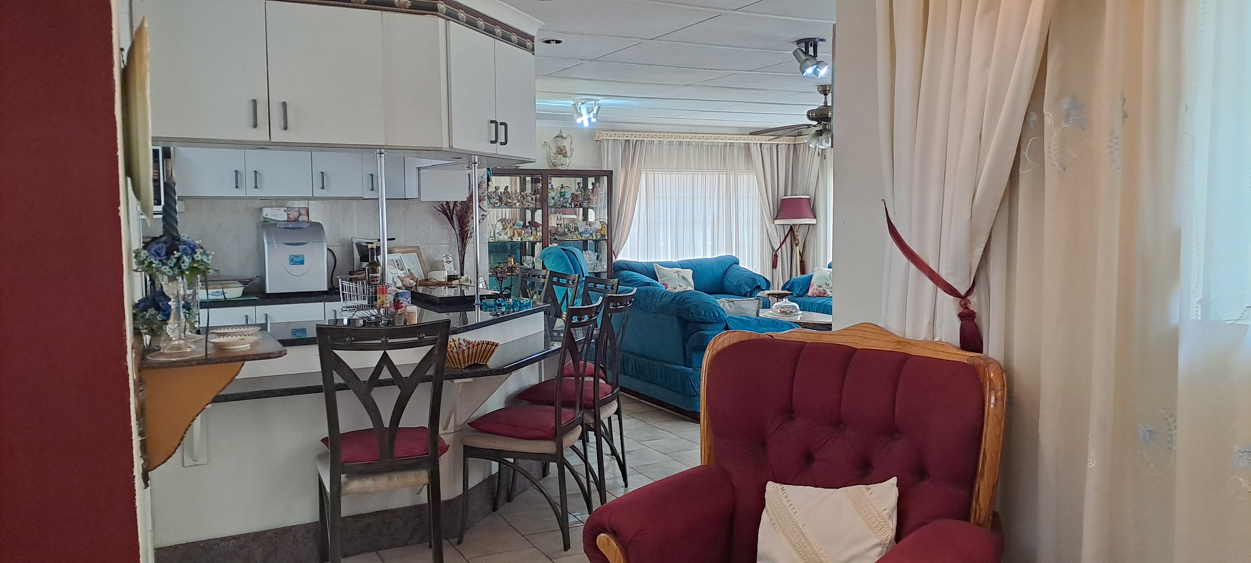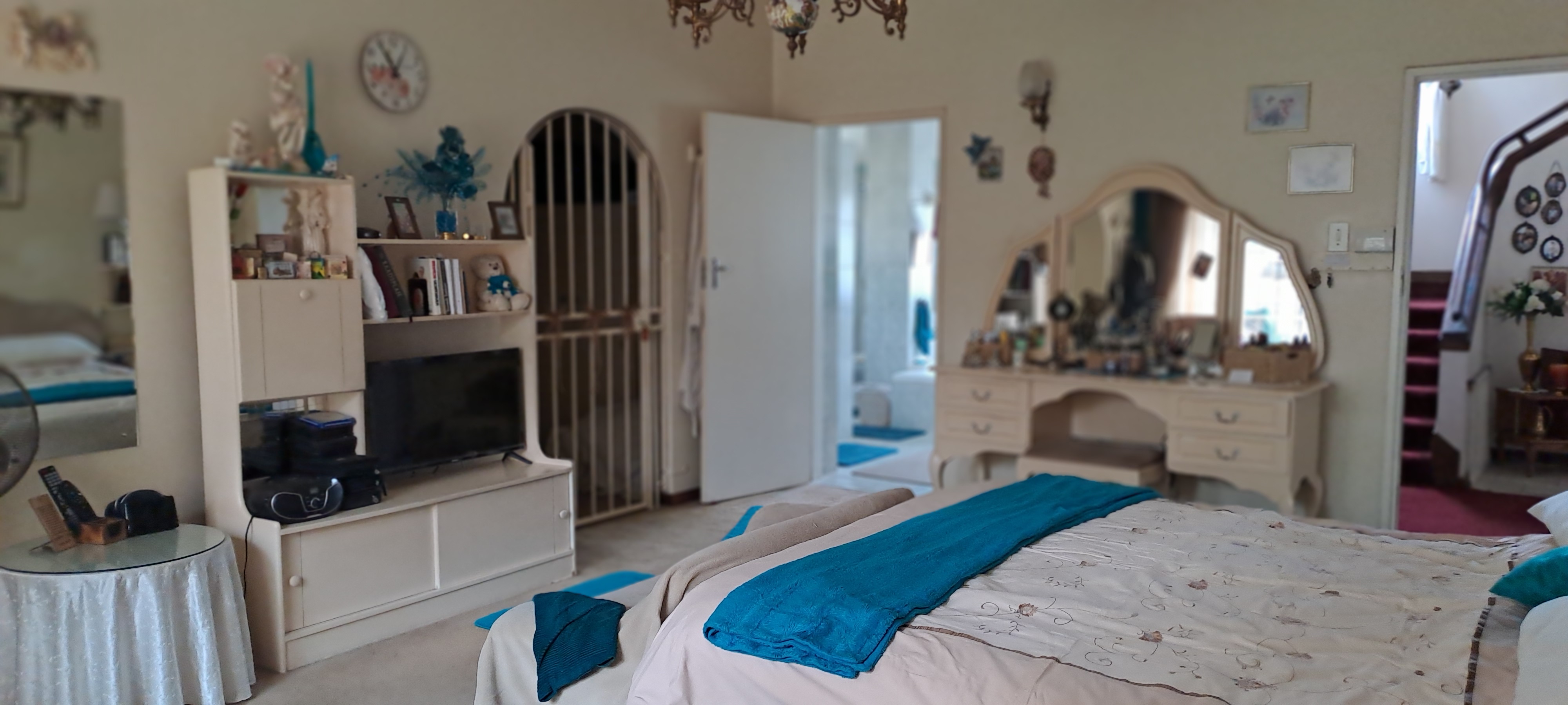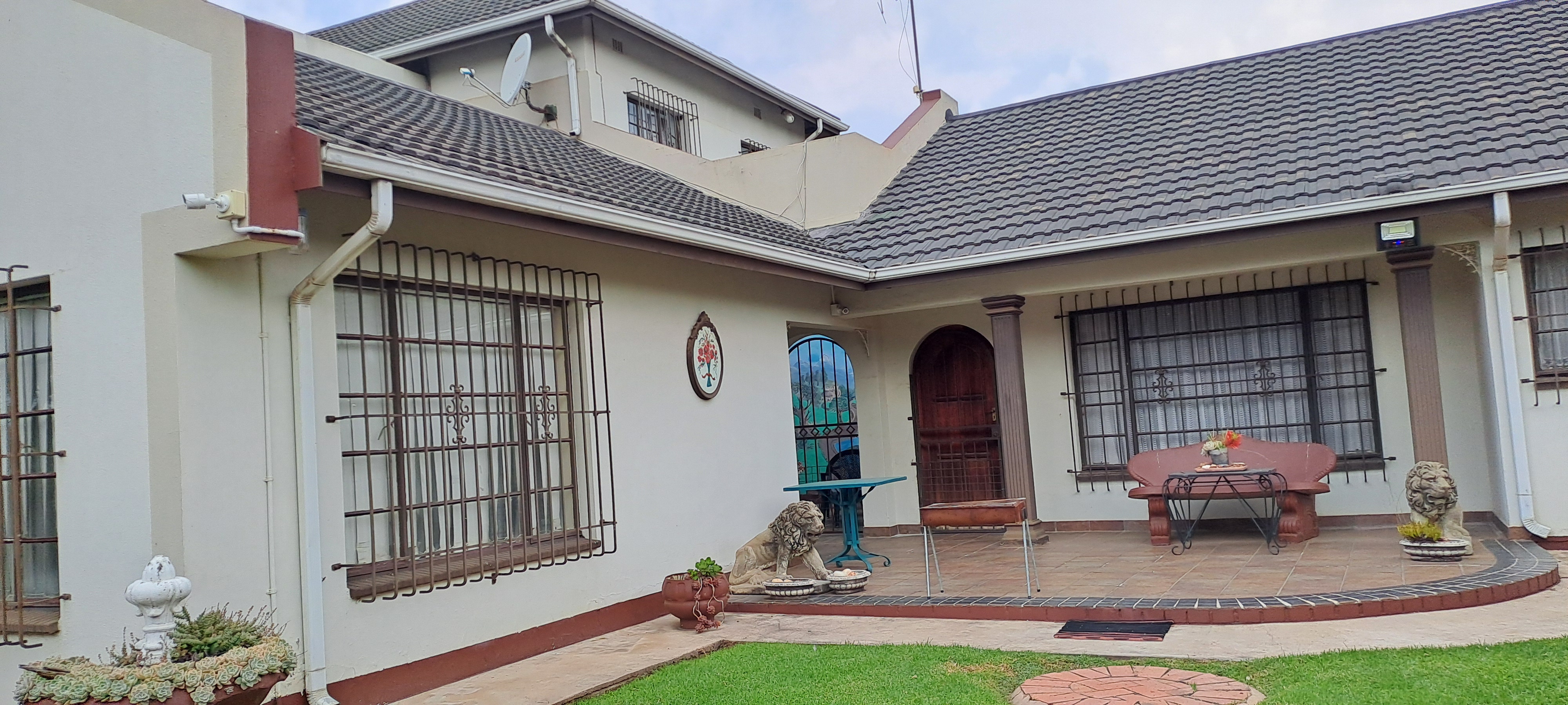 If you have a big family, looking to settle comfortably without being on top of each other! Well guess what? Look no more I have just found a perfect property for you and your loved ones. This house has so much to offer, you have to see it for yourself because words fall short to describe it. Boasting four big bedrooms, two of which are upstairs, main is on the ground floor, all have built-in cupboards. MES, super large dressing room,leading onto the jaccuzi lazy room, overlooking the luscious garden space. The open plan kitchen/ dining/family rooms makes it easy to be part of all that's going on, be it conversations with family and friends or monitoring the little ones. The semi detached flat has two bedroom with an en suite, kitchenette, living area. State of the art chef's kitchen has ample storage, large working granite counter tops,center island with the hob and eye level double oven. Next to it is a laundry room. Guest bathroom, a hidden wine room special fearure. Outside you have four garages,super large shade carport that can accommodate caravans or huge/ monster pickup / trucks, you also get the flatlet/domestic ,which has one bedroom,bathroom and a kitchenette. Big storeroom to keep all your tools well housed and out of sight. Entertainment,if you're an entertainer, well you are right at your ally, there's a braai area undercover, large outdoors for all your free dancing, running around. The yard is so huge you'll have lots of fun with family and guests. Located in the middle of three medical centers, which are just a walking distance, all your favourite restuarants, public transport, golf course and a lots more amenities. Waist no time call me today to set up a viewing appointment.