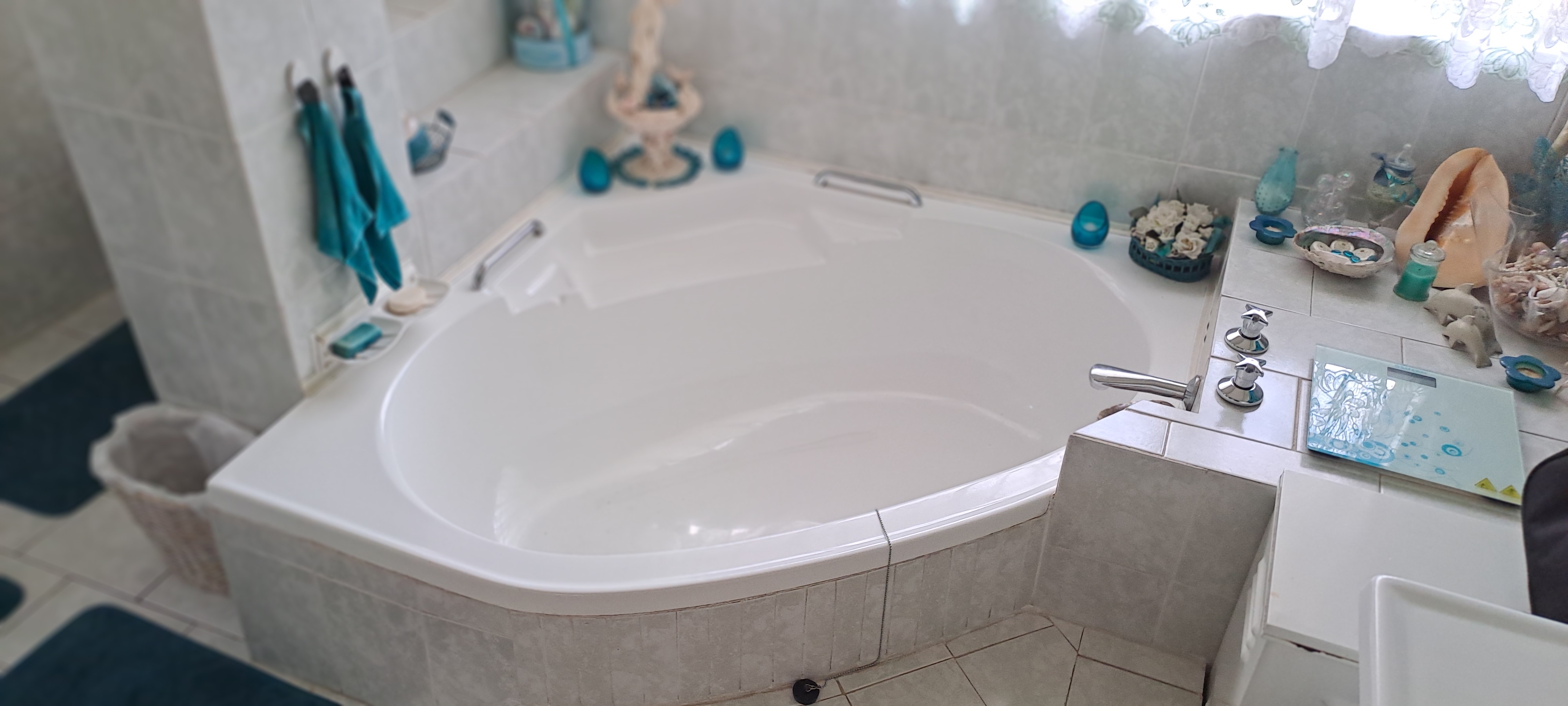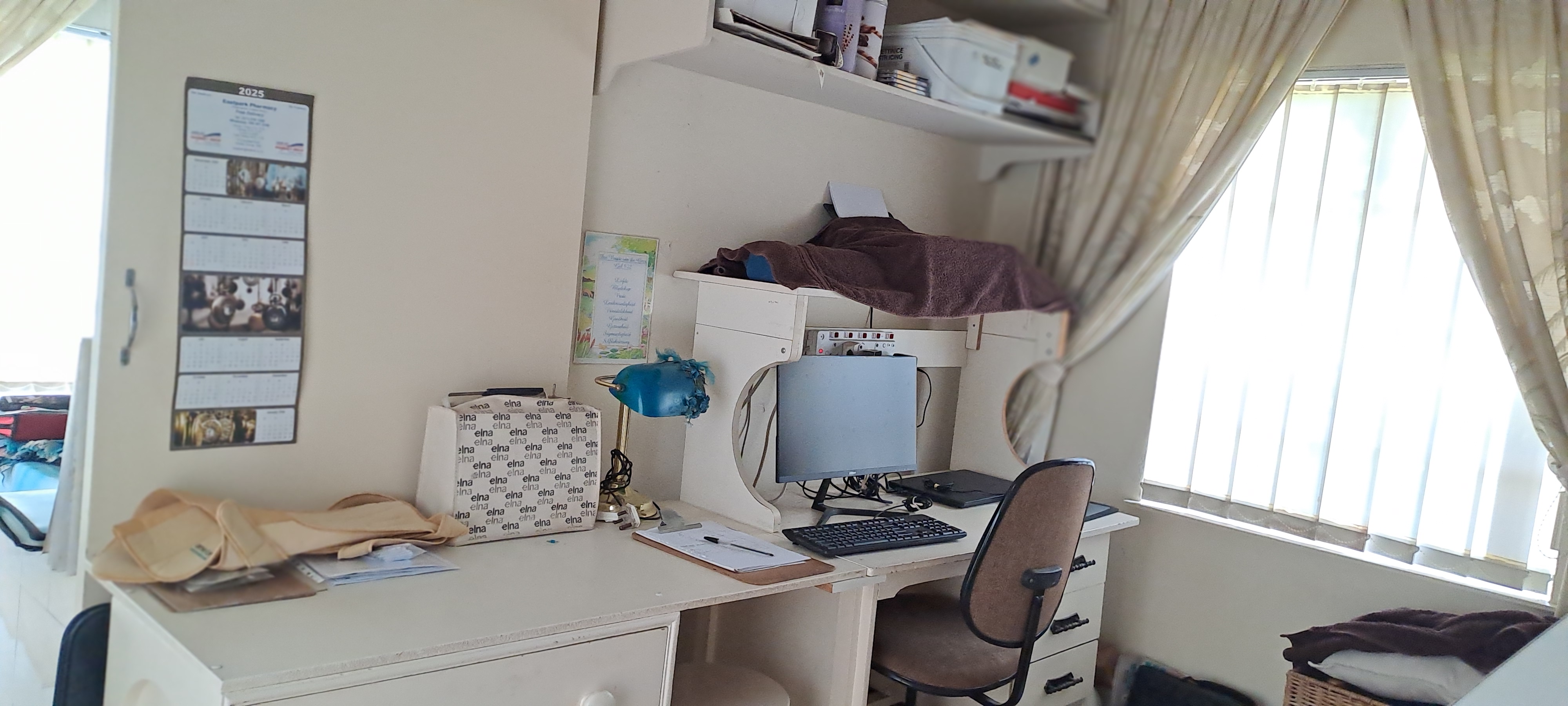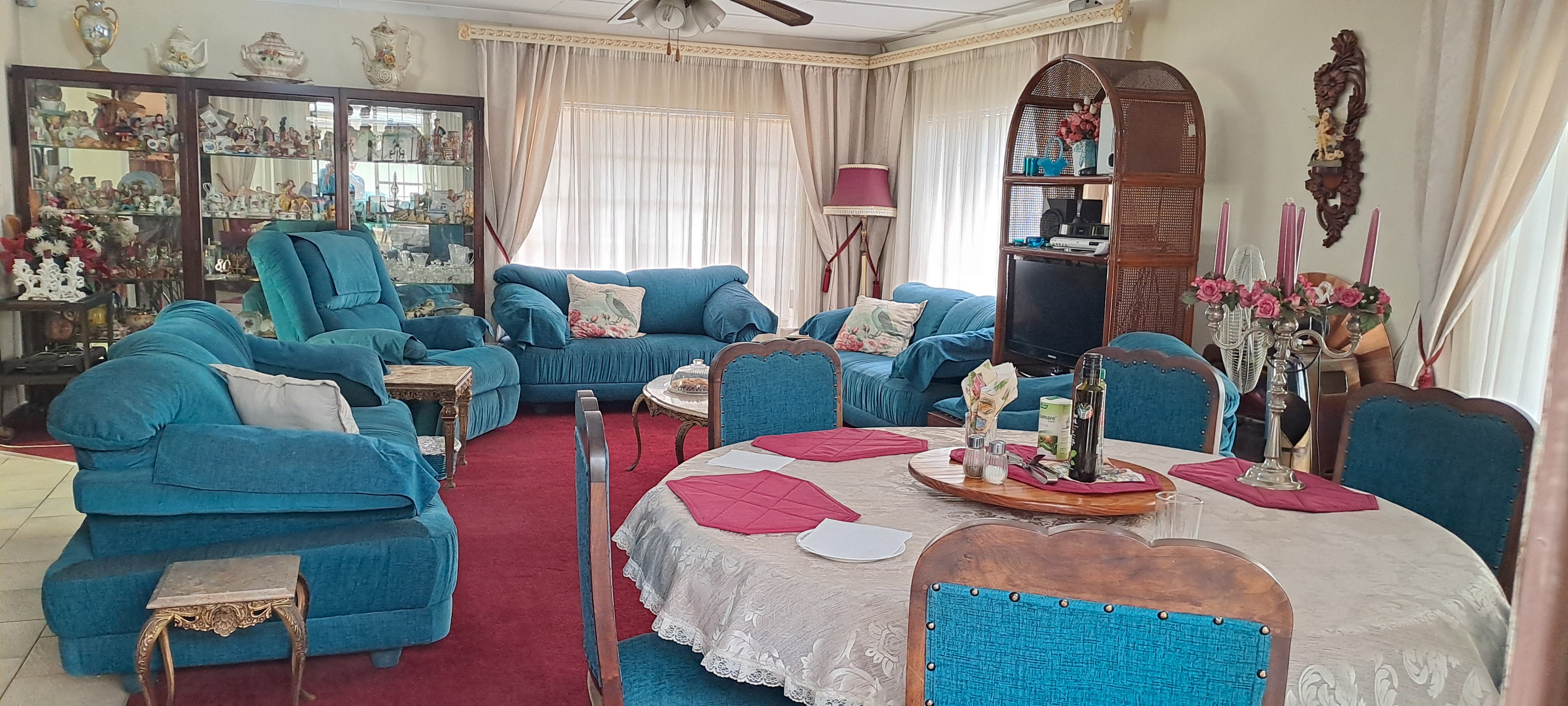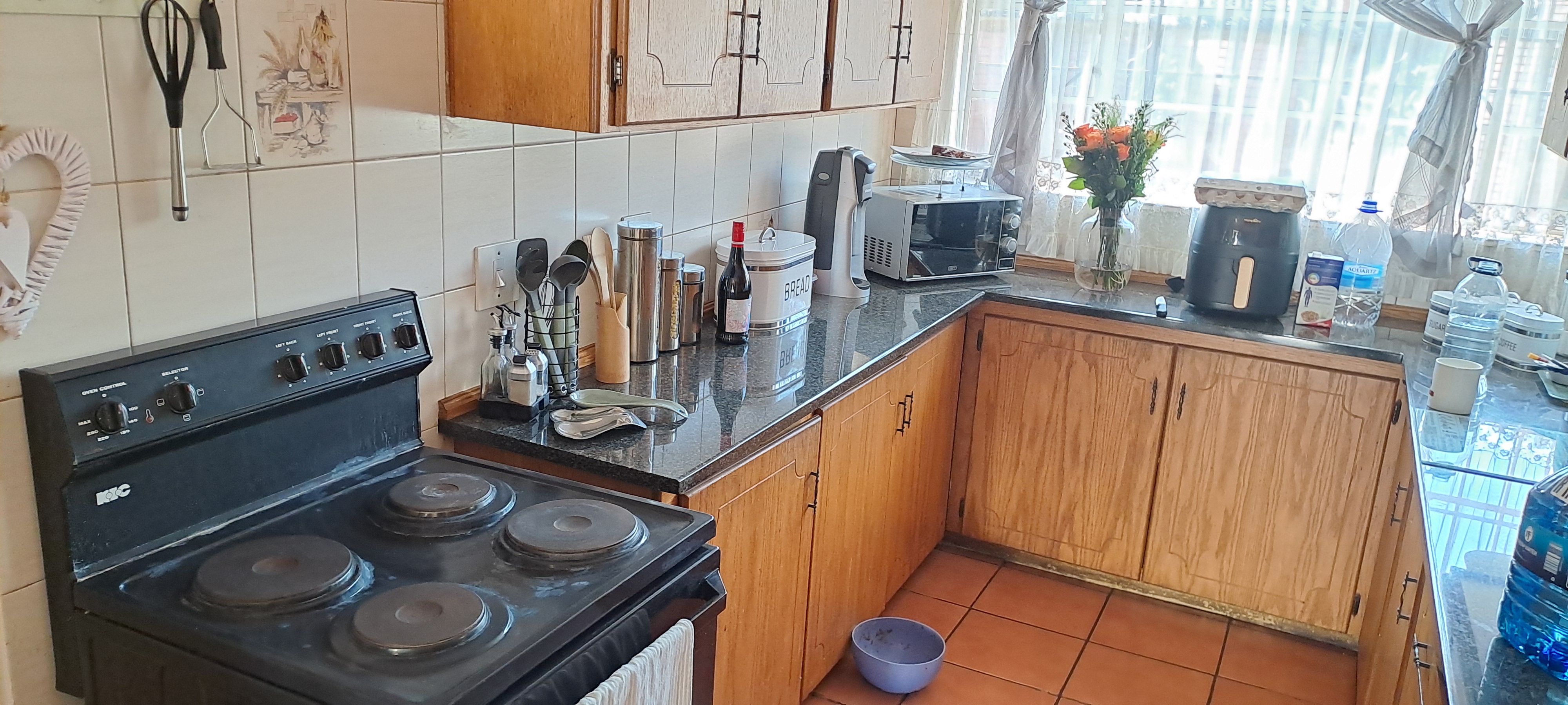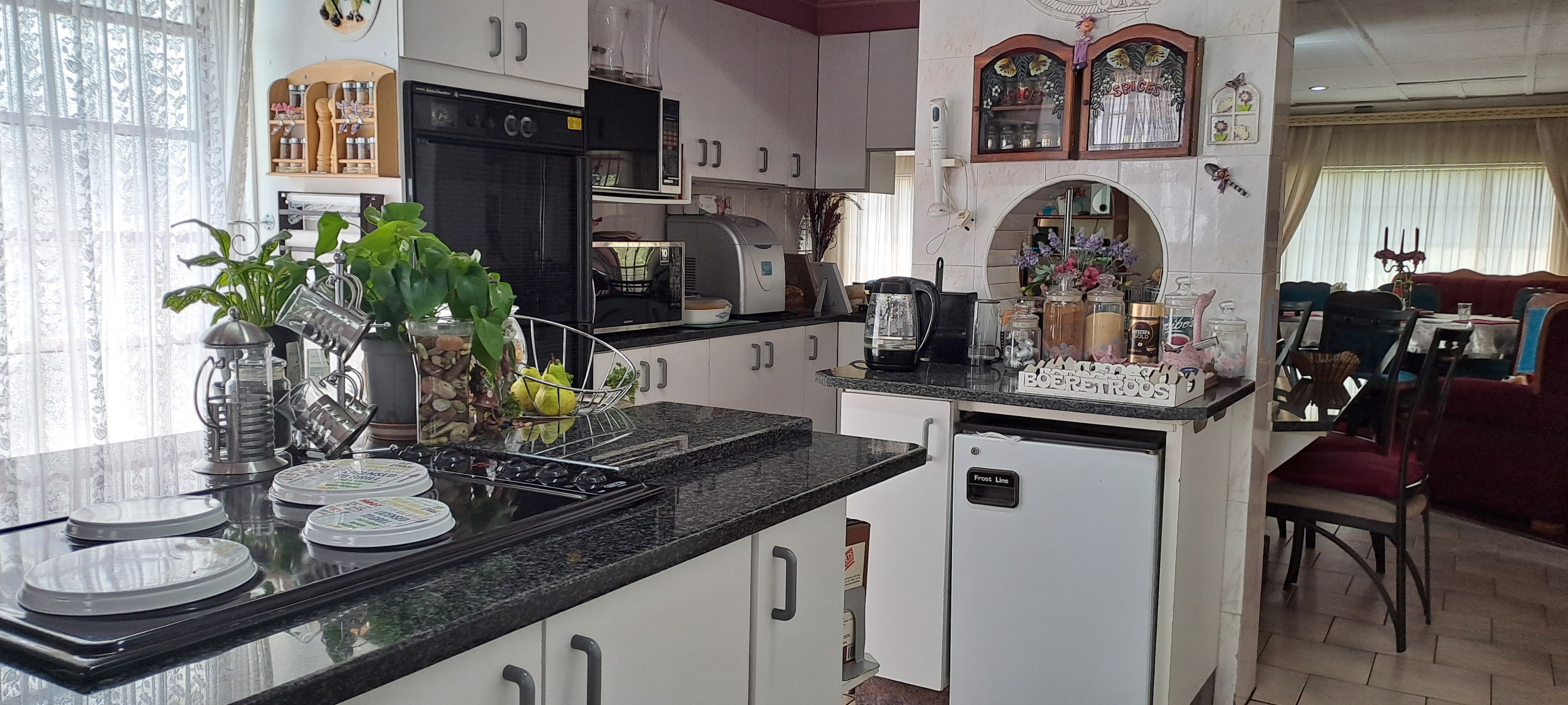 If you have a big family, looking to settle comfortably without being on top of each other! Well guess what? Look no more I have just found a perfect property for you and your loved ones. This house has so much to offer, you have to see it for yourself because words fall short to describe it. Boasting four big bedrooms, two of which are upstairs, main is on the ground floor, all have built-in cupboards. MES, super large dressing room,leading onto the jaccuzi lazy room, overlooking the luscious garden space. The open plan kitchen/ dining/family rooms makes it easy to be part of all that's going on, be it conversations with family and friends or monitoring the little ones. The semi detached flat has two bedroom with an en suite, kitchenette, living area. State of the art chef's kitchen has ample storage, large working granite counter tops,center island with the hob and eye level double oven. Next to it is a laundry room. Guest bathroom, a hidden wine room special fearure. Outside you have four garages,super large shade carport that can accommodate caravans or huge/ monster pickup / trucks, you also get the flatlet/domestic ,which has one bedroom,bathroom and a kitchenette. Big storeroom to keep all your tools well housed and out of sight. Entertainment,if you're an entertainer, well you are right at your ally, there's a braai area undercover, large outdoors for all your free dancing, running around. The yard is so huge you'll have lots of fun with family and guests. Located in the middle of three medical centers, which are just a walking distance, all your favourite restuarants, public transport, golf course and a lots more amenities. Waist no time call me today to set up a viewing appointment.