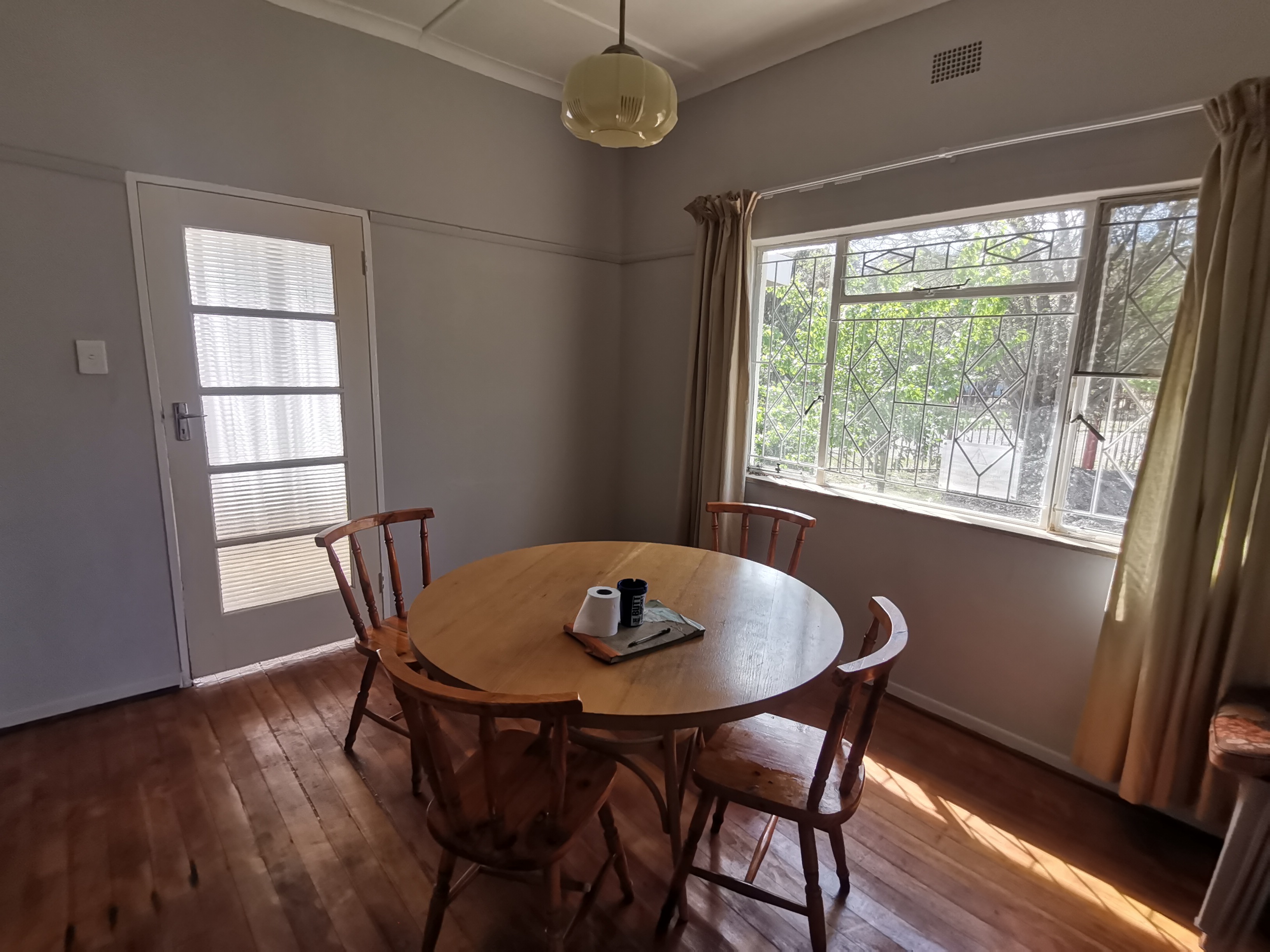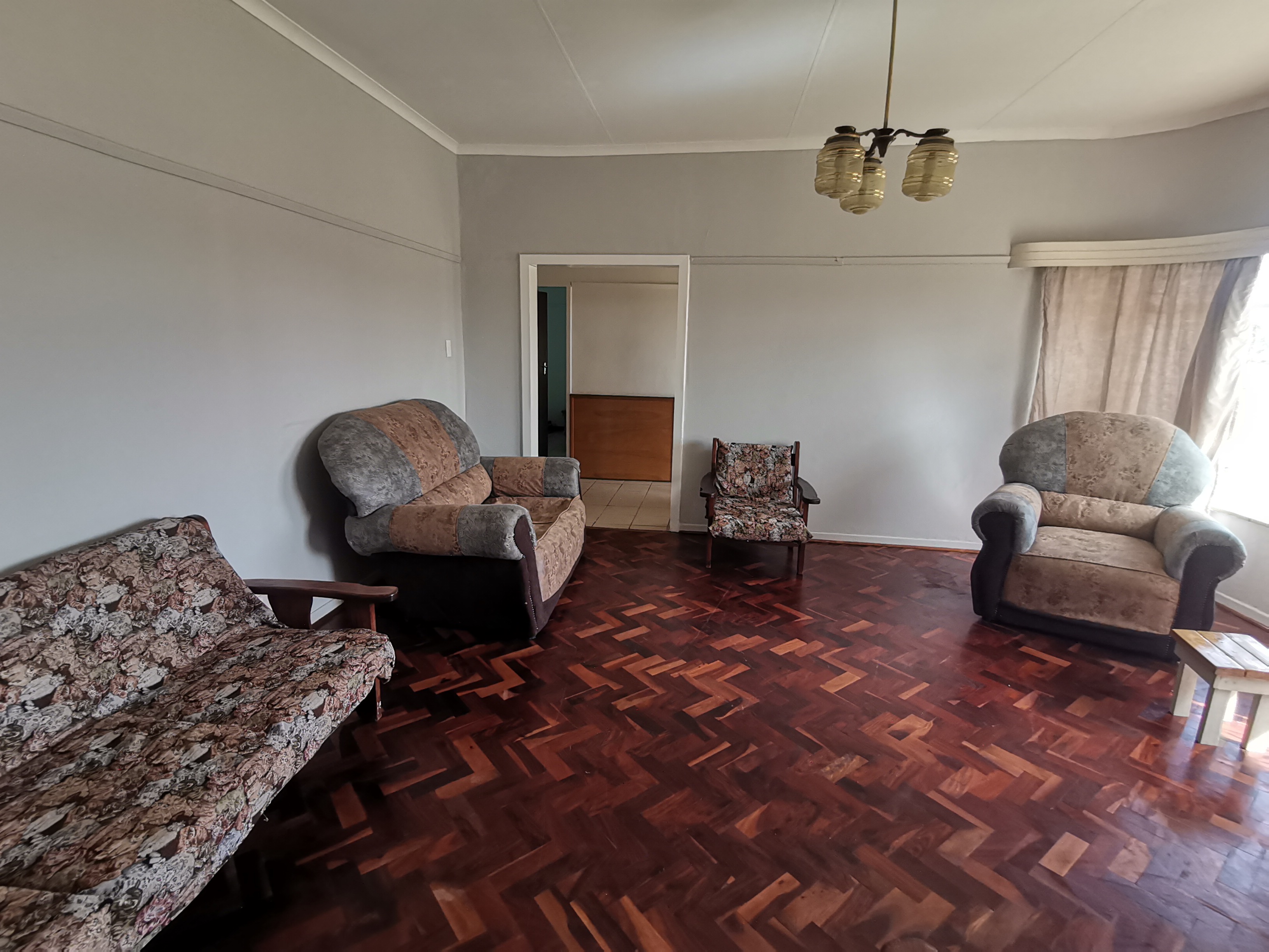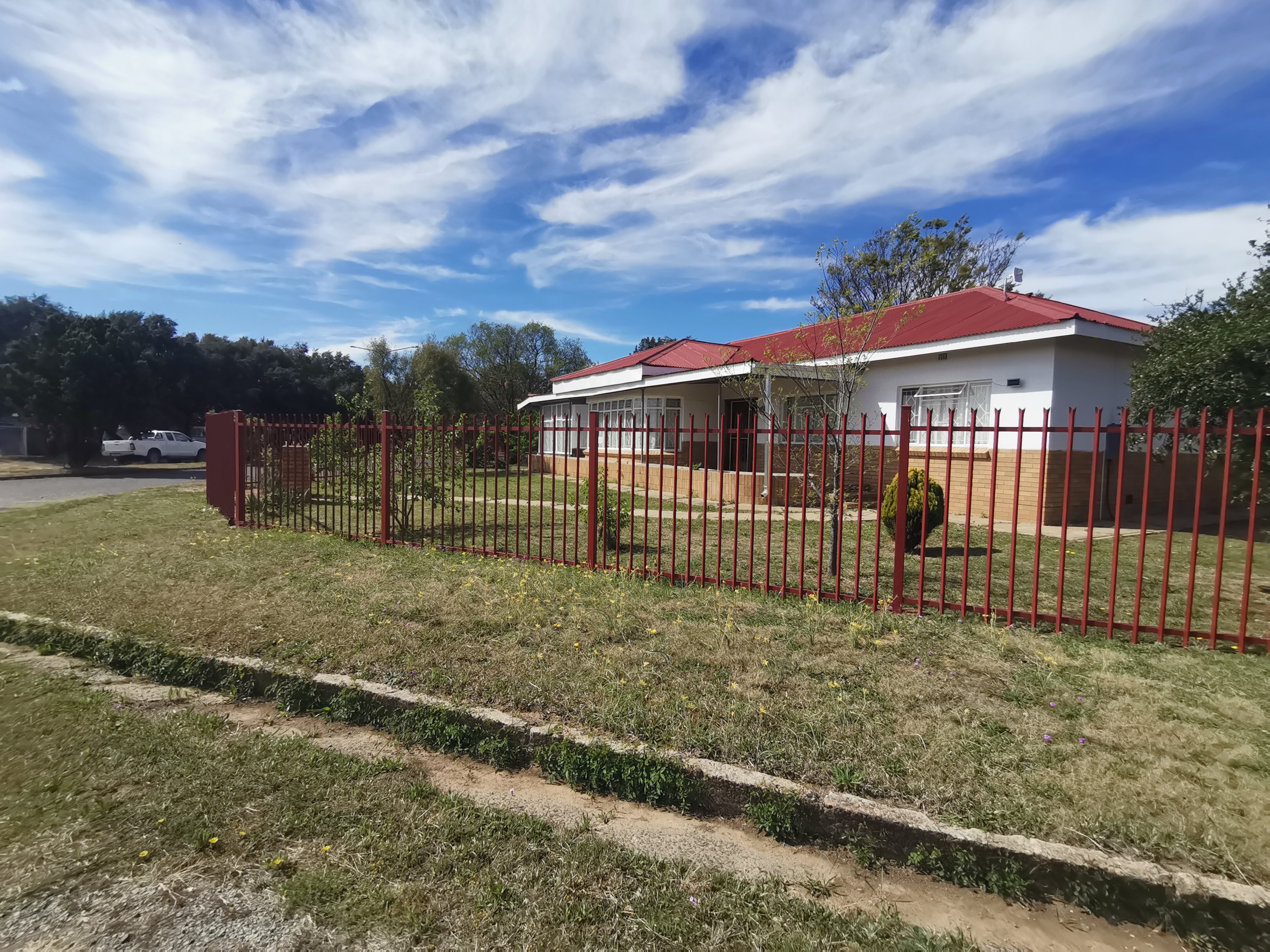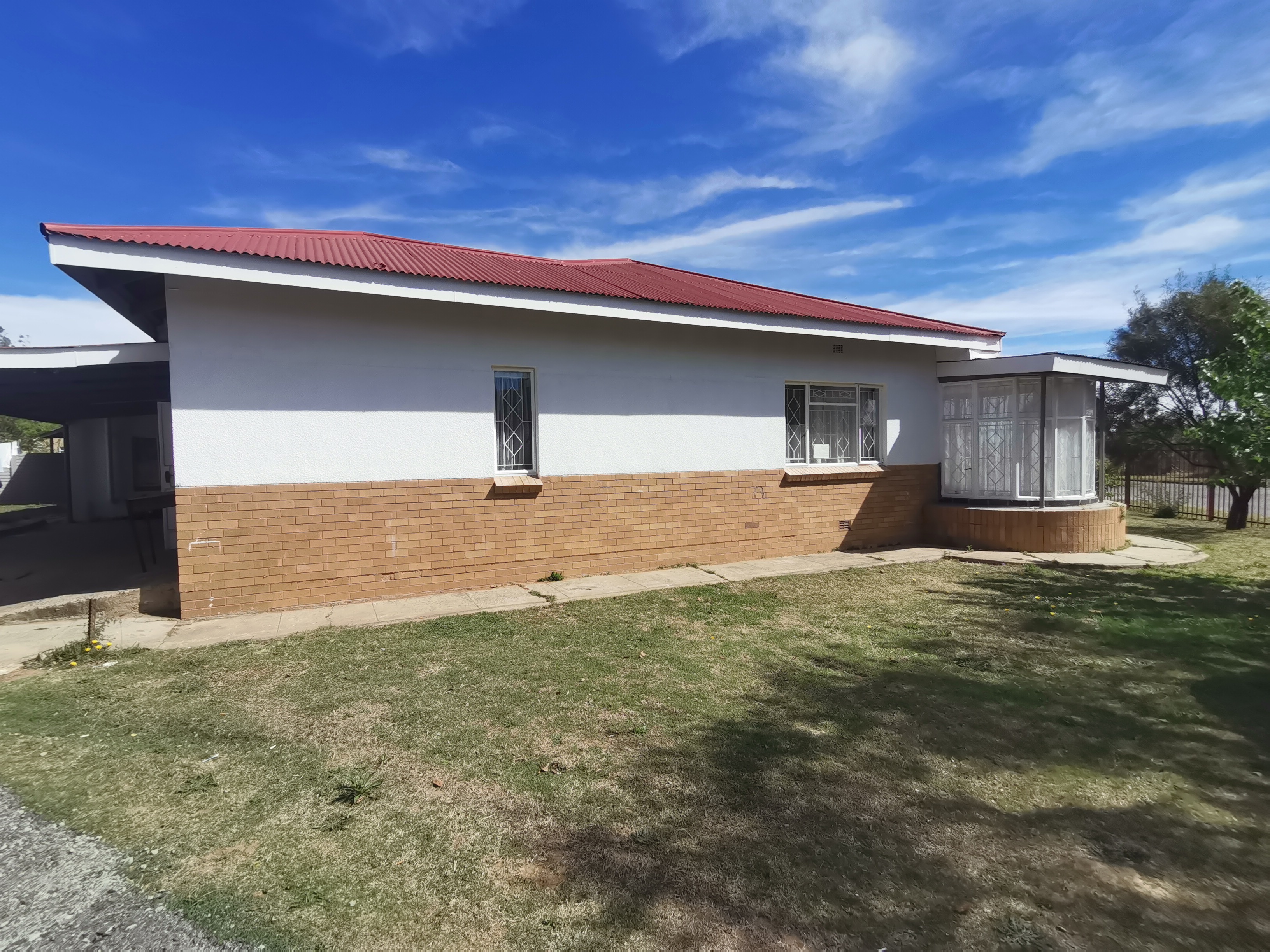 Welcome to this spacious, secure three-bedroom home located on a large corner plot in a popular neighborhood of the serene town of Senekal, Free State. This traditional property features a spacious lounge and dining area, perfect for family gatherings, alongside a well-appointed kitchen with built-in cupboards and a scullery/laundry room for added convenience. The home boasts one full bathroom with a separate toilet and includes a cozy sun room that invites natural light throughout the day.