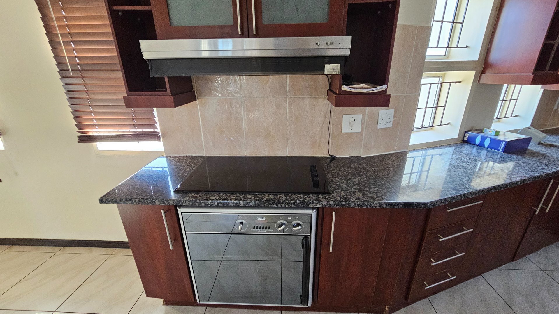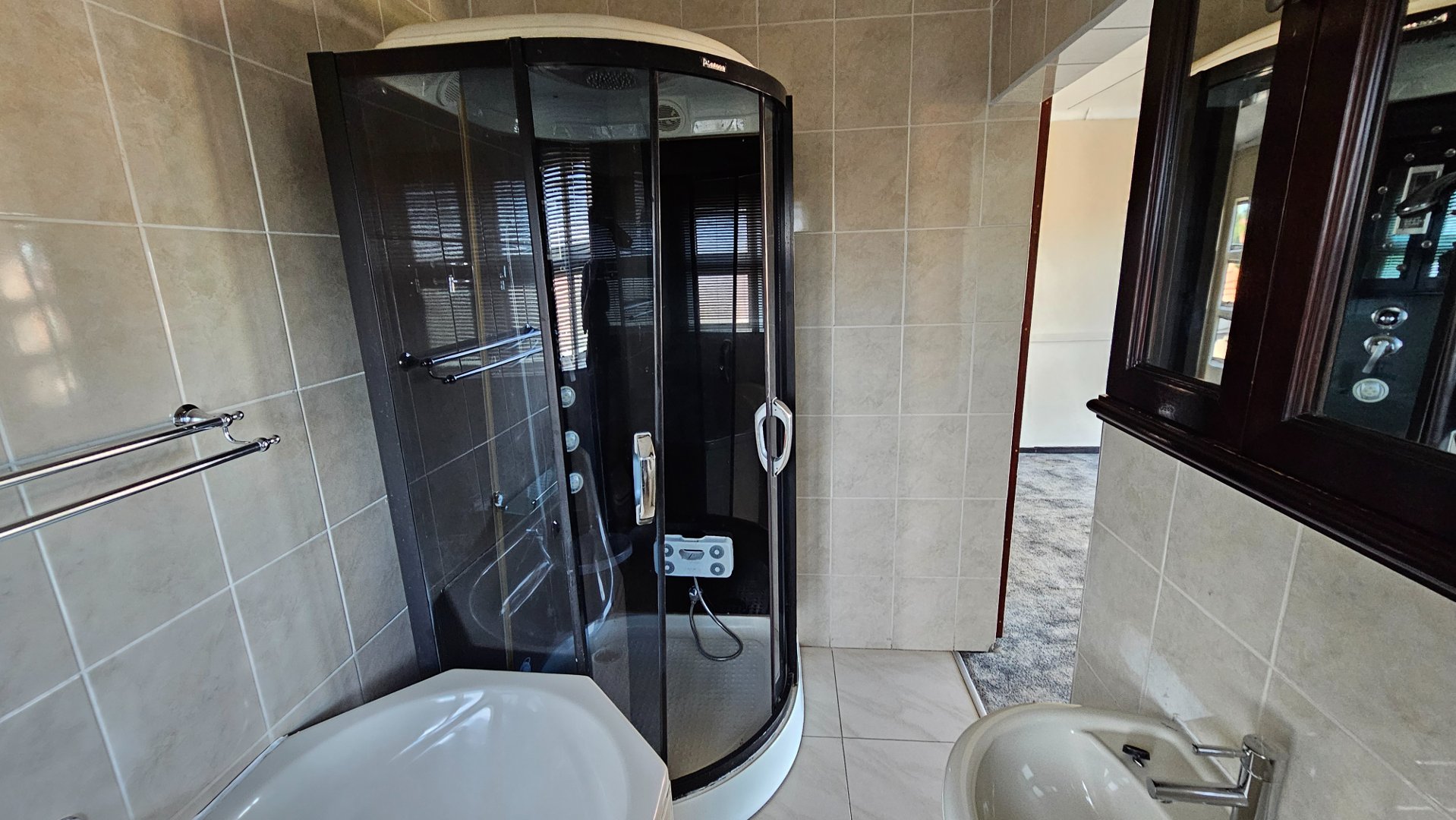 Downstairs, the living space is designed for both relaxation and entertaining. A large open-plan lounge and TV room provide the ideal setting for cozy nights in or gatherings with loved ones. The dining room seamlessly flows into the immaculate kitchen, equipped with built-in cupboards, granite countertops, and brand-new stove with oven and hob, making meal preparation a delight.