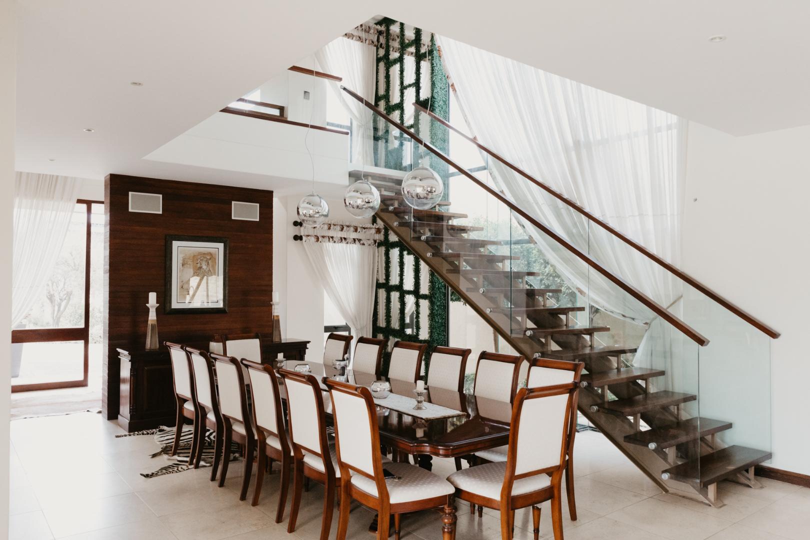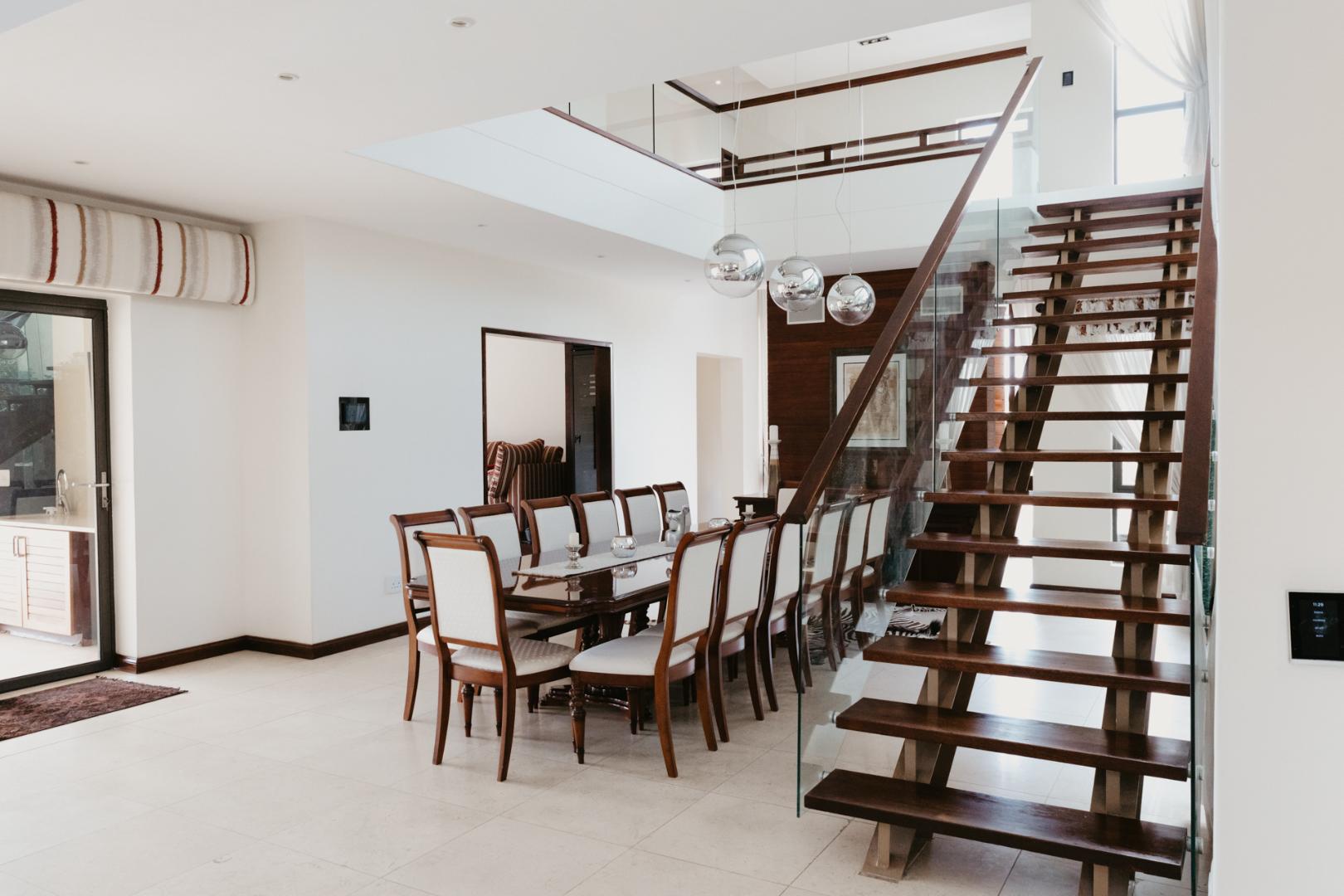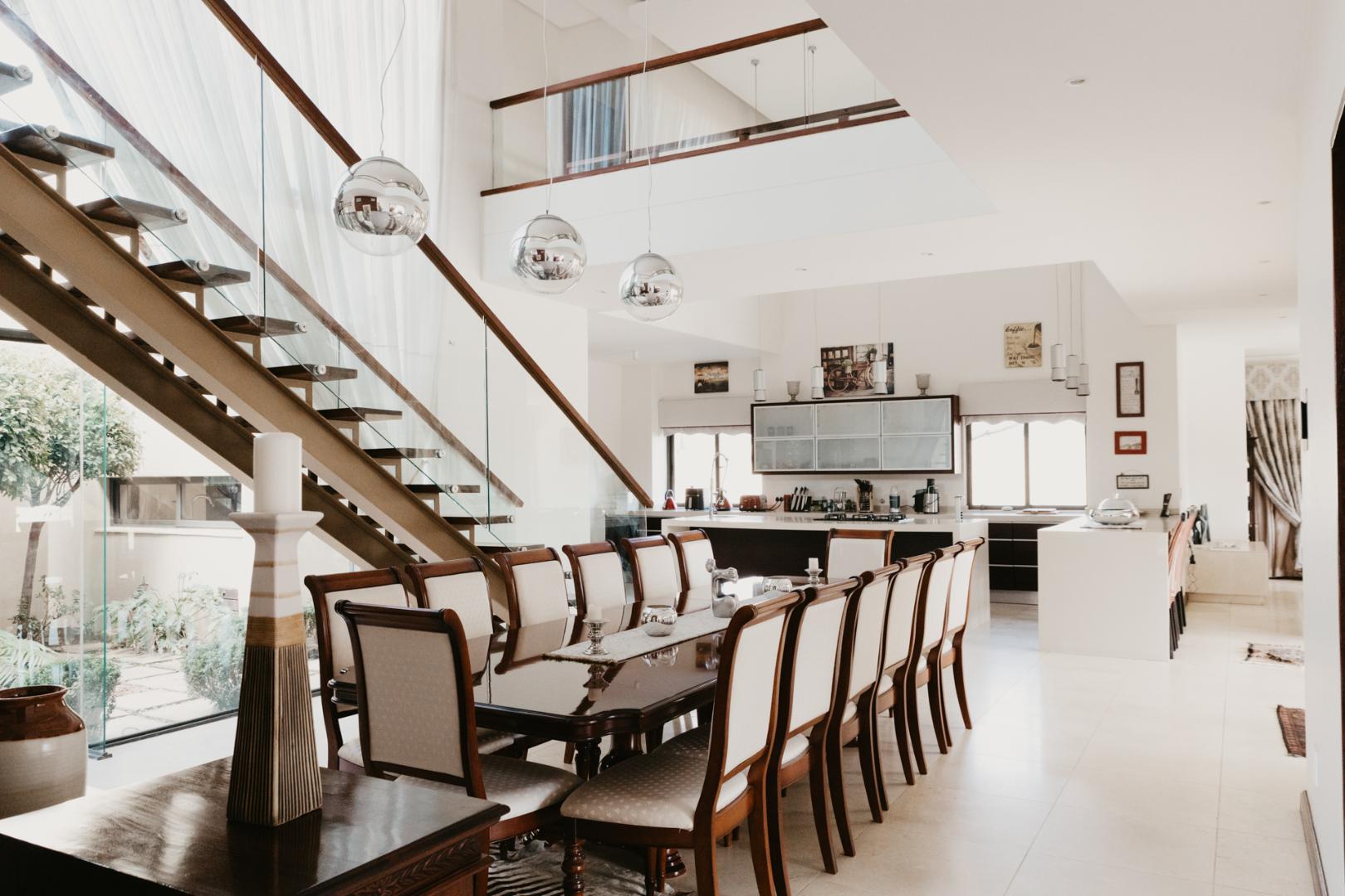Luxurious privacy is at the forefront as you enter this remarkable home. You are greeted by a double volume entrance hall that sets the tone for the grandeur that lies ahead. A spacious open plan living area that provides ample space for relaxation and entertainment. A well -equipped gourmet kitchen with a separate scullery and pantry that provides enough space for storage and makes meal preparation a breeze.