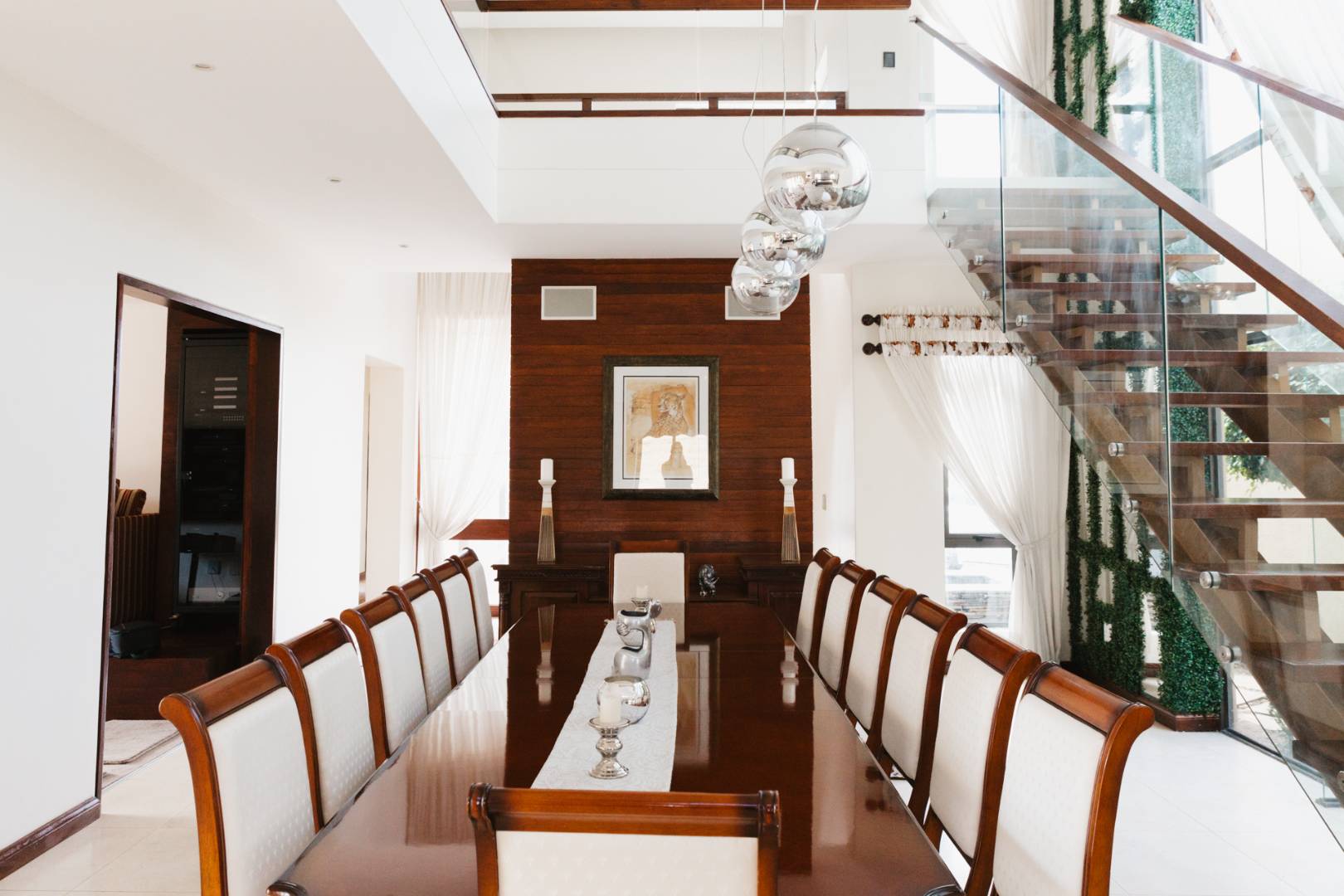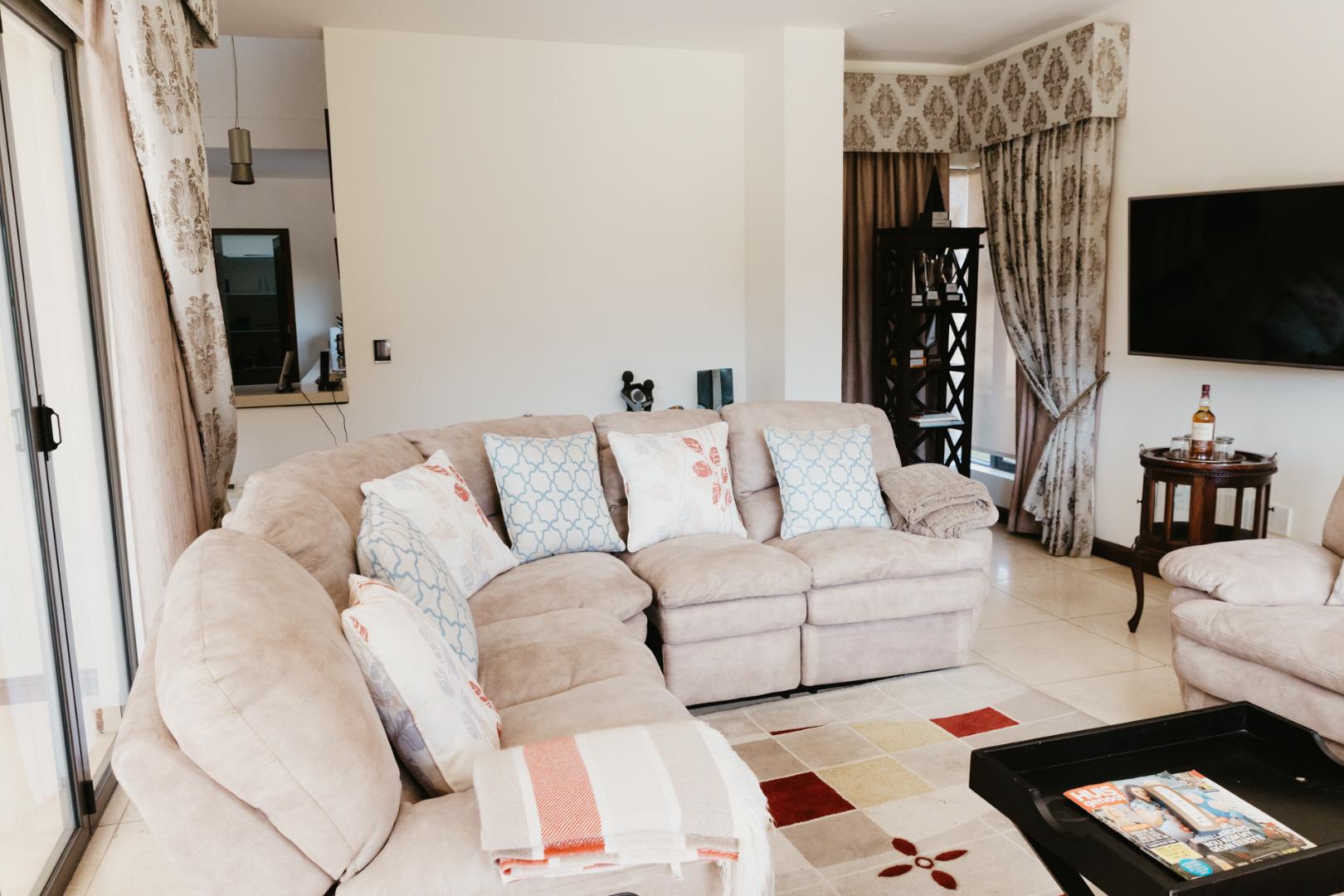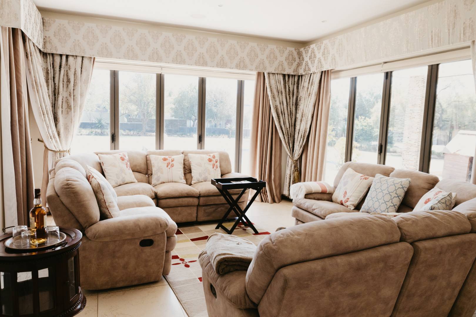 Luxurious privacy is at the forefront as you enter this remarkable home. You are greeted by a double volume entrance hall that sets the tone for the grandeur that lies ahead. A spacious open plan living area that provides ample space for relaxation and entertainment. A well -equipped gourmet kitchen with a separate scullery and pantry that provides enough space for storage and makes meal preparation a breeze.