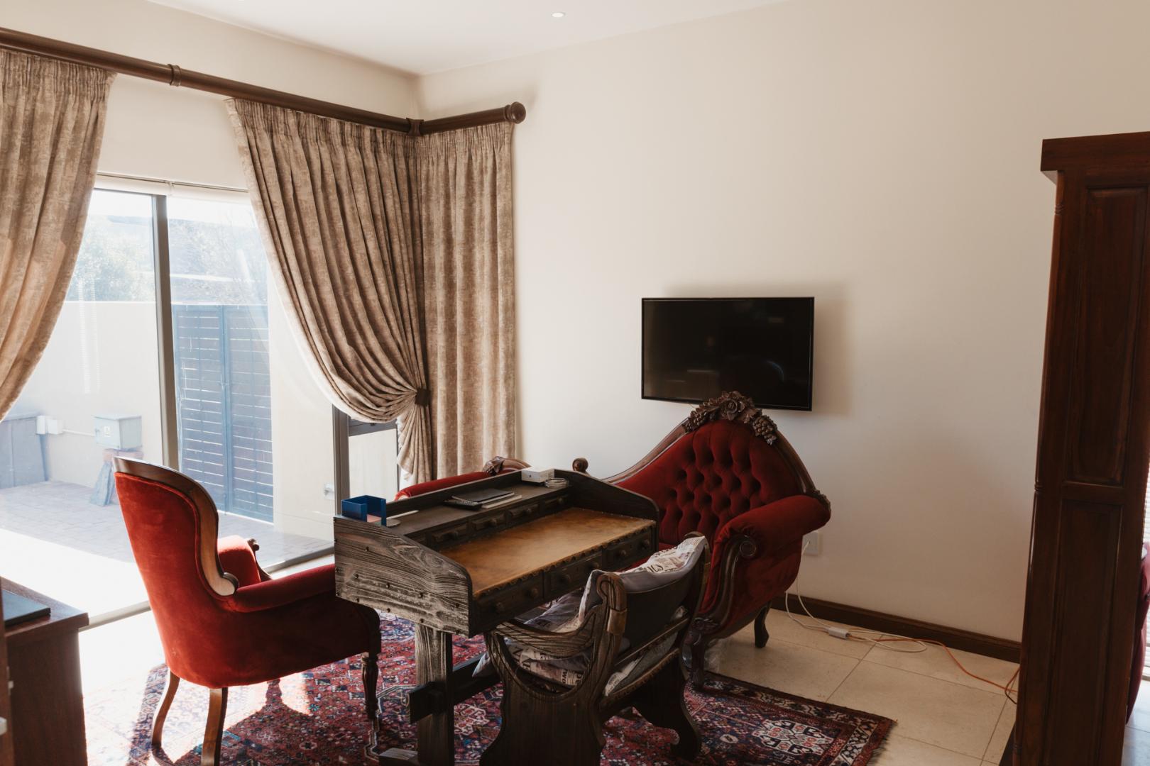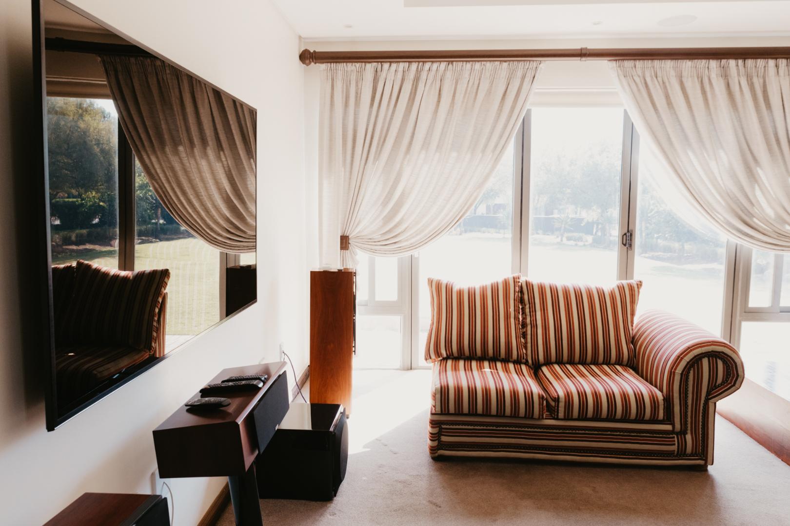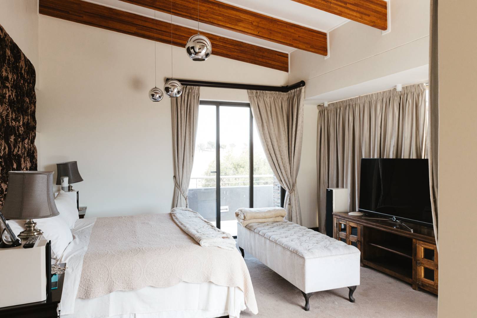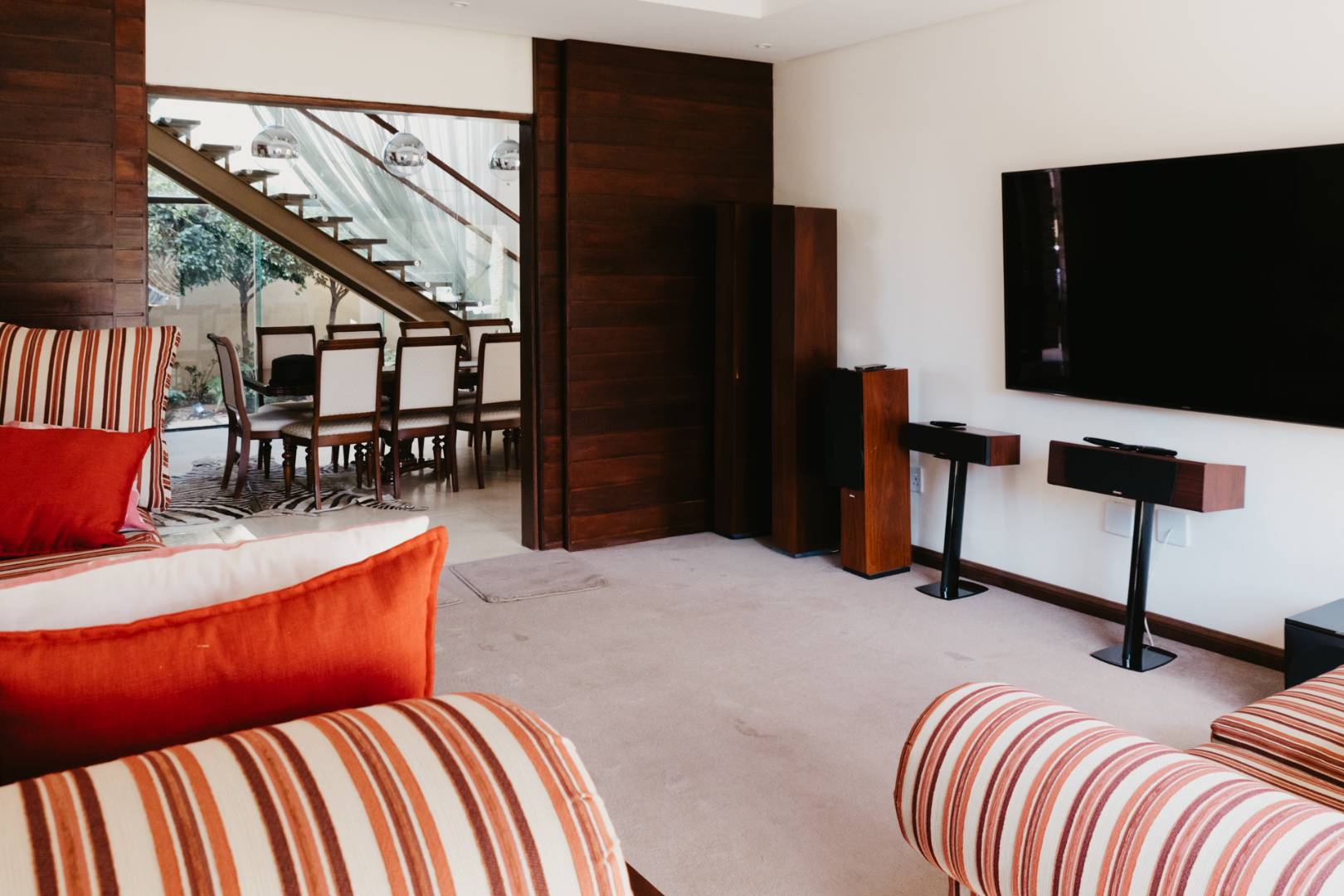 It also offers an integrated sound & technology system, a large covered patio with a build-in braai overlooking an inviting pool that is surrounded by a magnificent manicured lawn area. The opulent garden is simply a riot of color as the sunlight plays off the petals and leaves of the plants. The sound of birds and delightful mix of fragrance that is brought alive, that only Mother nature herself can create.