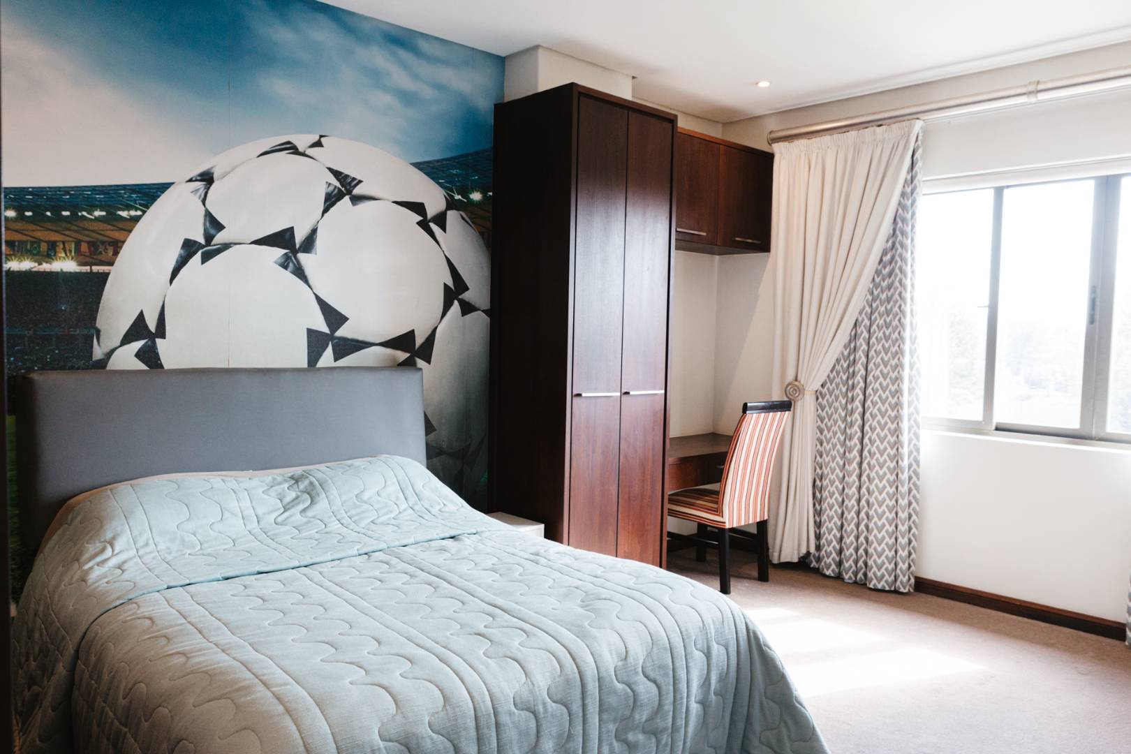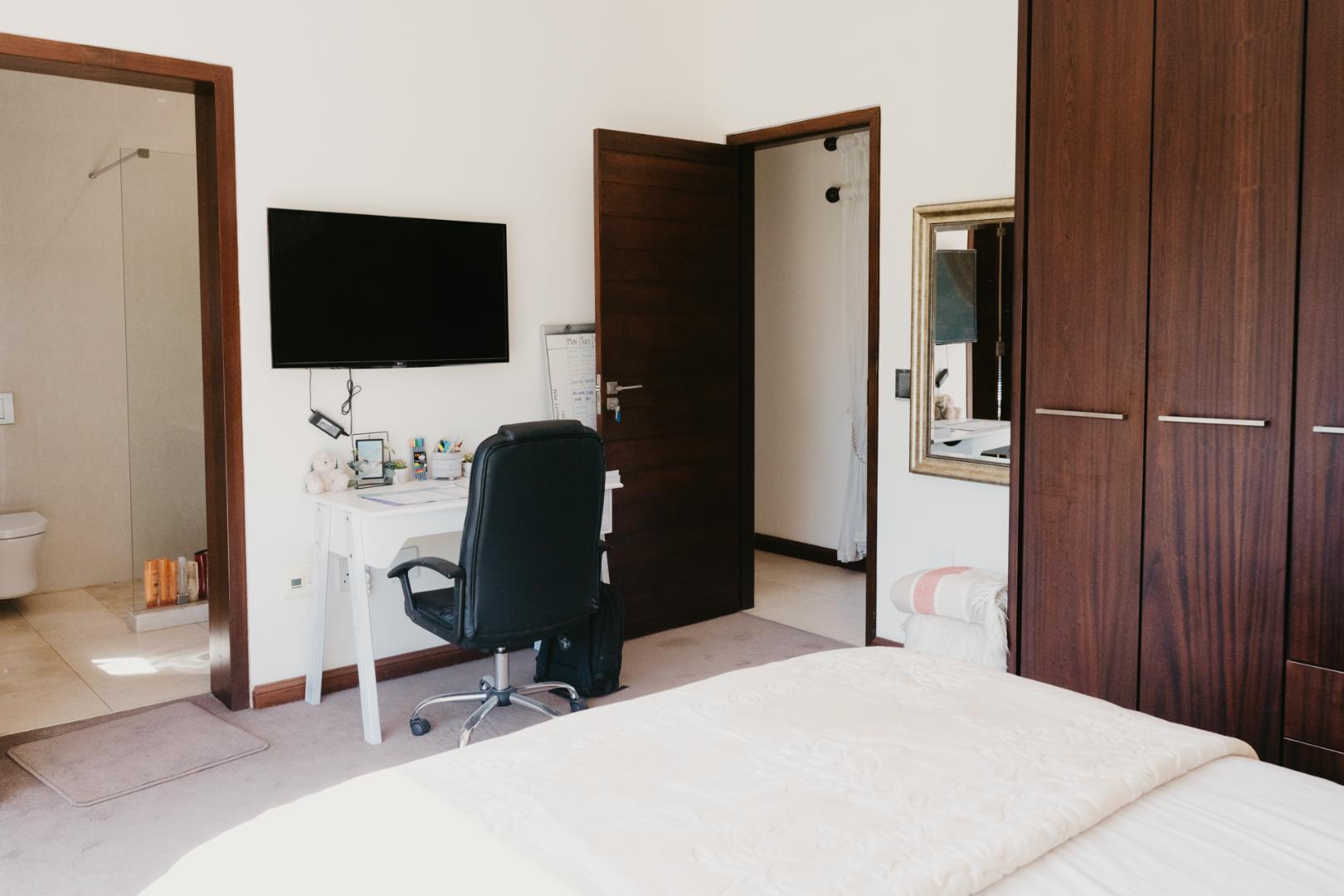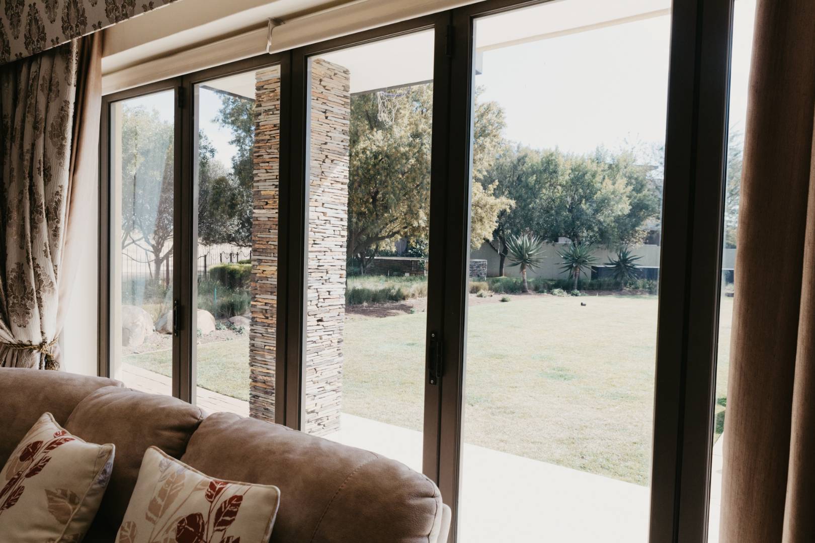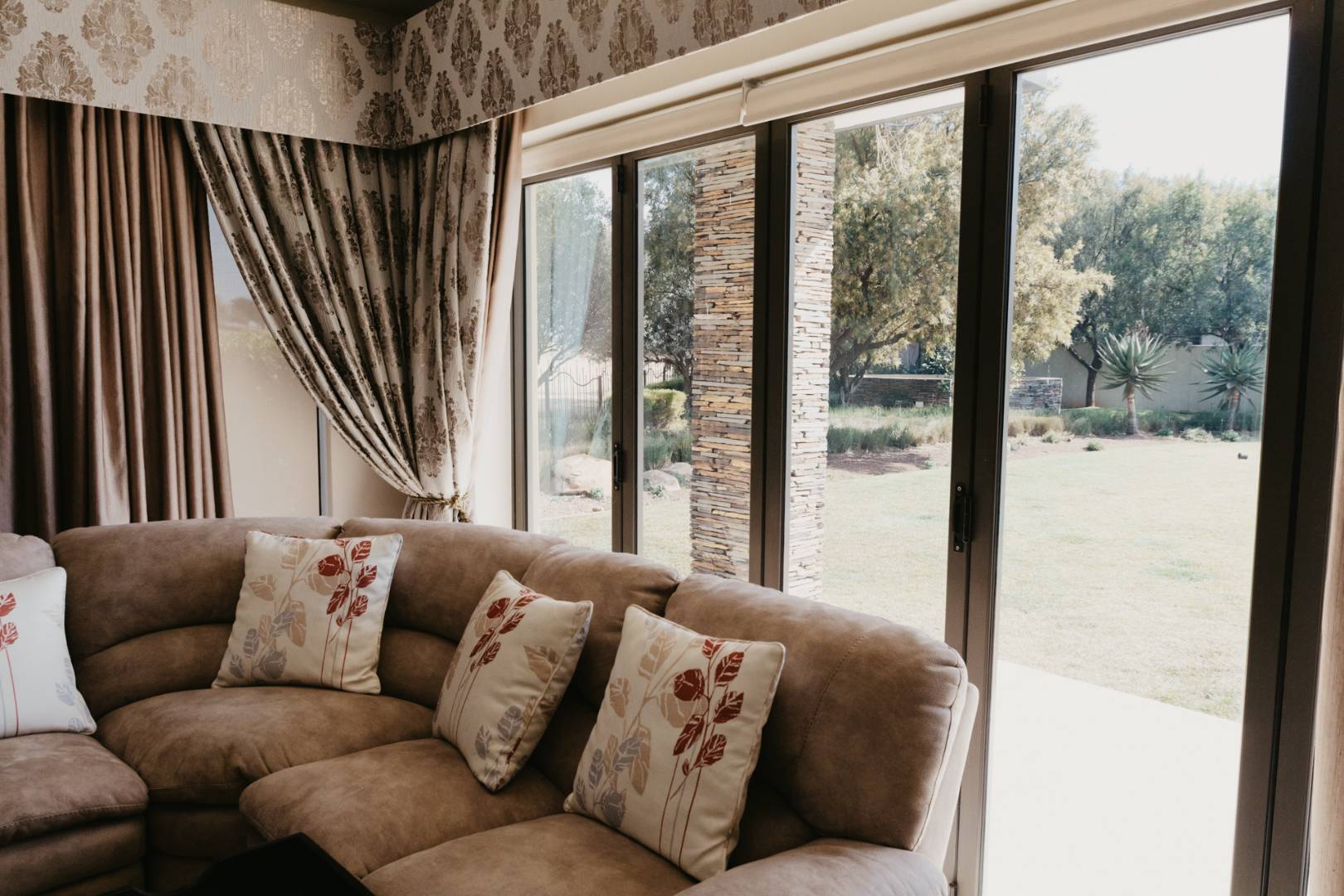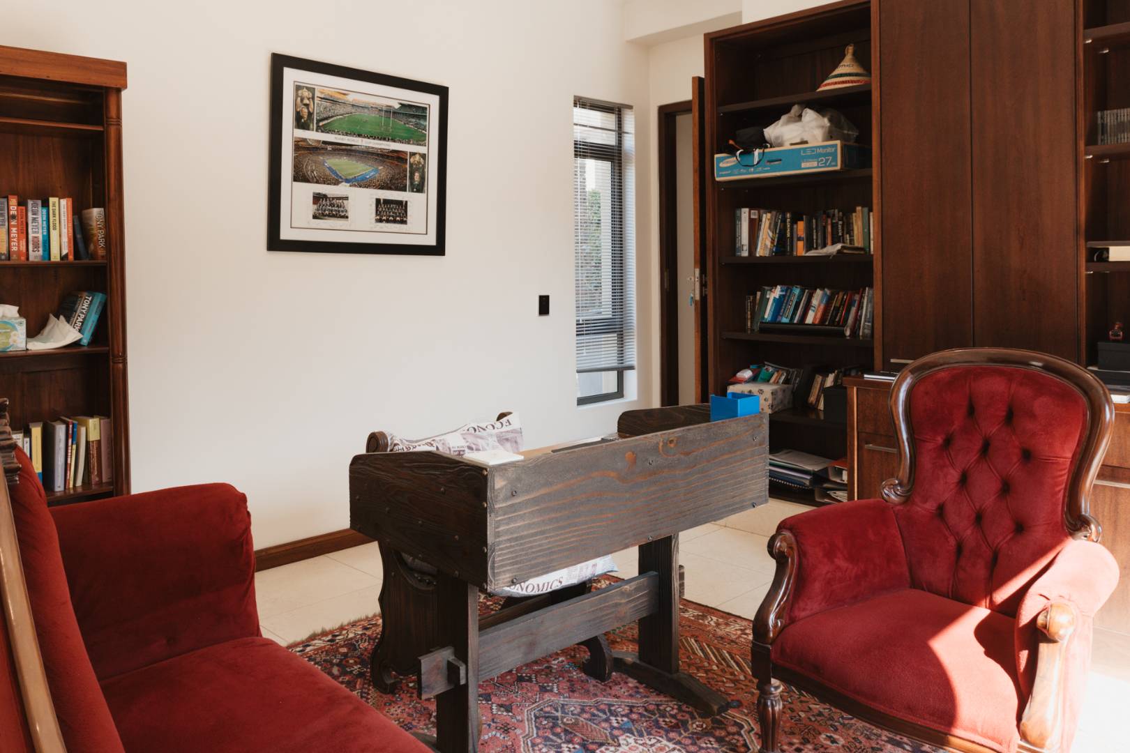It also offers an integrated sound & technology system, a large covered patio with a build-in braai overlooking an inviting pool that is surrounded by a magnificent manicured lawn area. The opulent garden is simply a riot of color as the sunlight plays off the petals and leaves of the plants. The sound of birds and delightful mix of fragrance that is brought alive, that only Mother nature herself can create.