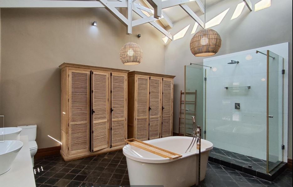 The property features four generously sized bedrooms and four stylish bathrooms, ensuring ample comfort for every member of the household. An additional self-contained flatlet with its own bathroom is perfect for guests, extended family, or as a private home office.