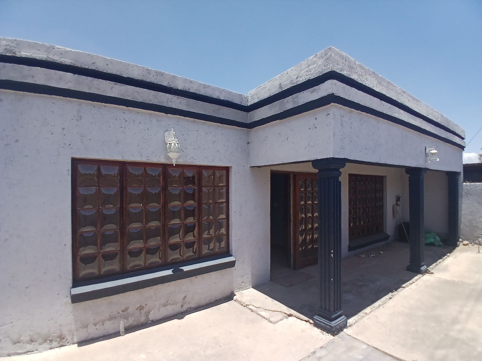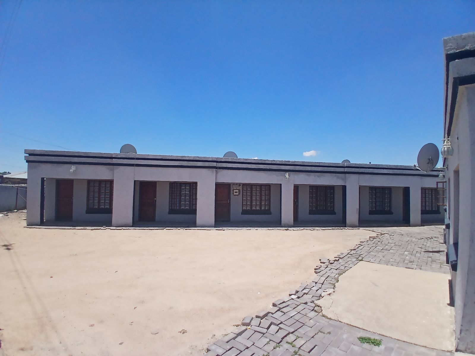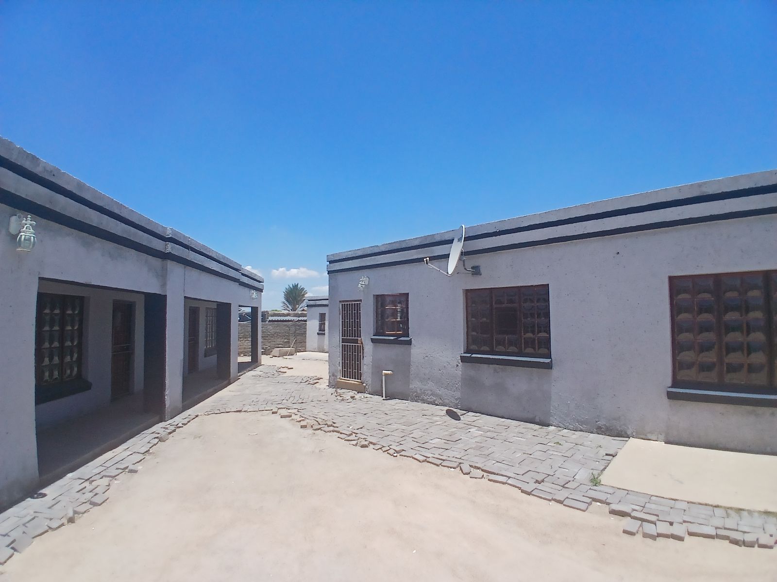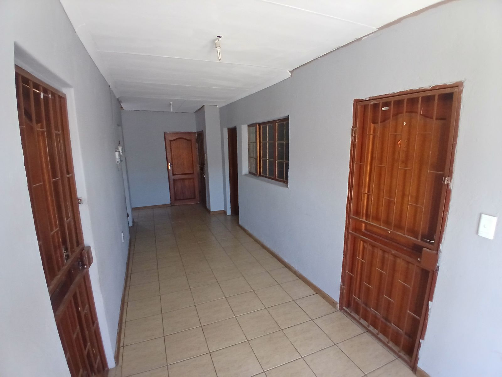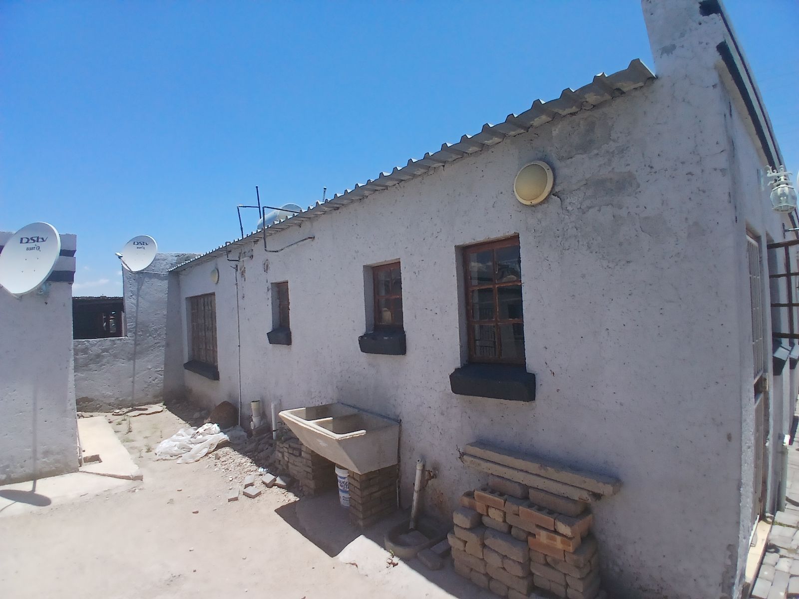 A communal house with 5 bedrooms, a kitchen, and a bathroom. This house has one geyser shared among its tenants.