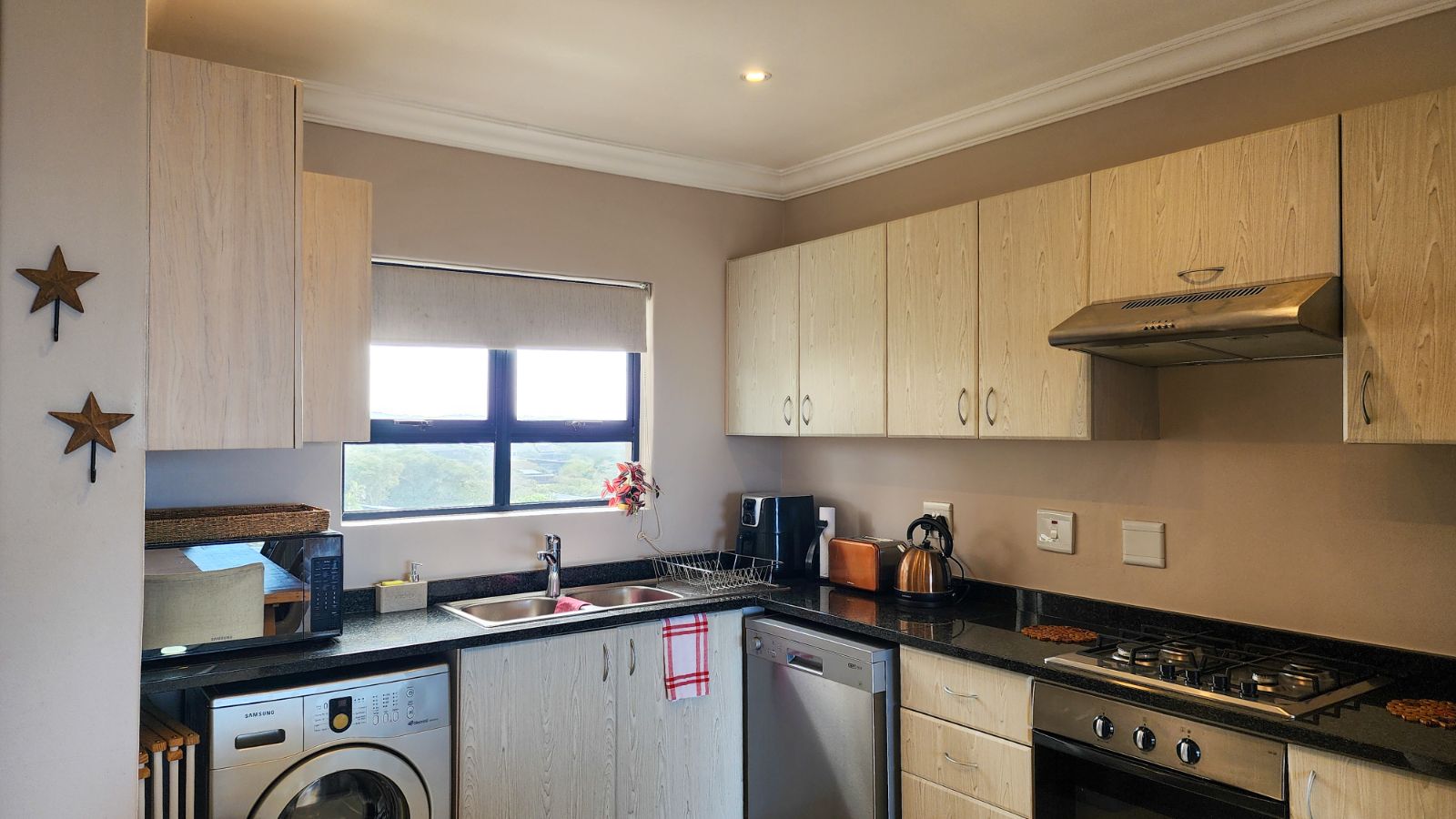 Step into the elegant open-plan kitchen and lounge area, which seamlessly flows onto a covered balcony that offers breathtaking views of the sea and greenbelt. It's the perfect spot to enjoy Ballito's beautiful sunrises. The kitchen features granite countertops and ample cupboard space.