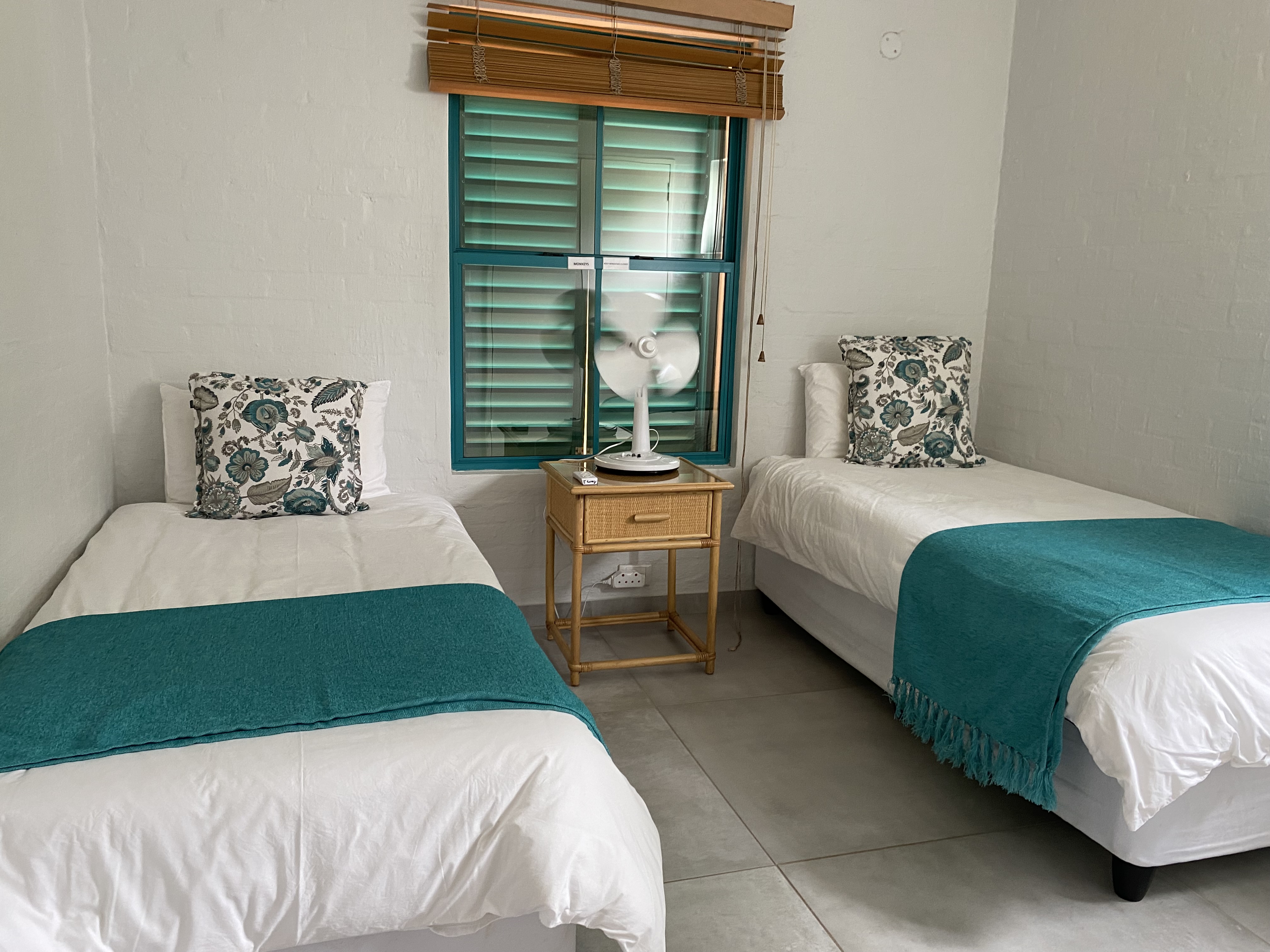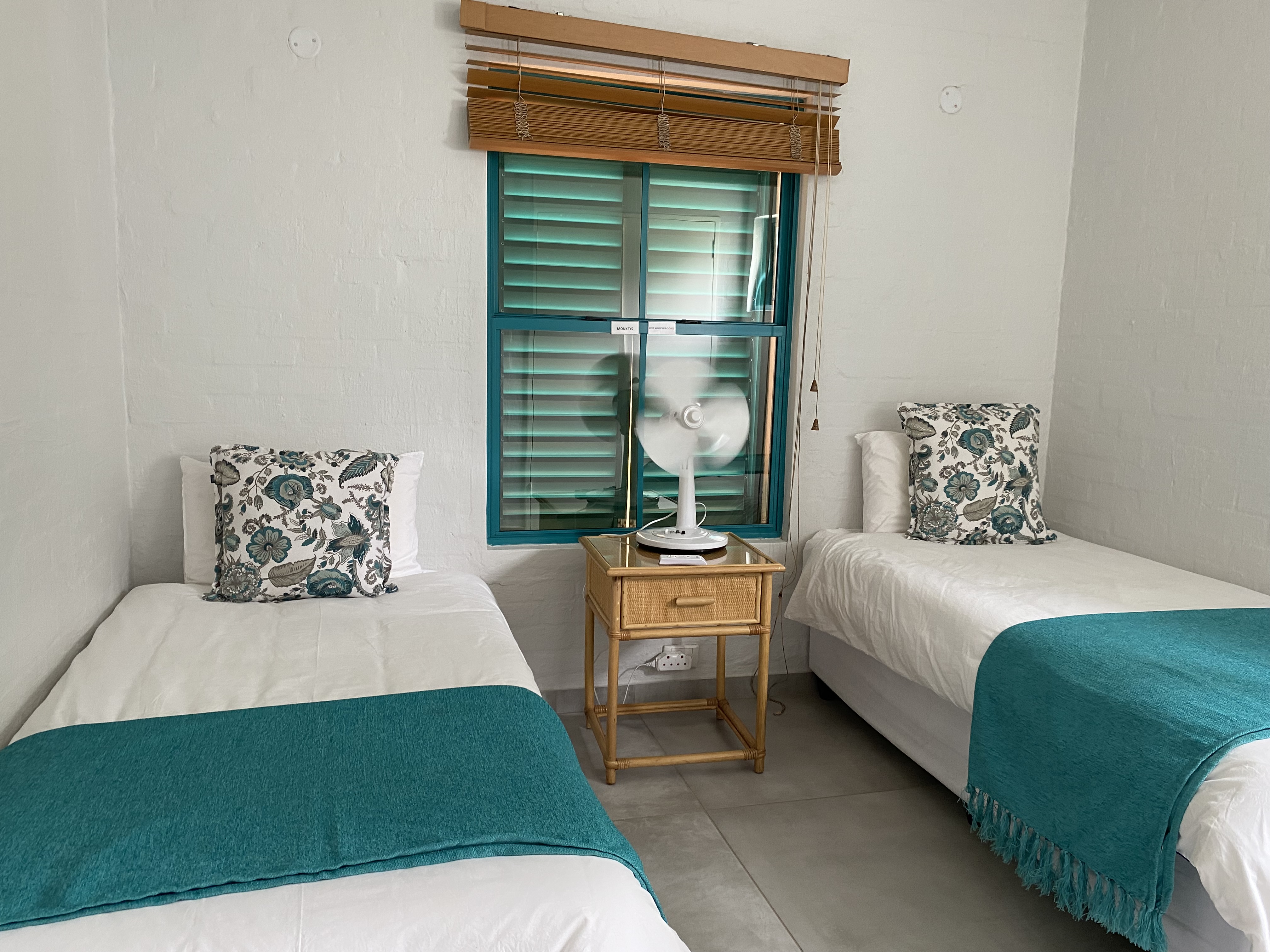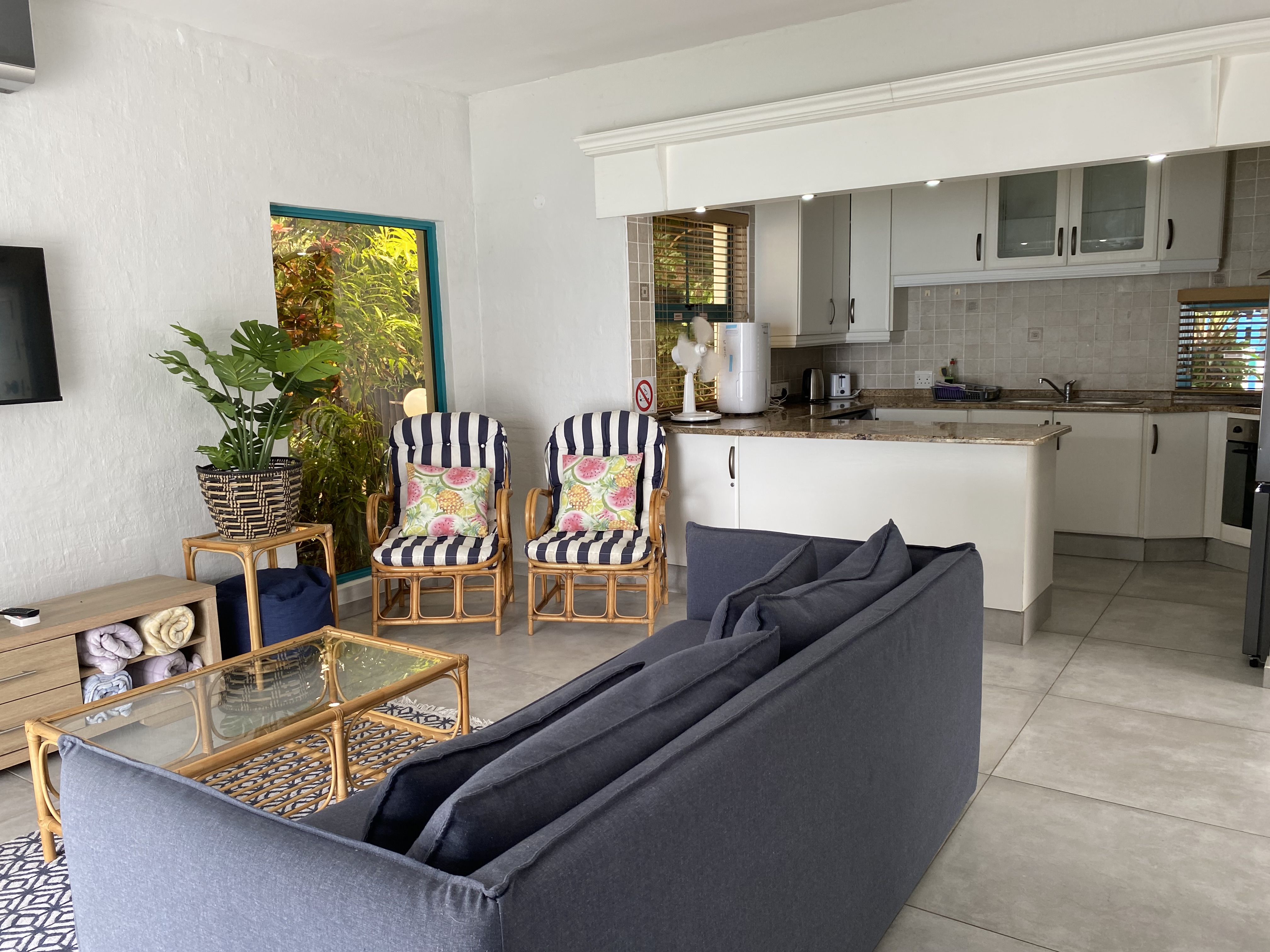 Fantastic position with calming sea views - something to behold. Fully furnished, ground floor lock-up and go furnished unit, that offers 2 bedrooms and 2 shower rooms. So comfortable with pretty decor. Spacious lounge and dining area that opens to the fully fitted kitchen. Sliding doors lead to undercover patio to a delightful outdoor space. Enjoy Al Fesco dining, cocktails, or early morning coffee. Pool in the complex to enjoy or Thompson's beach access from the estate. Single undercover parking bay and a separate lock-up garage. Ceiling fans in all bedrooms, and aircon in the living area. Make your move now and settle. 24/7 security access. Play area for children and whale watching at its best. Please note - no bed linen or towels are supplied - you may bring your own.