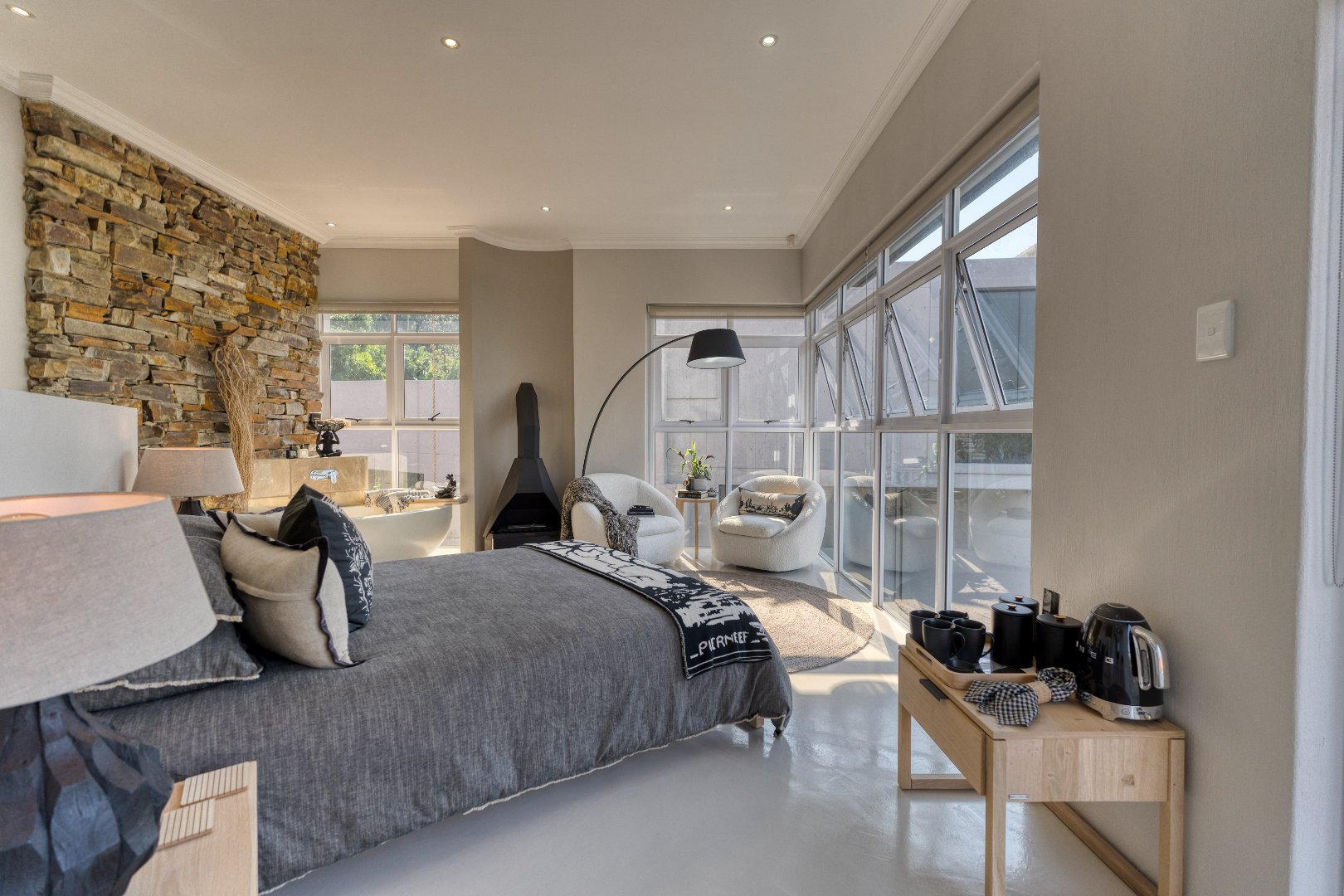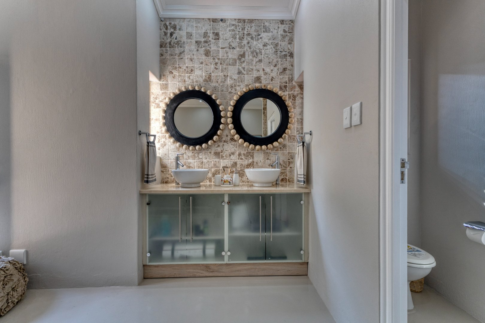 Plenty of paved secure parking on the lower level is available for guests, creating an inviting atmosphere for entertaining on a grand scale. For added convenience, there's a maid or gardener's bathroom outdoors, ensuring that every aspect of this home is thoughtfully crafted whilst a state of the art alarm system with exterior beams and excellent armed response ensure that your security is taken care of.