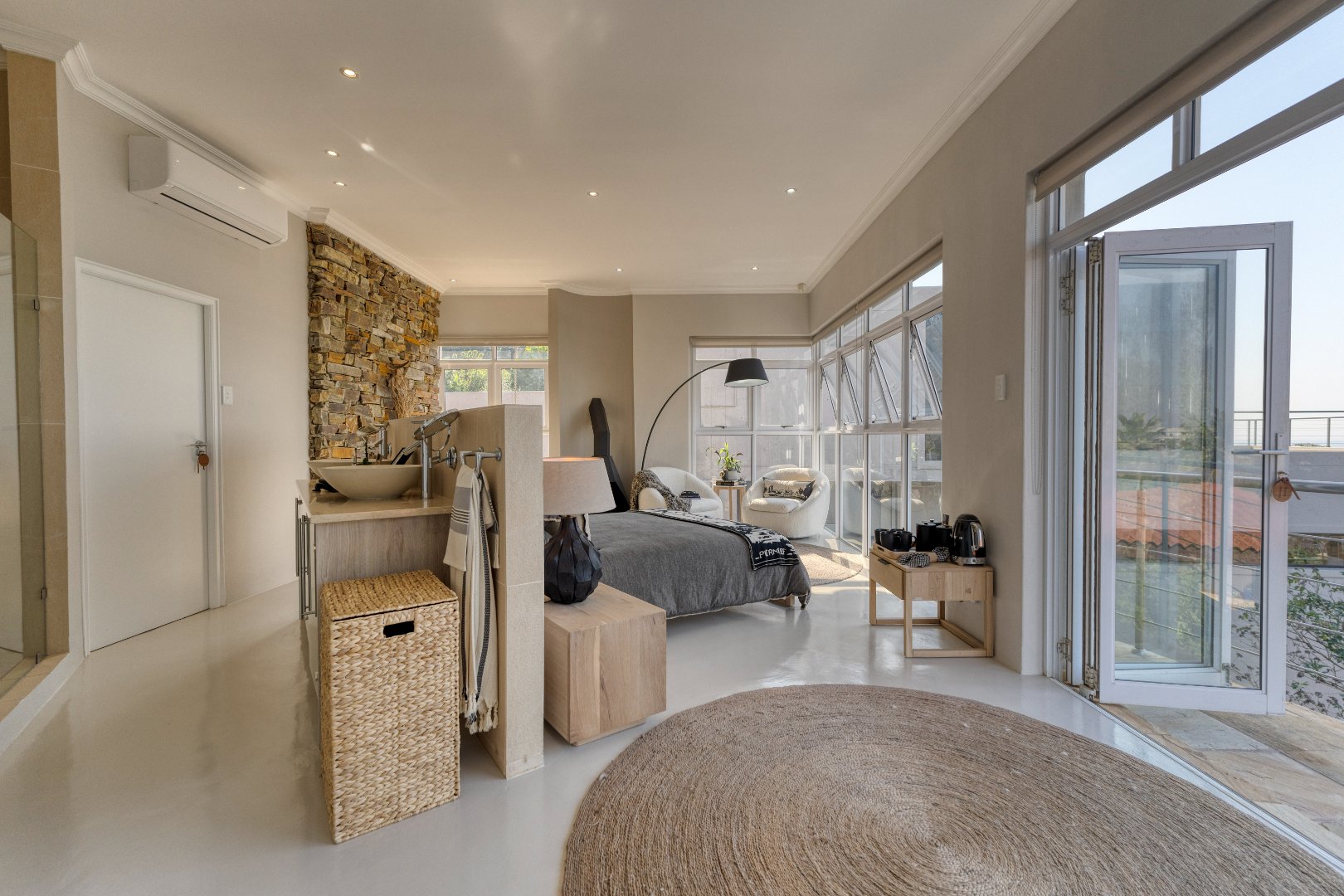 Descend below the pool and jacuzzi area to discover a hidden gem, a fully contained flatlet with its own single automated garage which can easily be made into a second bedroom for guests. This private retreat features an open-plan lounge and kitchen area, leading to a tastefully appointed bedroom and en-suite bathroom. Guests can enjoy their own space while relishing the luxury of waking up to the sound of the ocean.