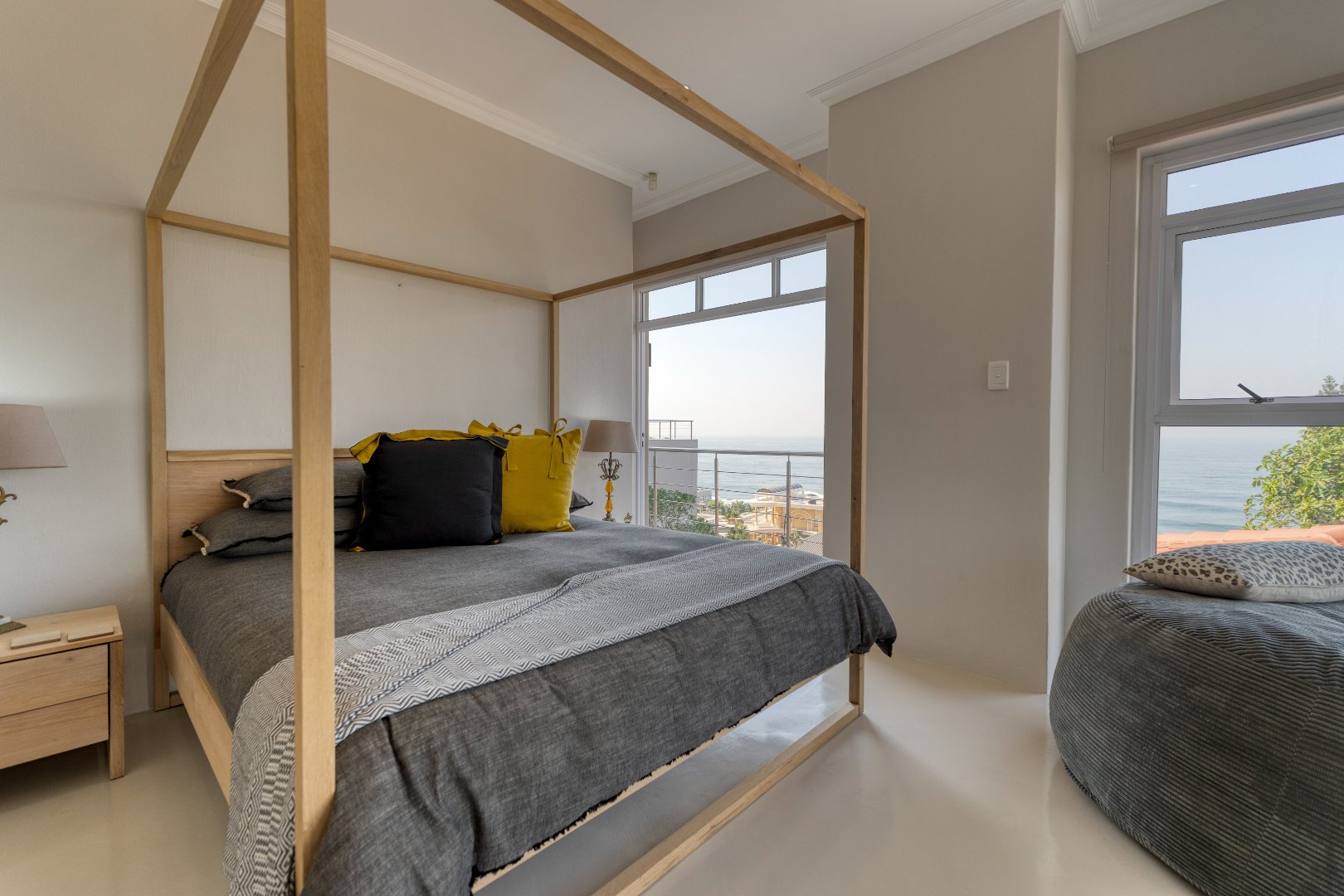 The second bedroom, with its large, rounded windows, offers a unique vantage point to observe bathers, surfers in the sea, and the mesmerizing night scape showcasing ships and city lights, a spectacle that is nothing short of spectacular.