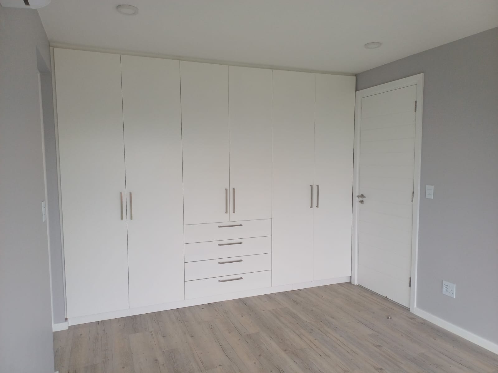 The bedrooms are bright and inviting, each fitted with built-in cupboards and high-quality finishes. The main bathroom boasts contemporary fittings, a walk-in shower with feature tiling, and a floating vanity for a clean, minimalist look.
