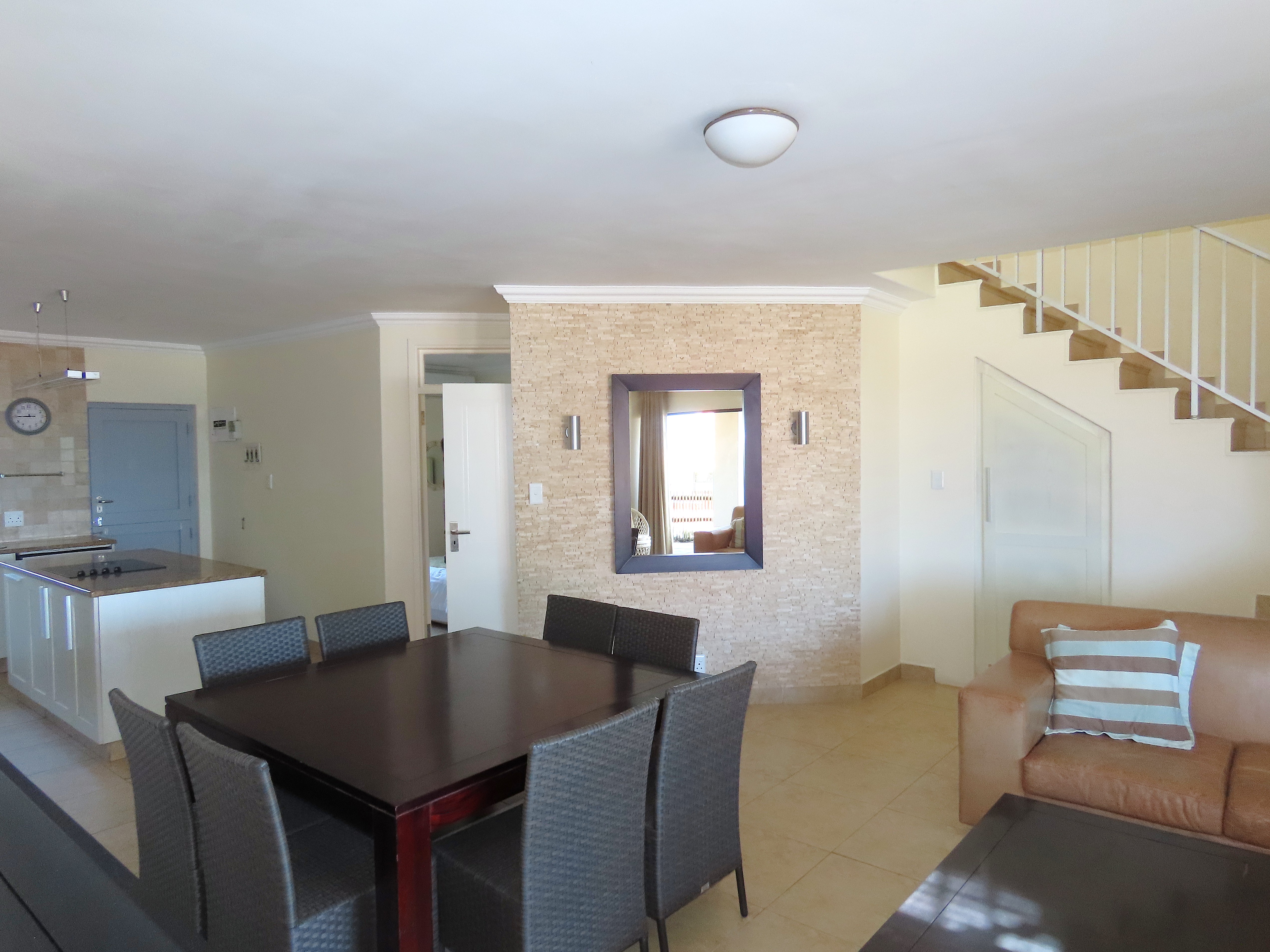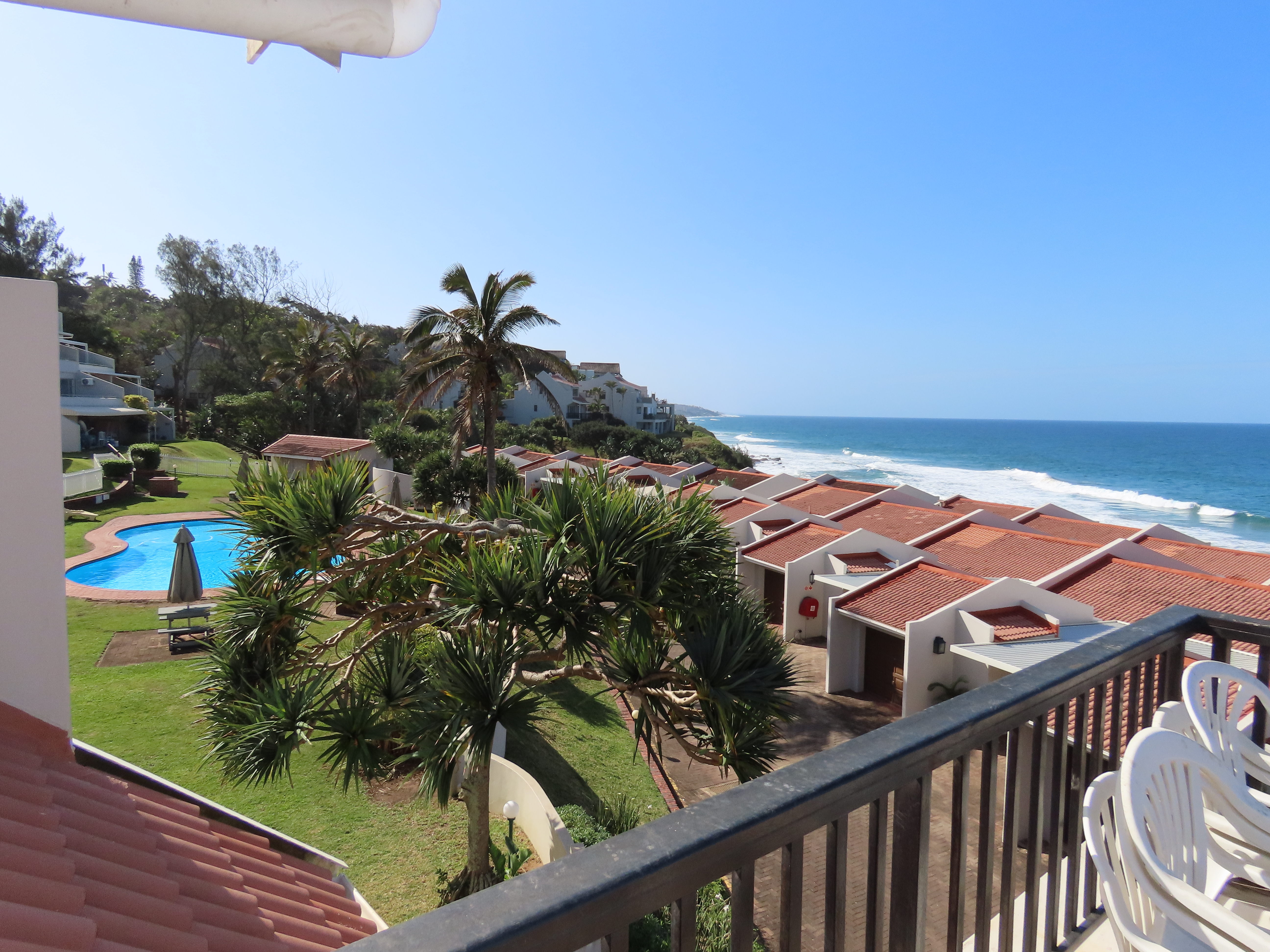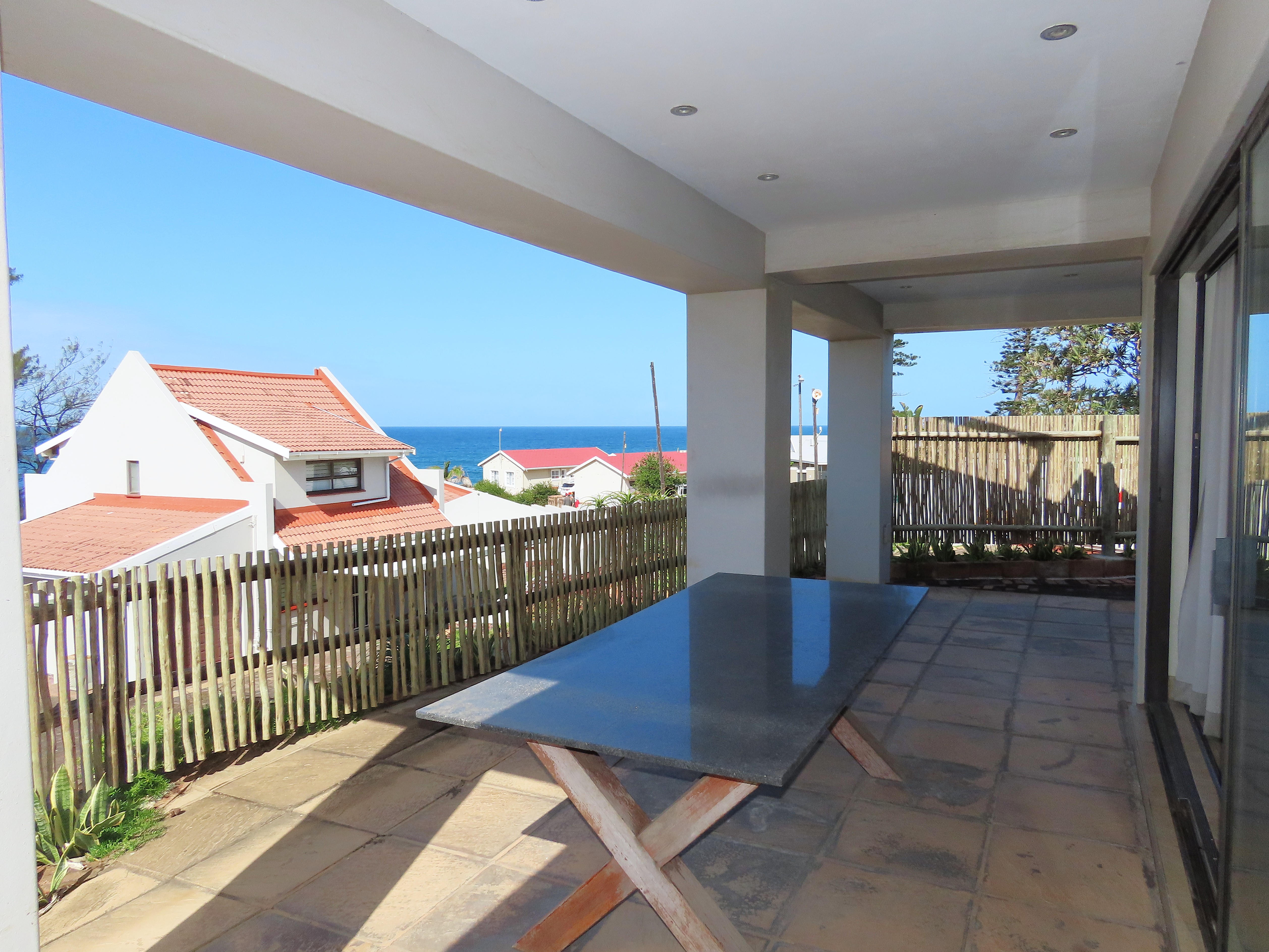 From the moment you arrive, you’ll be captivated by breaker and sea views that can be enjoyed from both levels of the home, as well as vistas over the communal sparkling pool and inviting braai area.