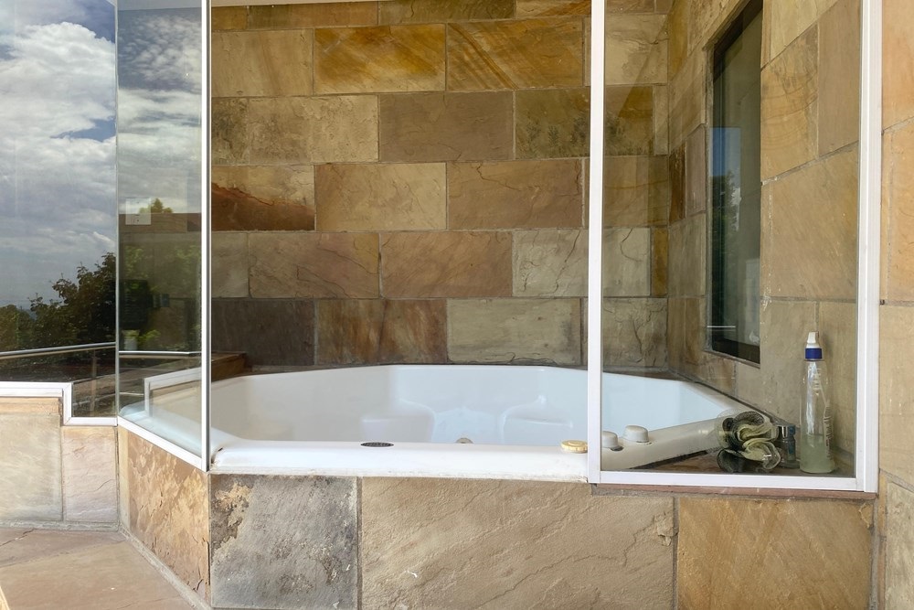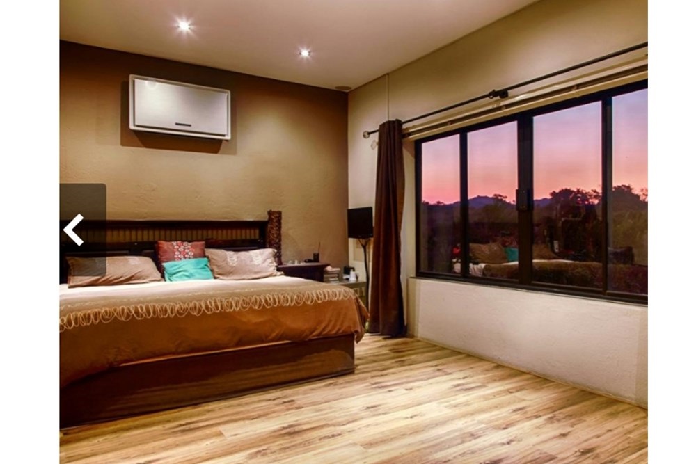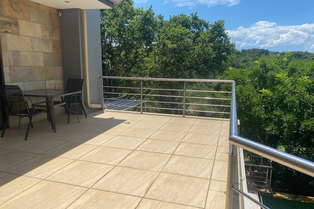 2x staircases leading up to the 3rd level with main bedroom with fireplace, large bath tub, double basin and shower for two, walk in cupboards, aircon, sliding doors leading out onto patio with beautiful views over lush green lowveld and enjoy a private 6 seater jacuzzi.