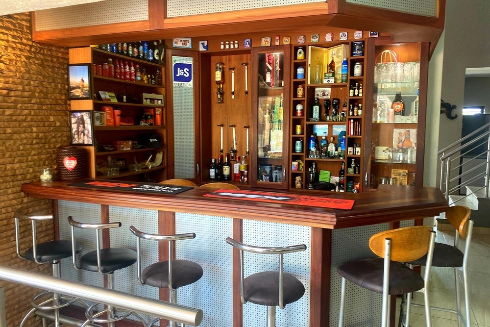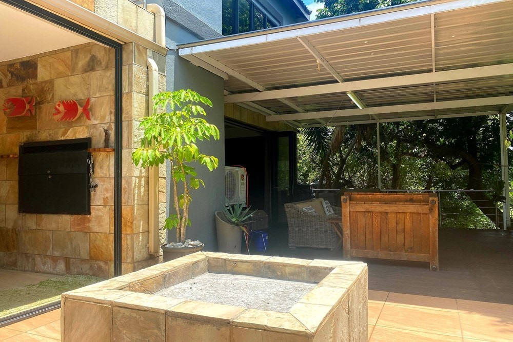 The build in braai area has stackable doors on 2 sides leading to pool and covered patio. Pool with outside fireplace. Store room under staircase