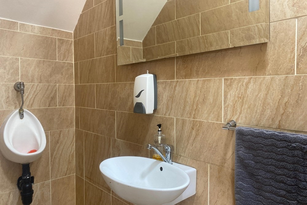 The large office has built- in cupboards with aircon, built-in linen cupboard in passage