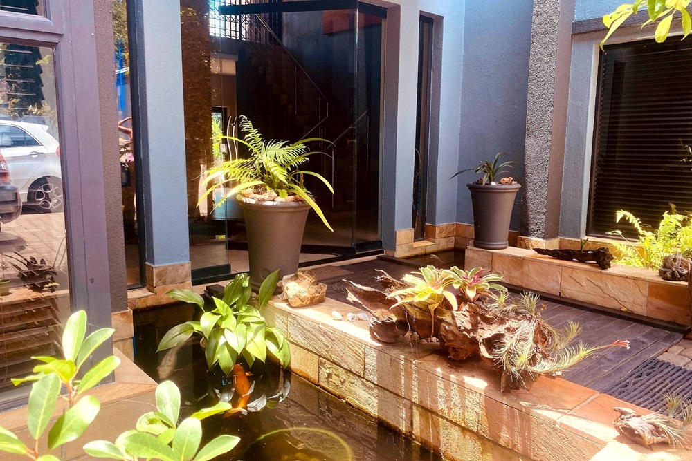 Embrace the outdoors with a beautifully landscaped garden, complete with a swimming pool and jacuzzi, a braai pit, and a BBQ area on the roof terrace.