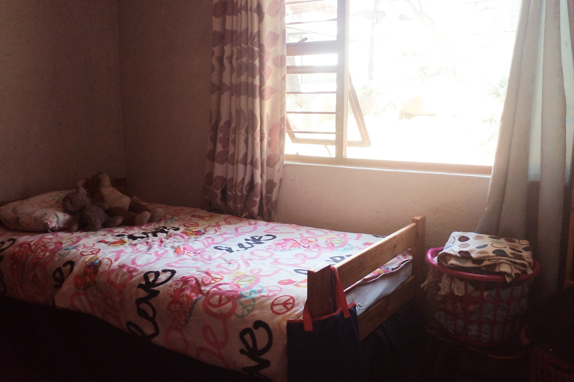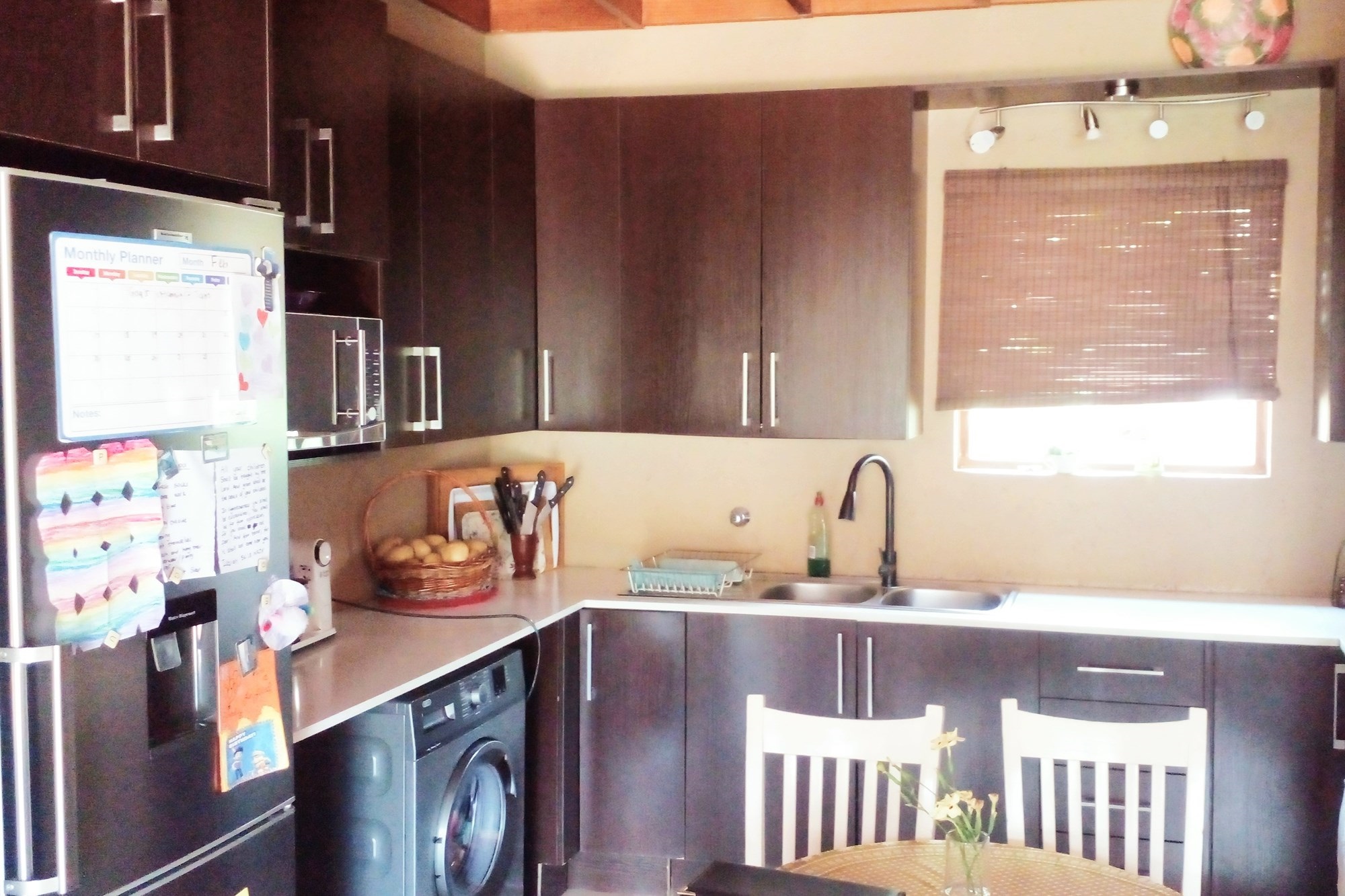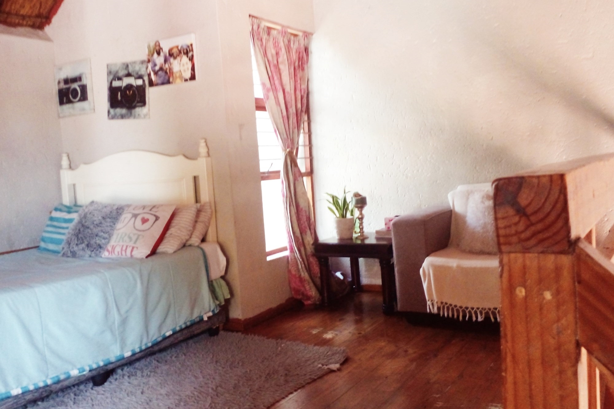 There is a wooden staircase ascending to a loft which is about 15sqm and can be used as a lounge/office/third bedroom. The loft has a doorway leading out onto capacious roof terrace ideal for relaxing and of course having a braai.