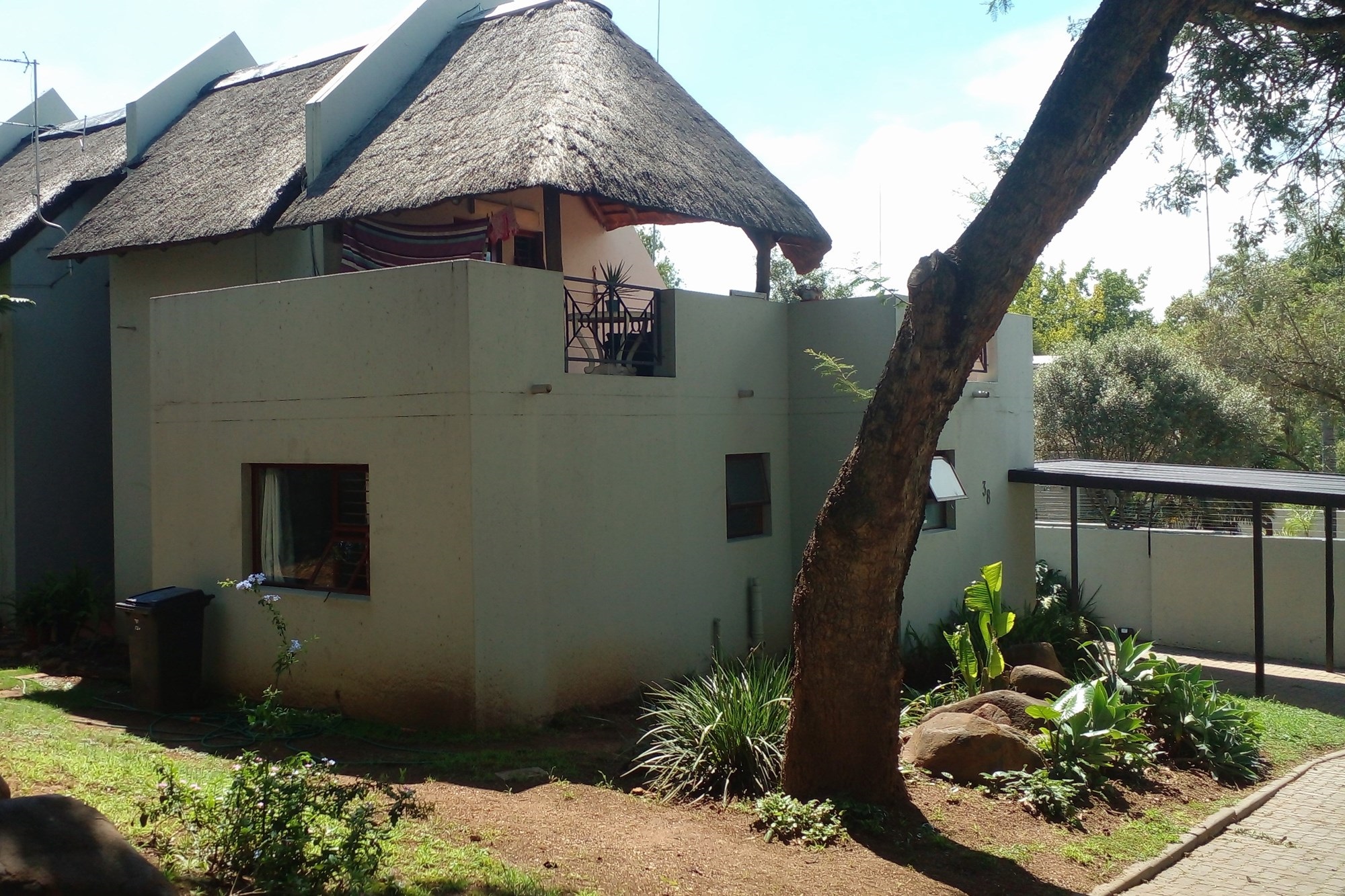 Step into a lodge like atmosphere, this duplex has a high thatch roof and lots of character situated in a secure complex.