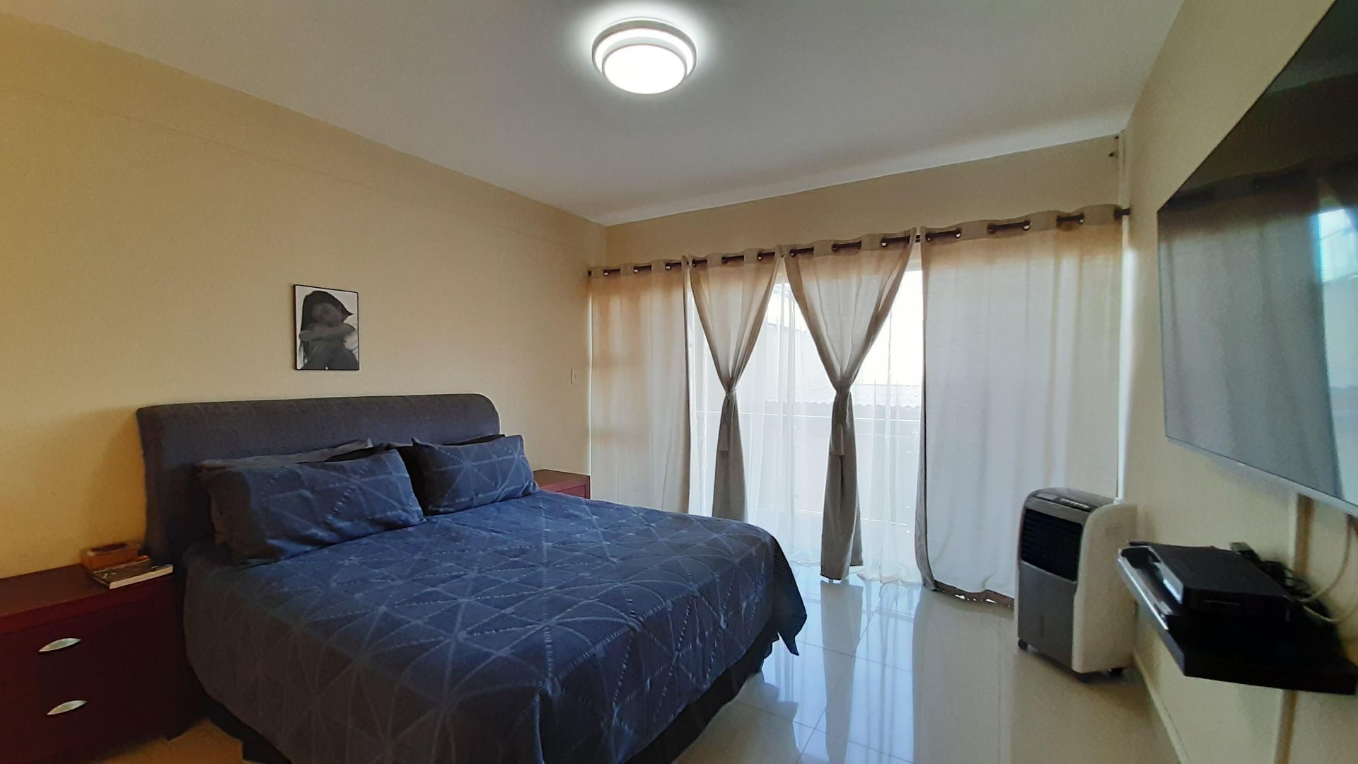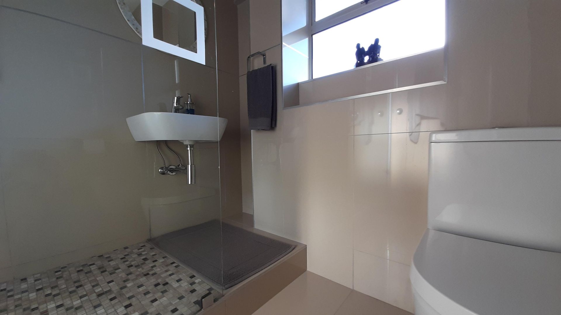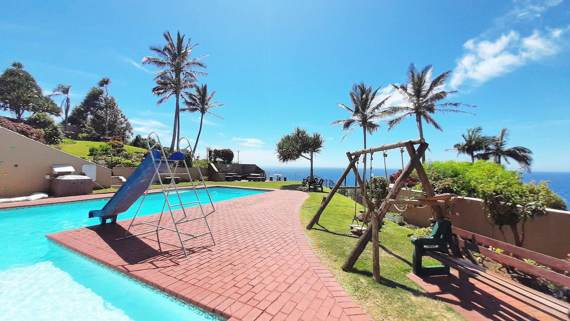 The secure complex rarely gets load-shedding and has a communal swimming pool and braai area, manicured gardens, and direct access to the beach.