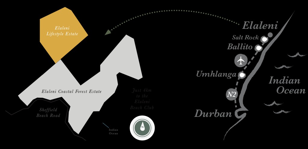 Elaleni is renowned for preserving the last remaining swamp fig forest in the area and incorporates eco-friendly elements. Residents have access to state-of-the-art clubhouses, elevated forest boardwalks, running and walking trails, kiddies play parks, and the new Elaleni Beach Club located on Salt Rock's main beach.
