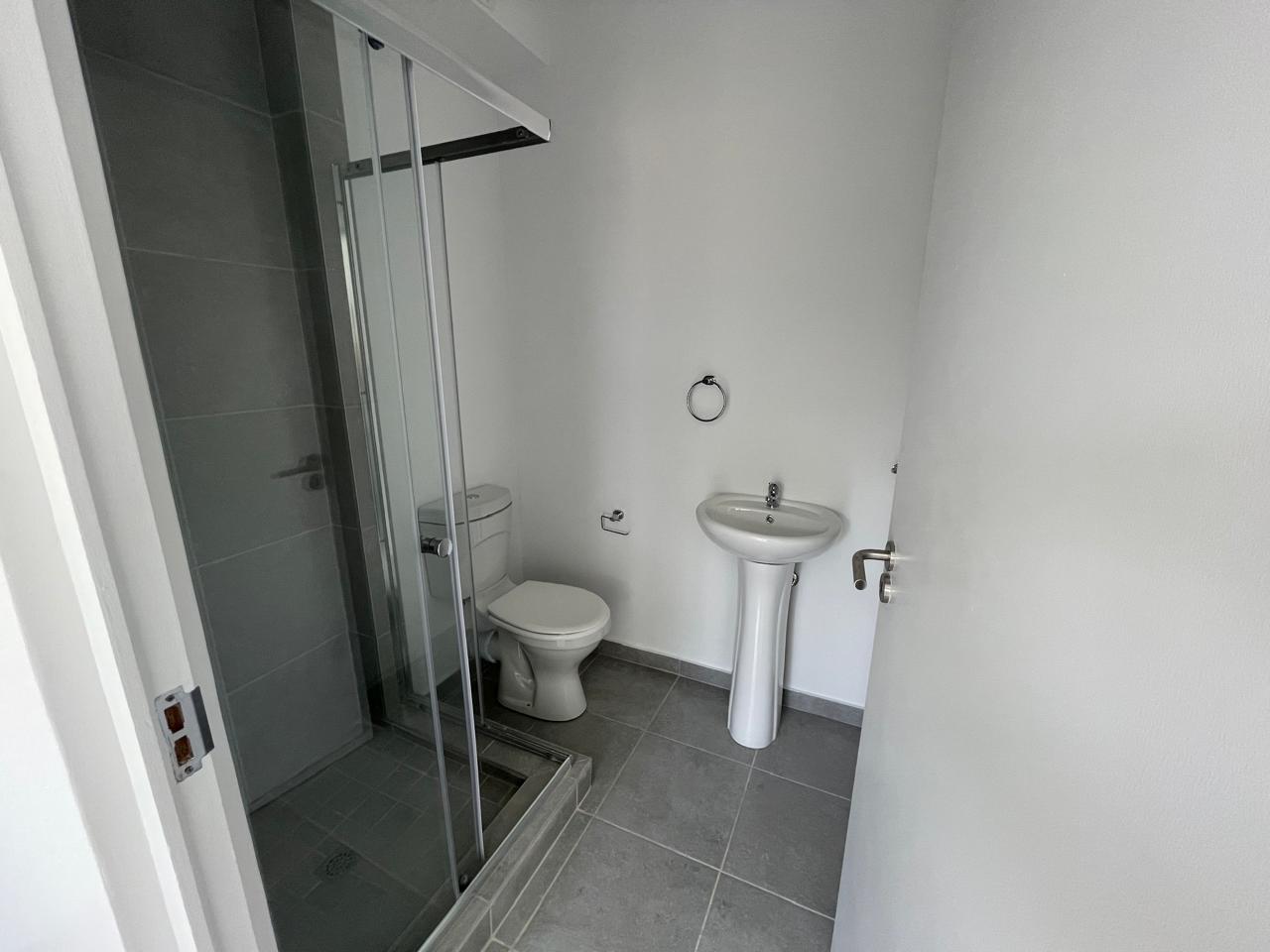 Freshly painted with modern grey tile flooring